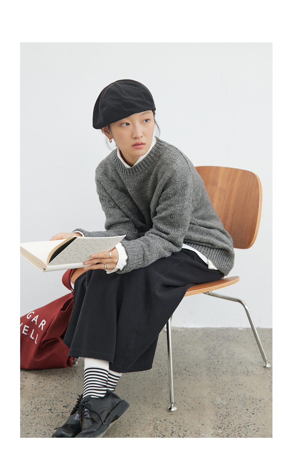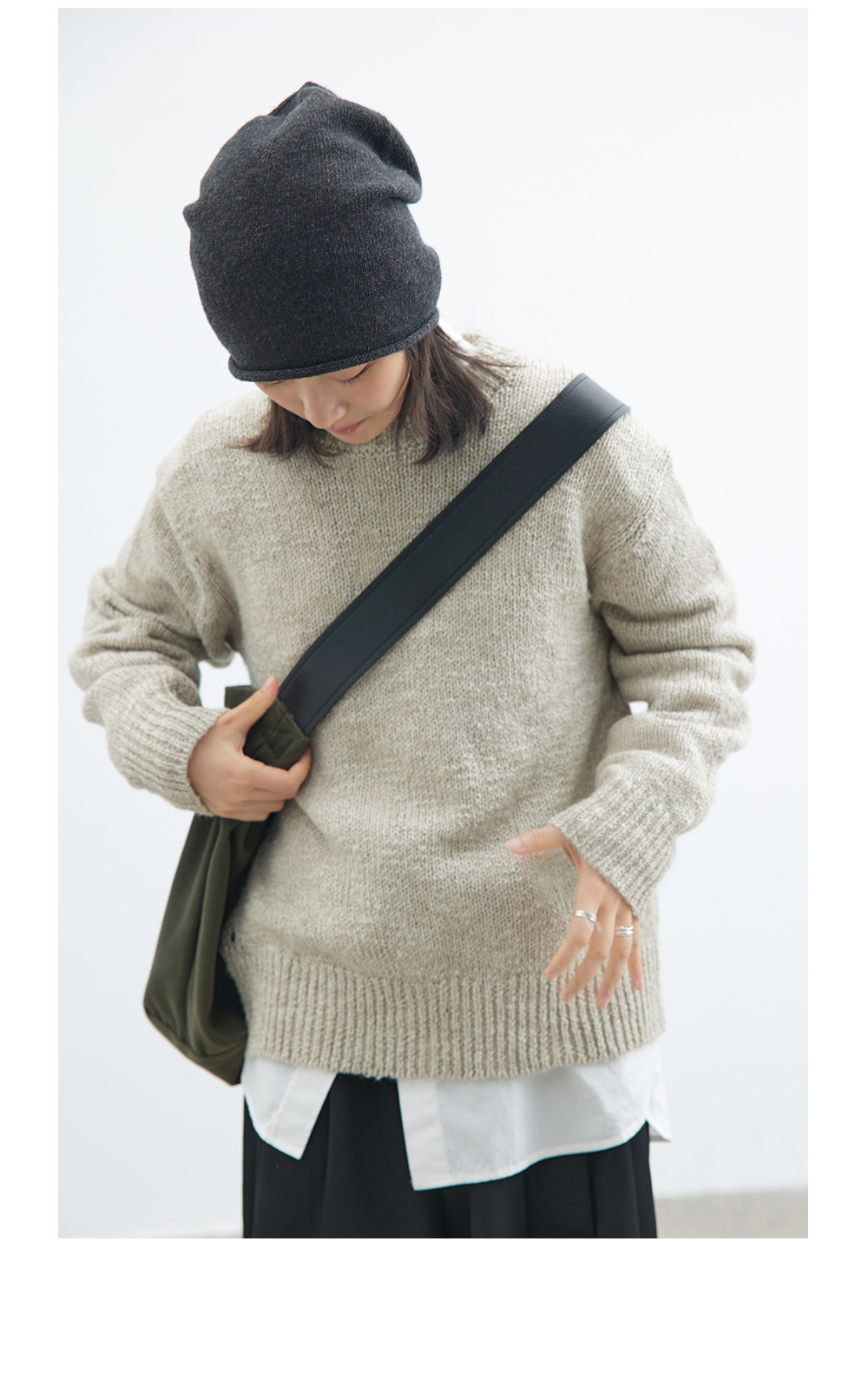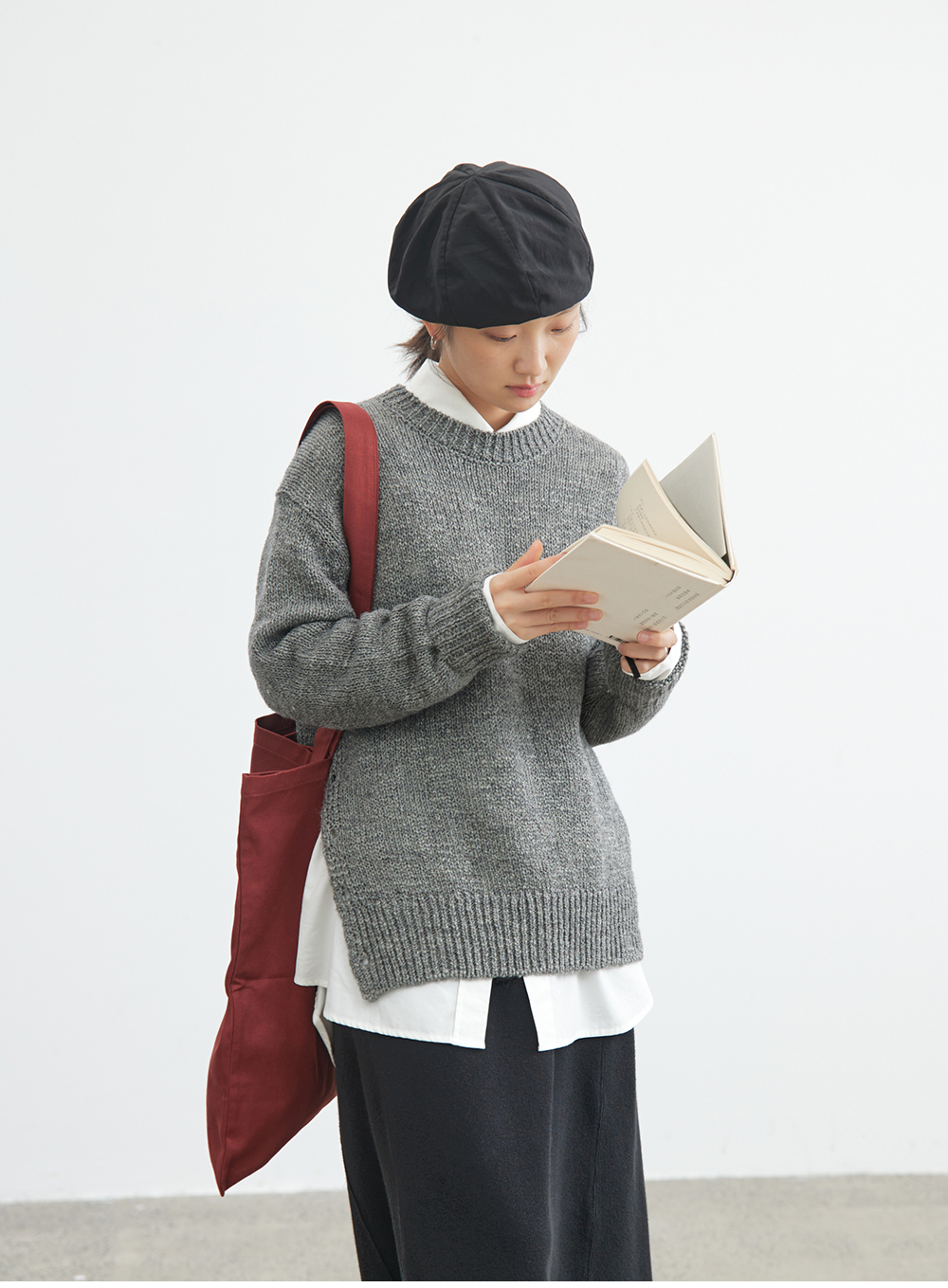 步履不停/4C13219C/圆领侧开叉毛织套头衫灰色毛衣