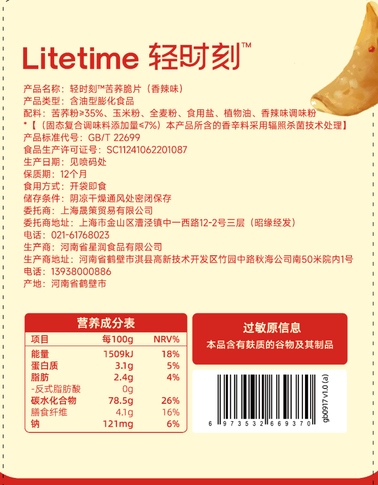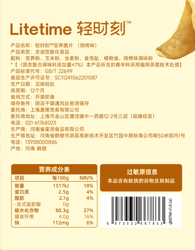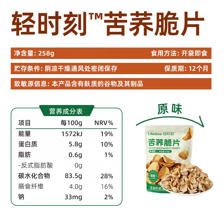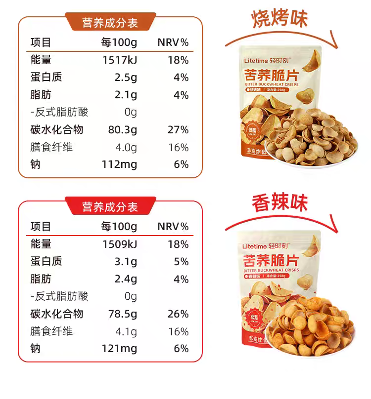 哥本轻时刻苦荞脆片 原味/烧烤/香辣 258g/袋