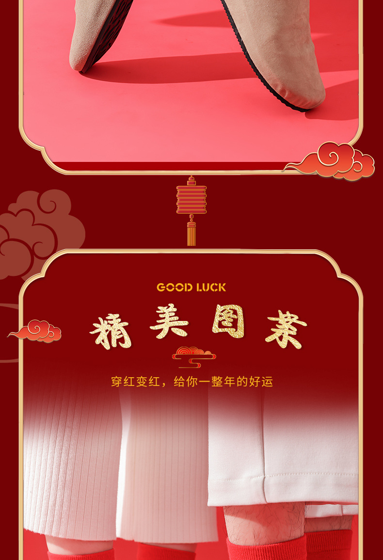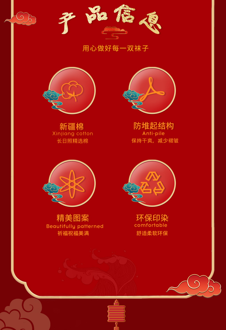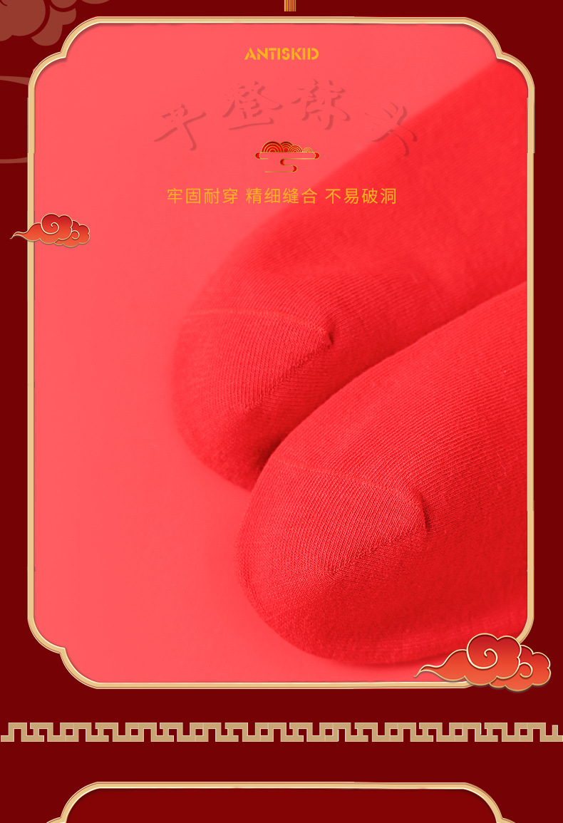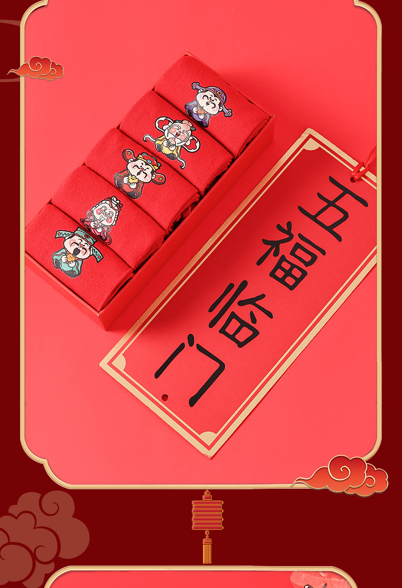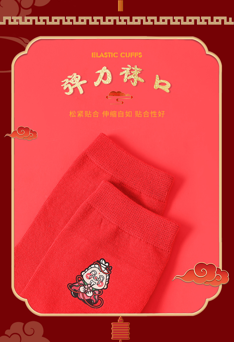 五福临门袜子【龙年刺绣红袜子礼盒装】本命年 男女 双针中筒袜