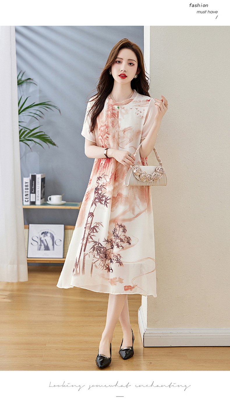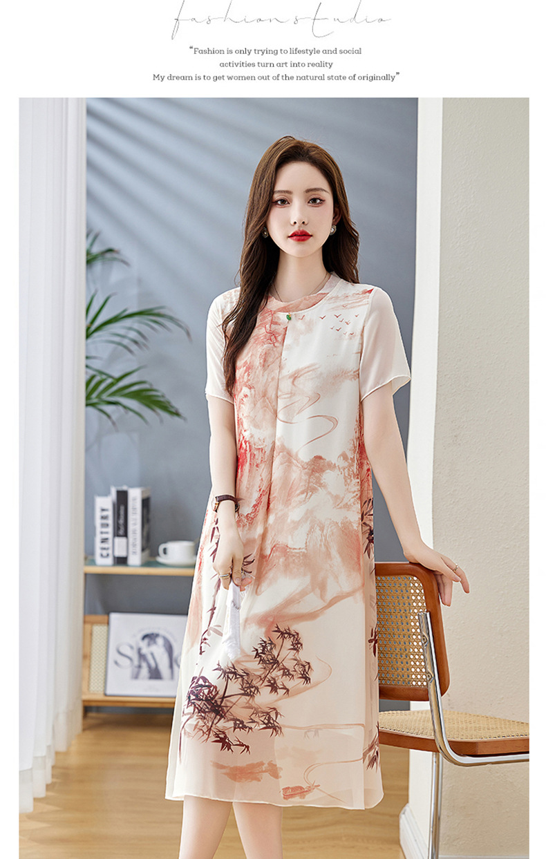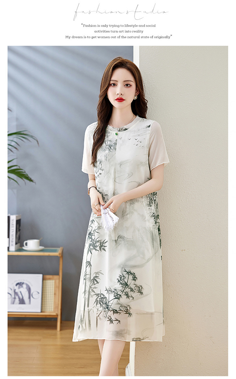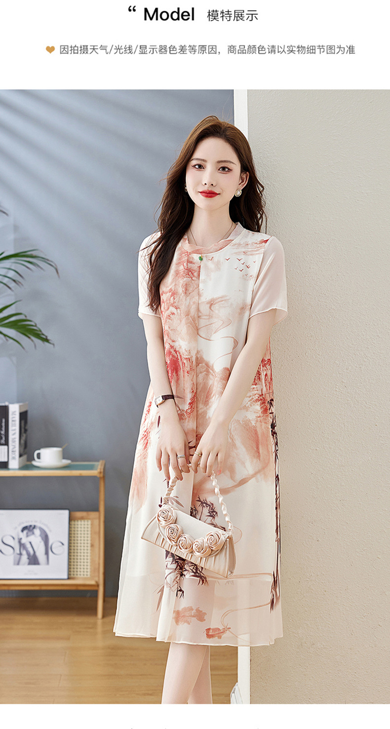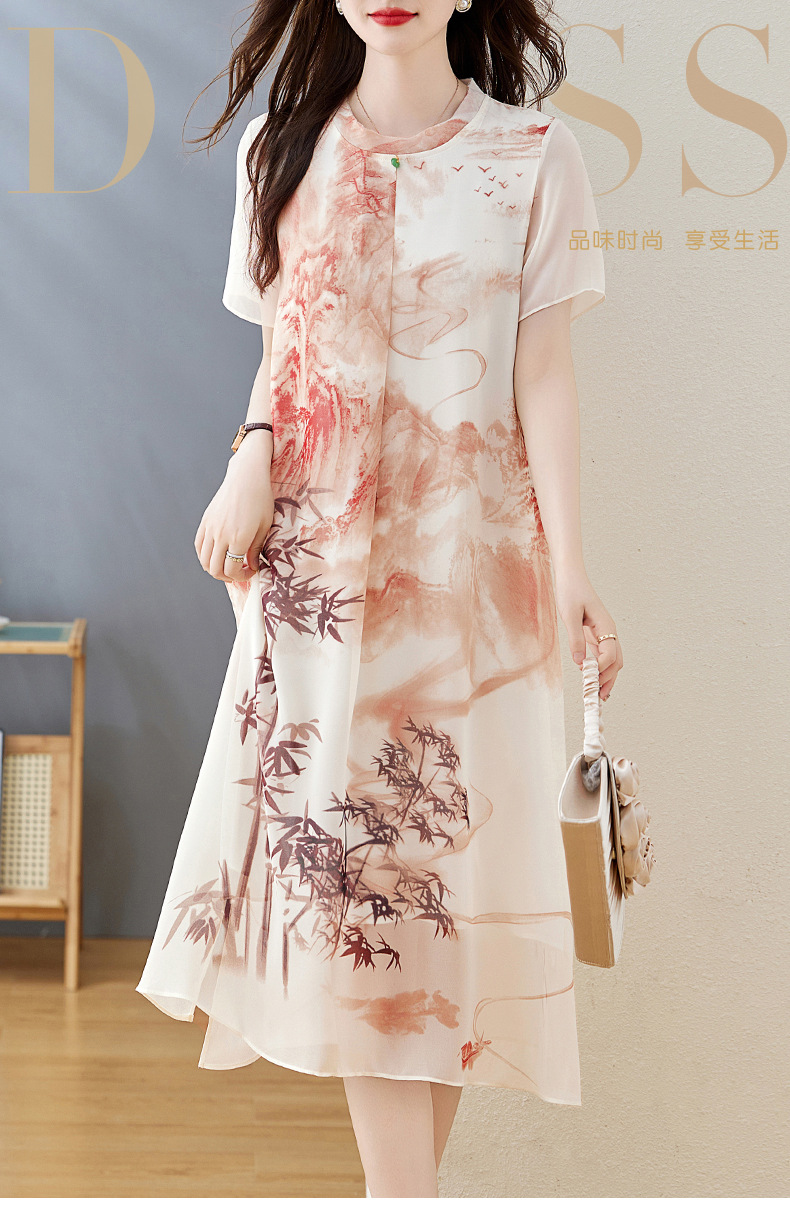 轻奢时尚气质,宽松显瘦雪纺水墨画连衣裙HR-5968