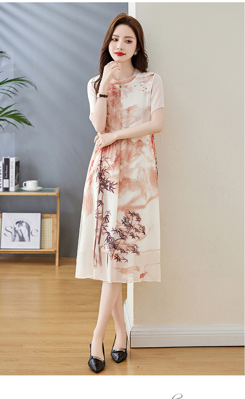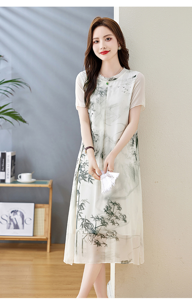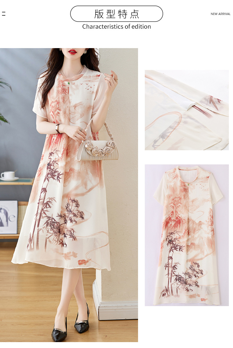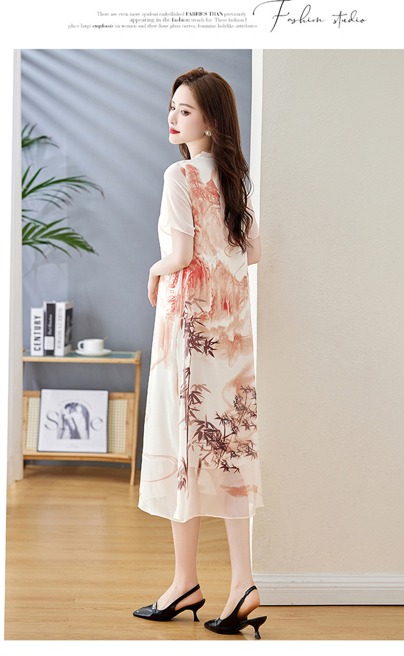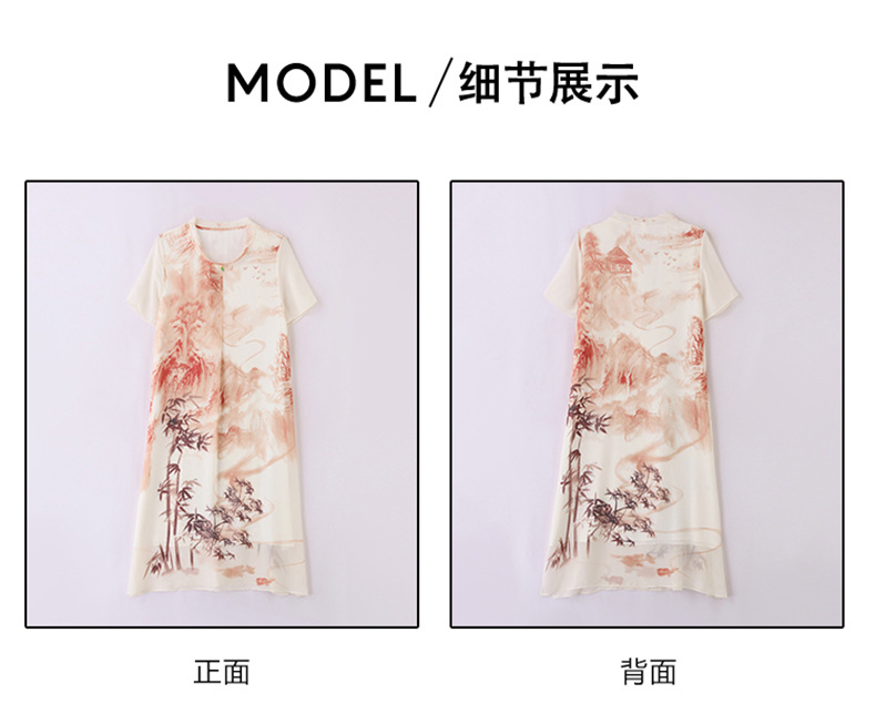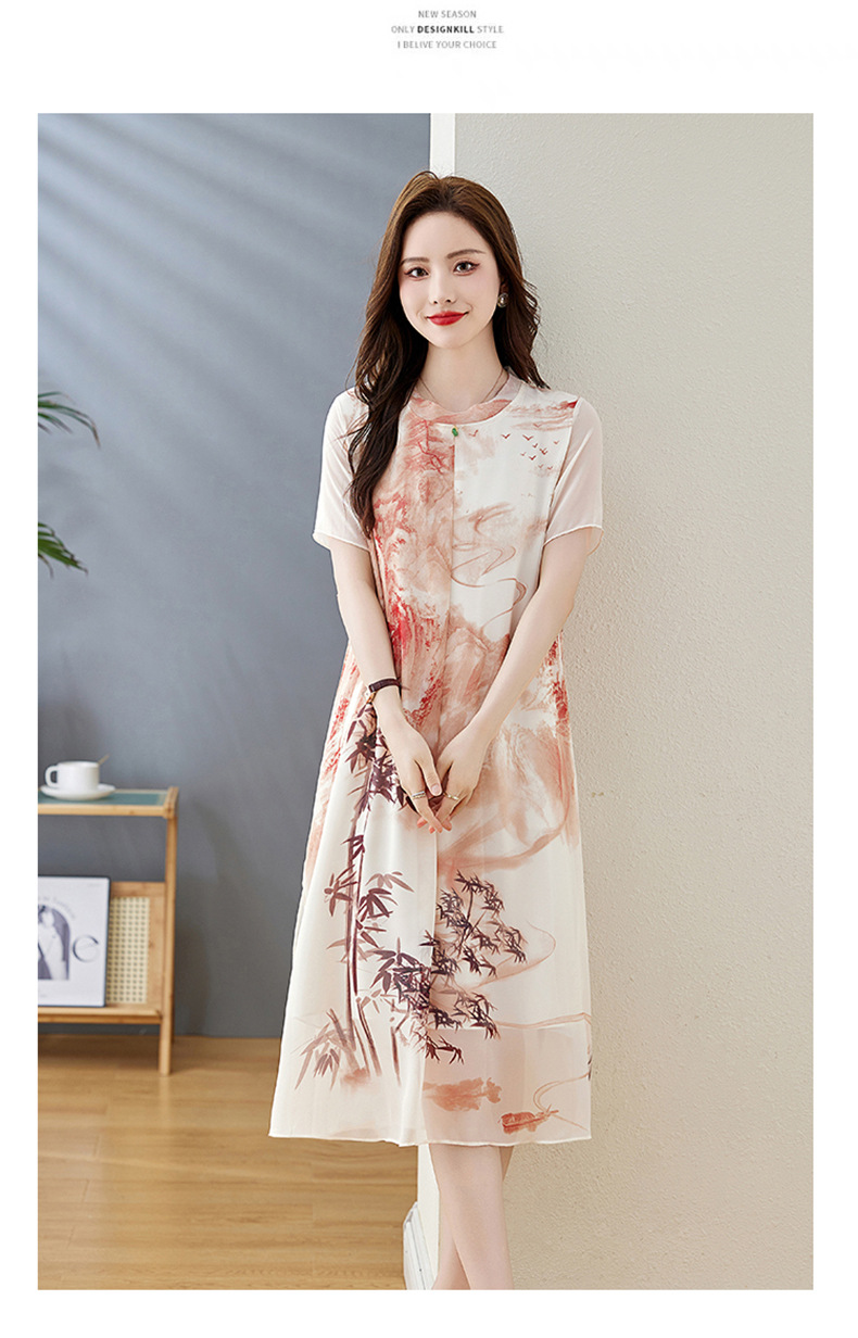 轻奢时尚气质,宽松显瘦雪纺水墨画连衣裙HR-5968