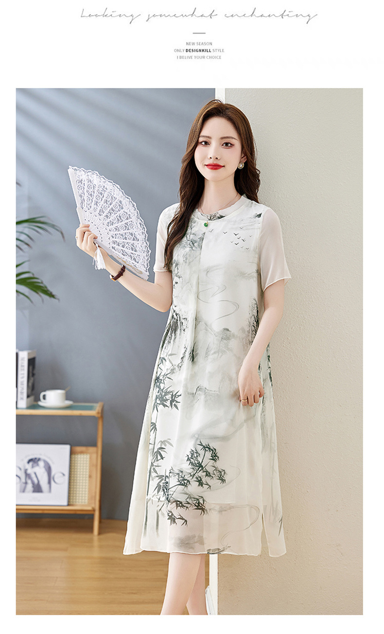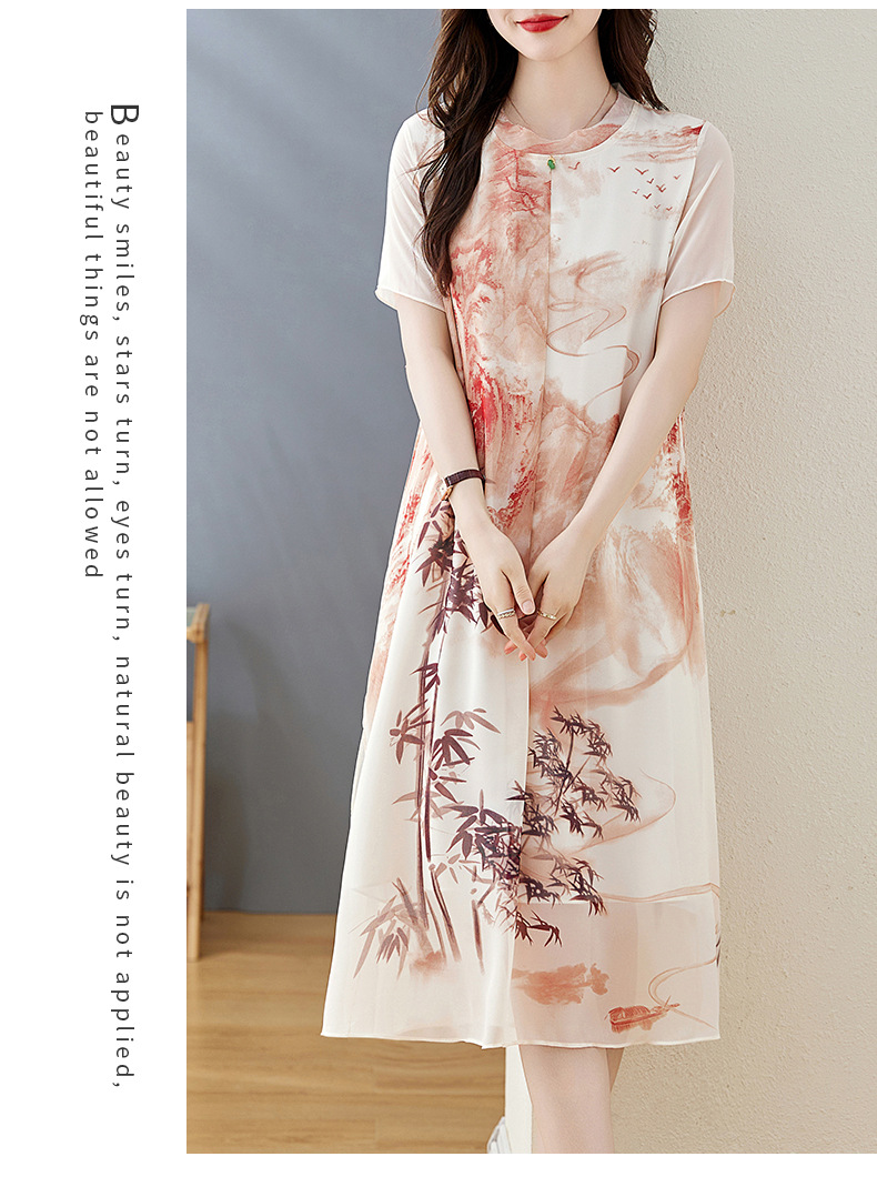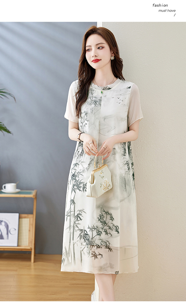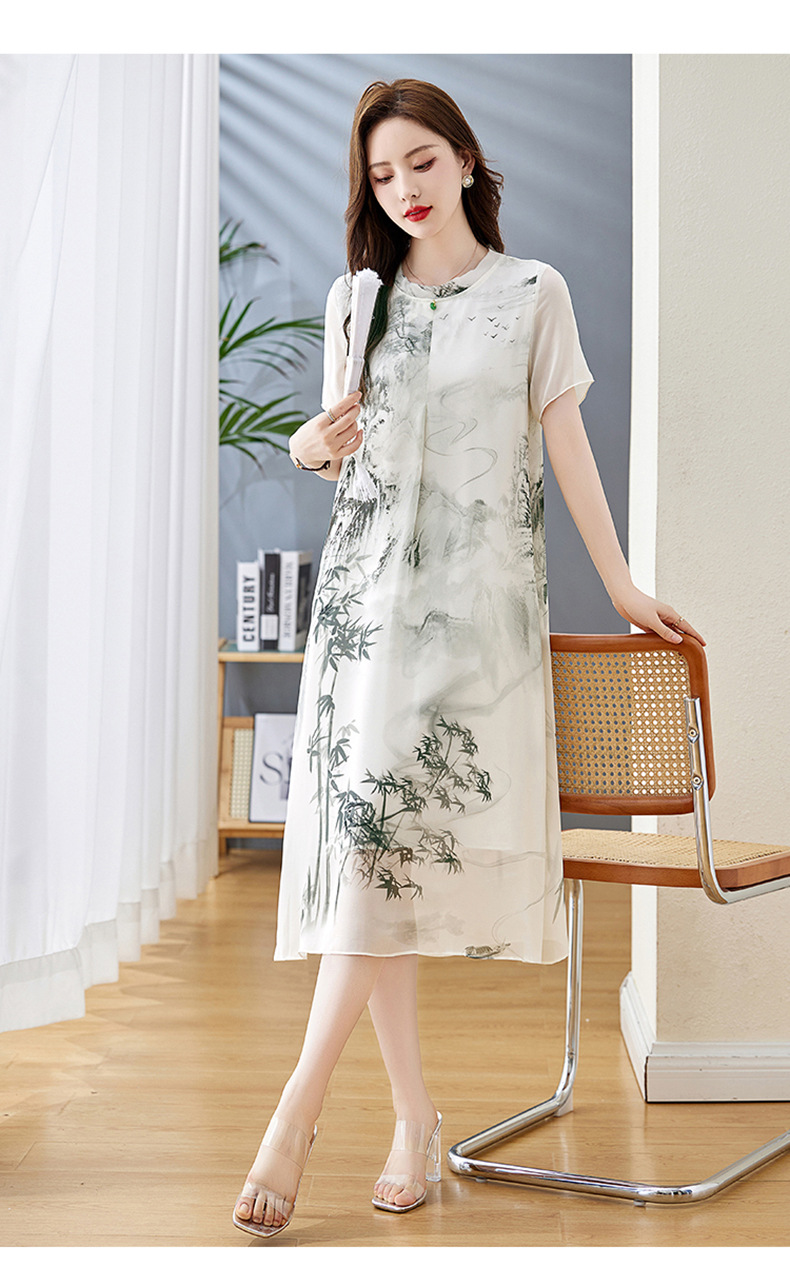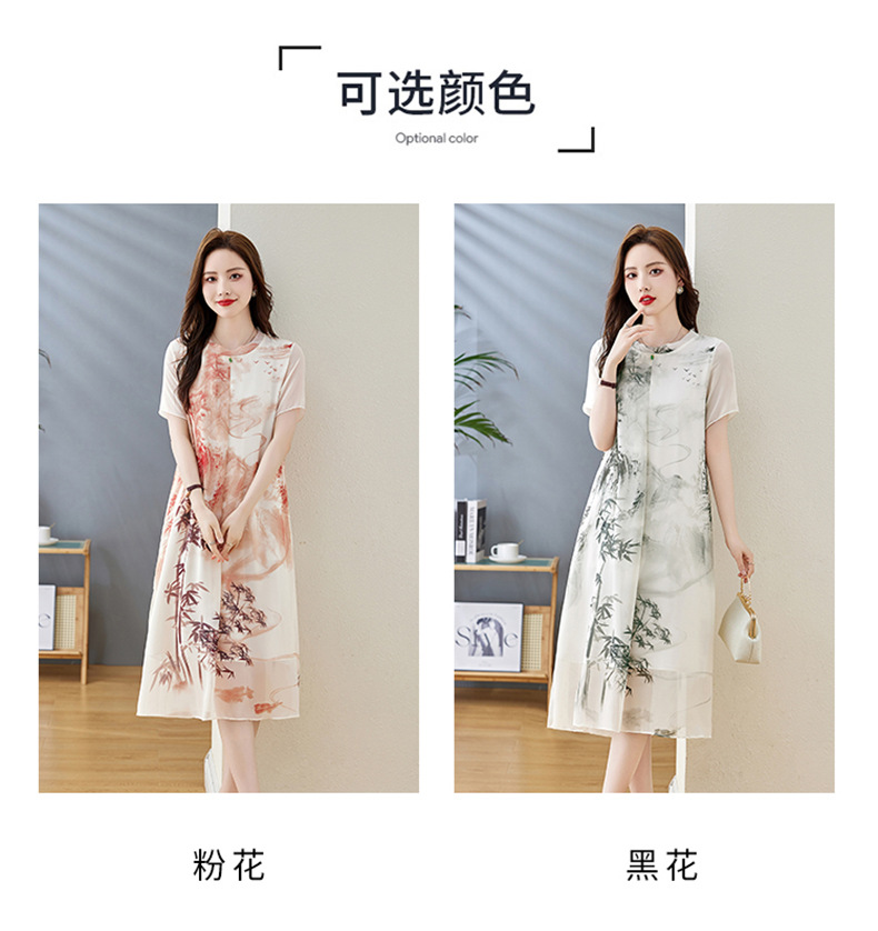 轻奢时尚气质,宽松显瘦雪纺水墨画连衣裙HR-5968