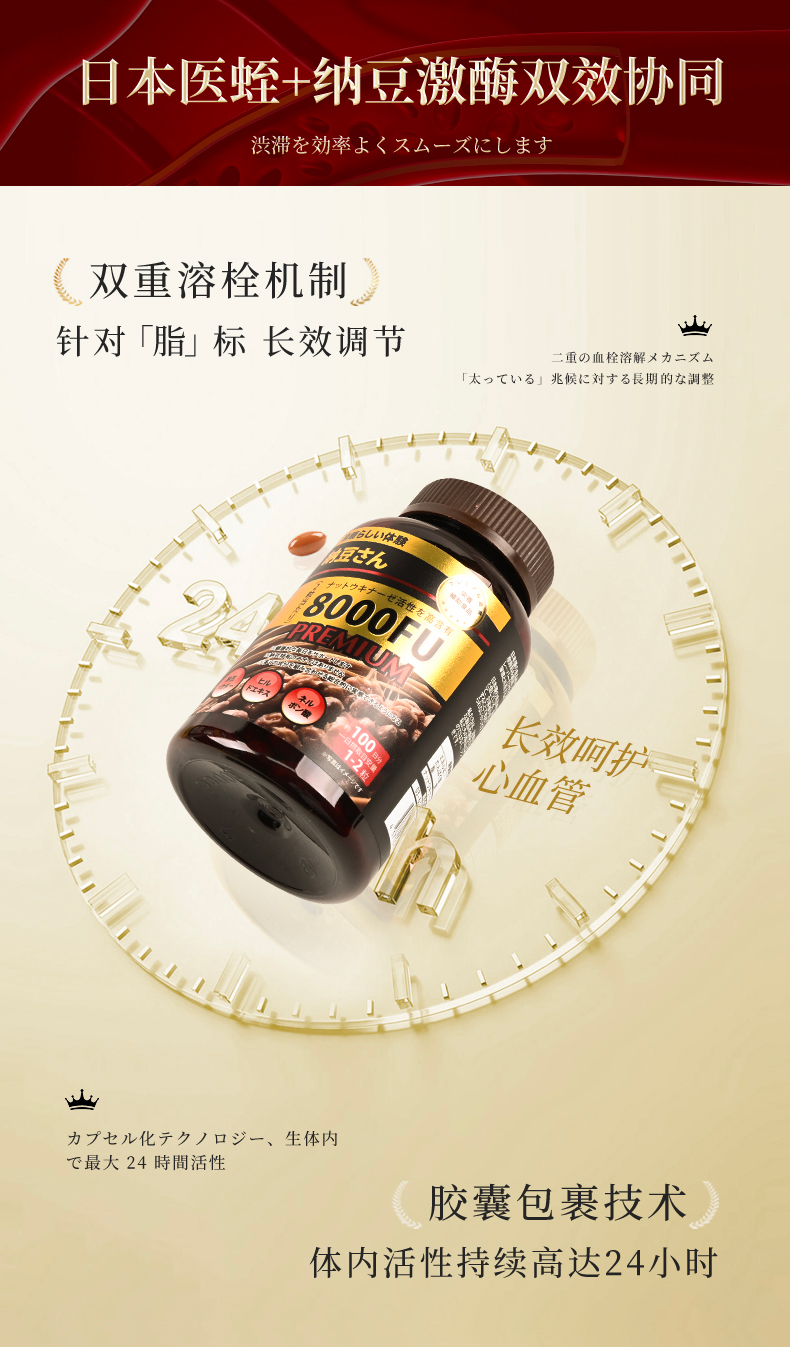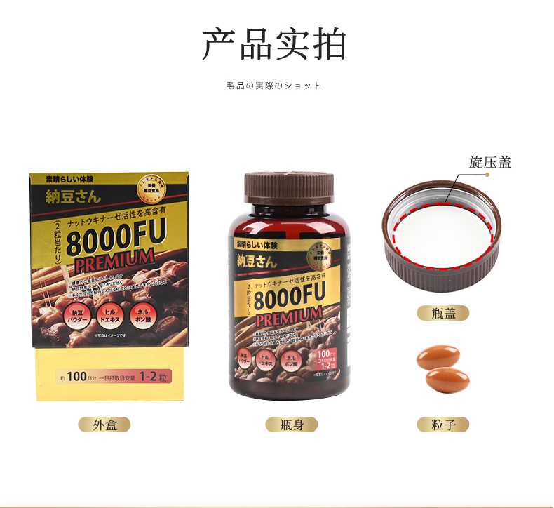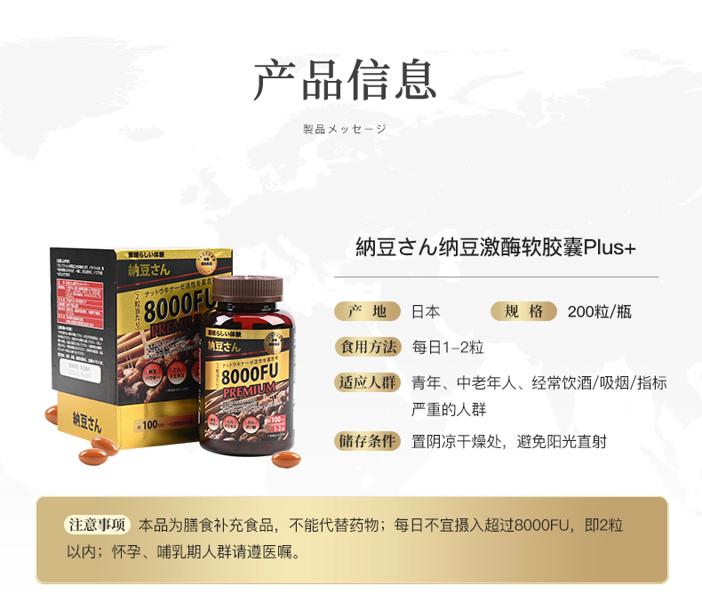 第四代纳豆激酶加强版8000FU高含量 加强黑金版 200粒/瓶 A-5513(效期28-4)