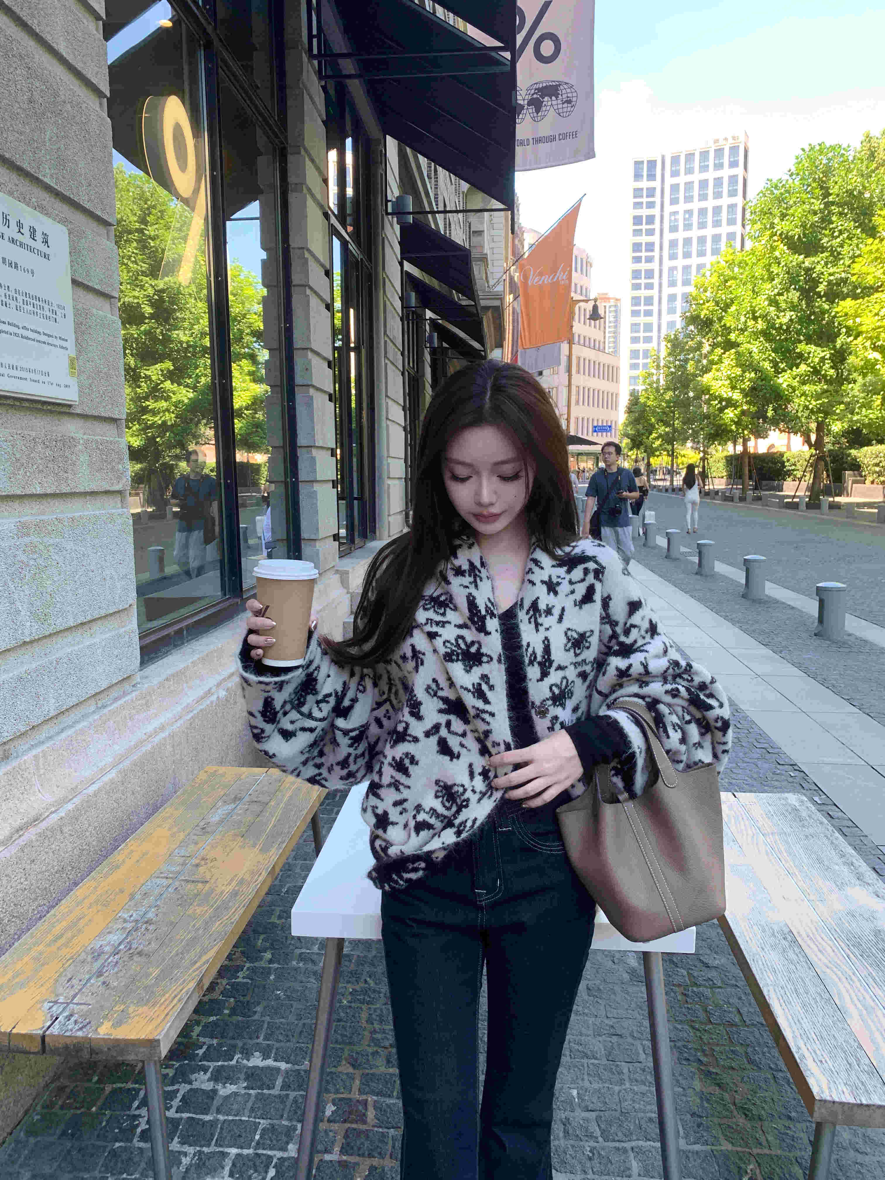 张林超LIN BOUTIQUE Oversais宽松落肩袖显瘦显腿长花色短外套女
