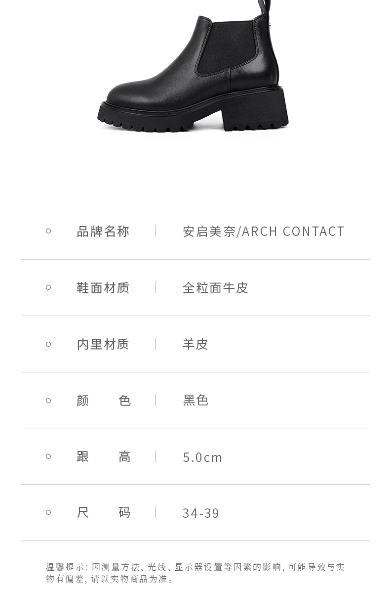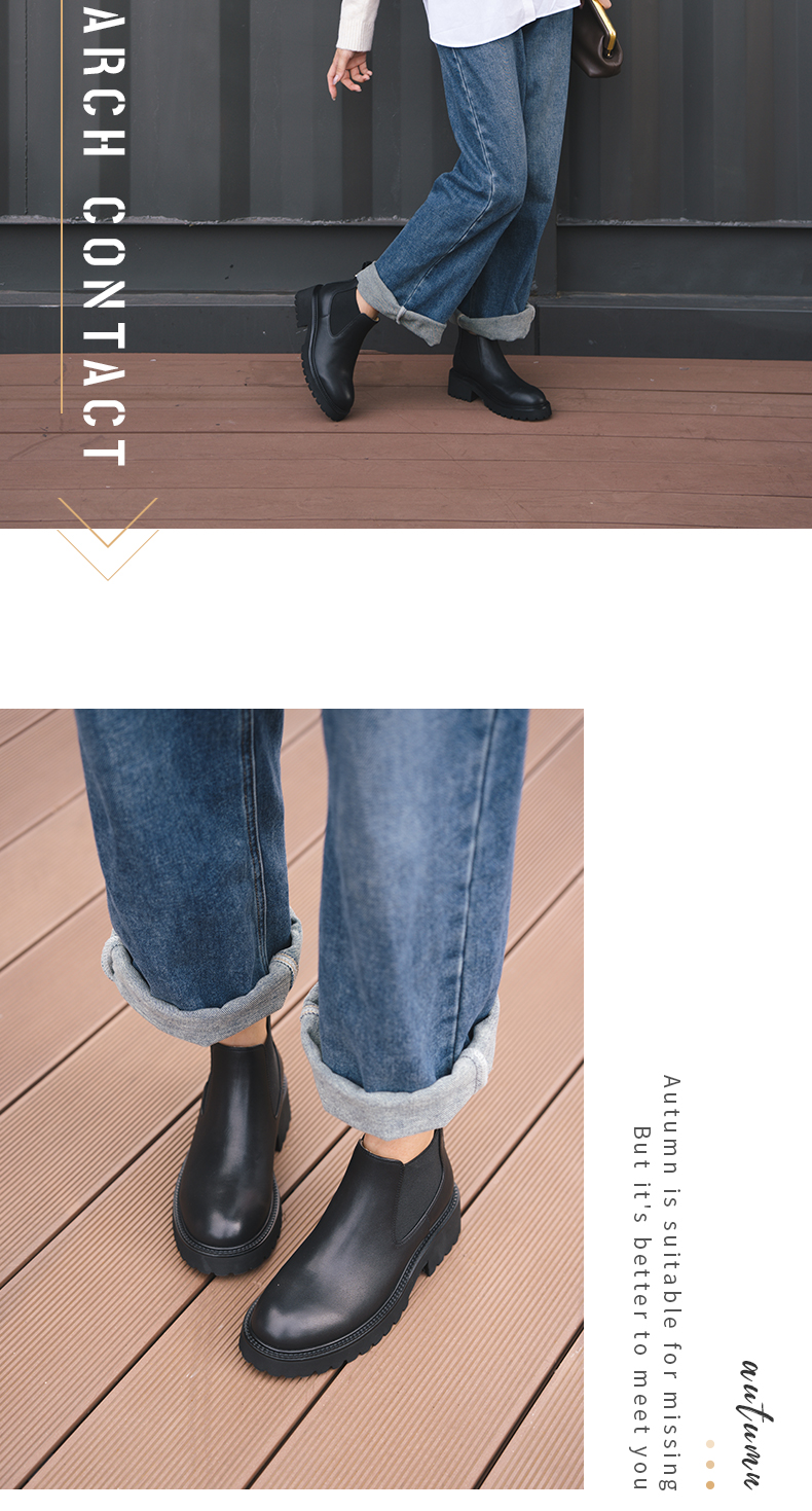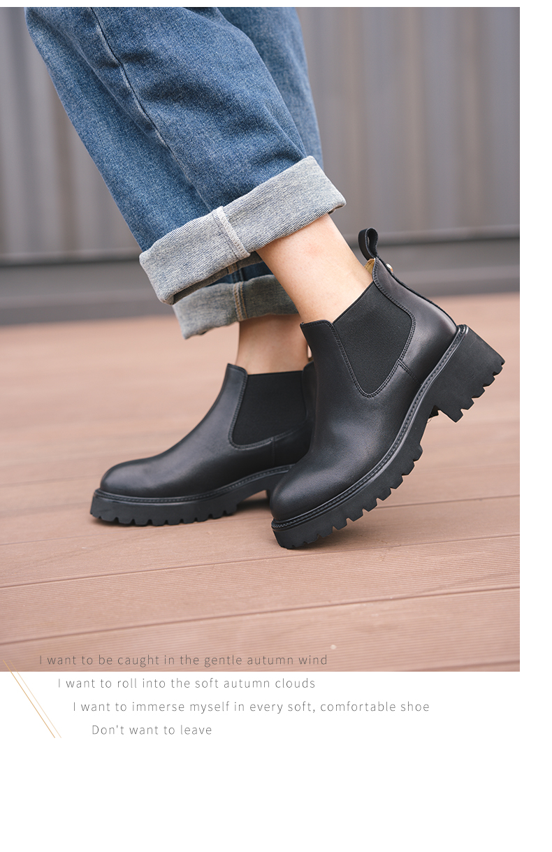 【真皮面料 气质百搭 】安启美奈厚底切尔西短靴