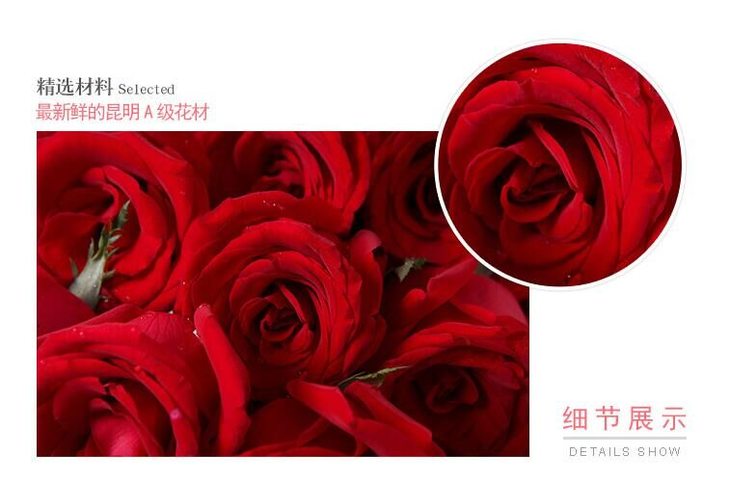 高档礼盒装鲜花:33枝红玫瑰,少量绿叶