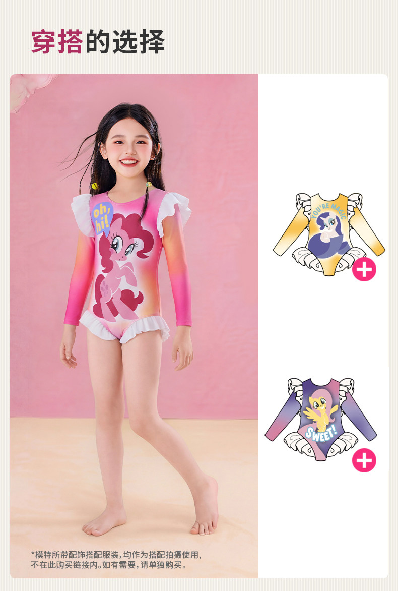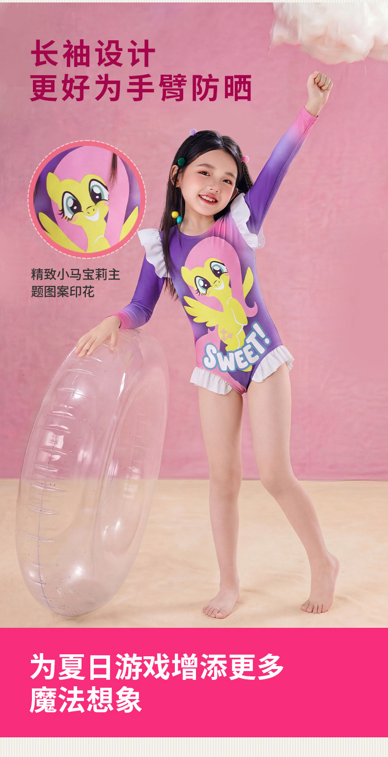 小马宝莉联名年衣童装长袖泳衣夏季新款儿童女孩卡通防晒连体泳装