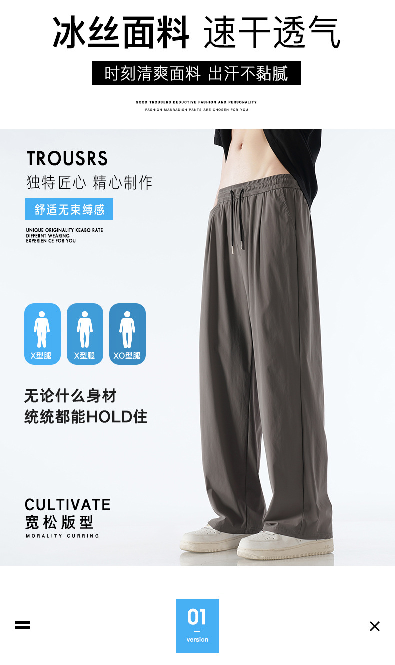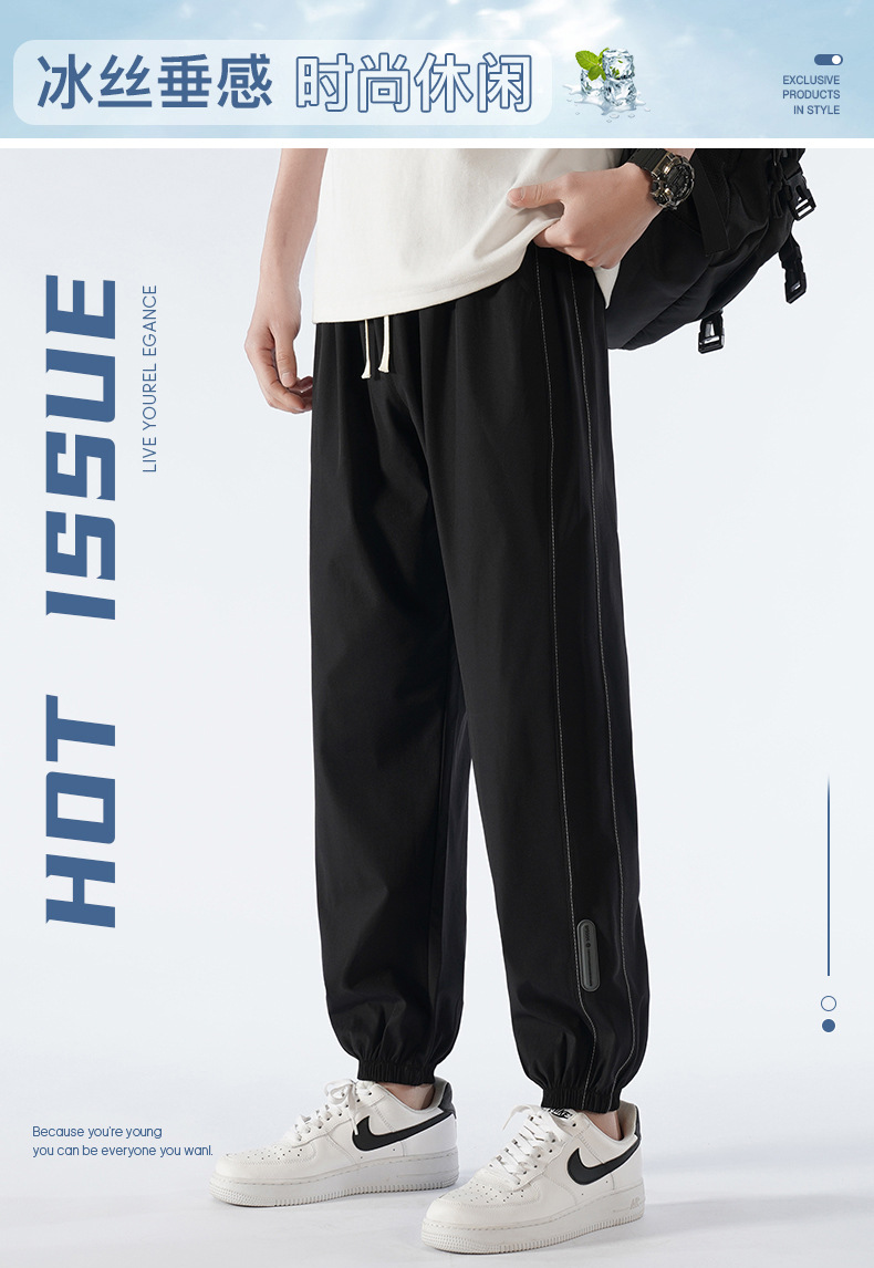 夏日男士凉感冰丝休闲裤 薄款凉感男士速干运动裤