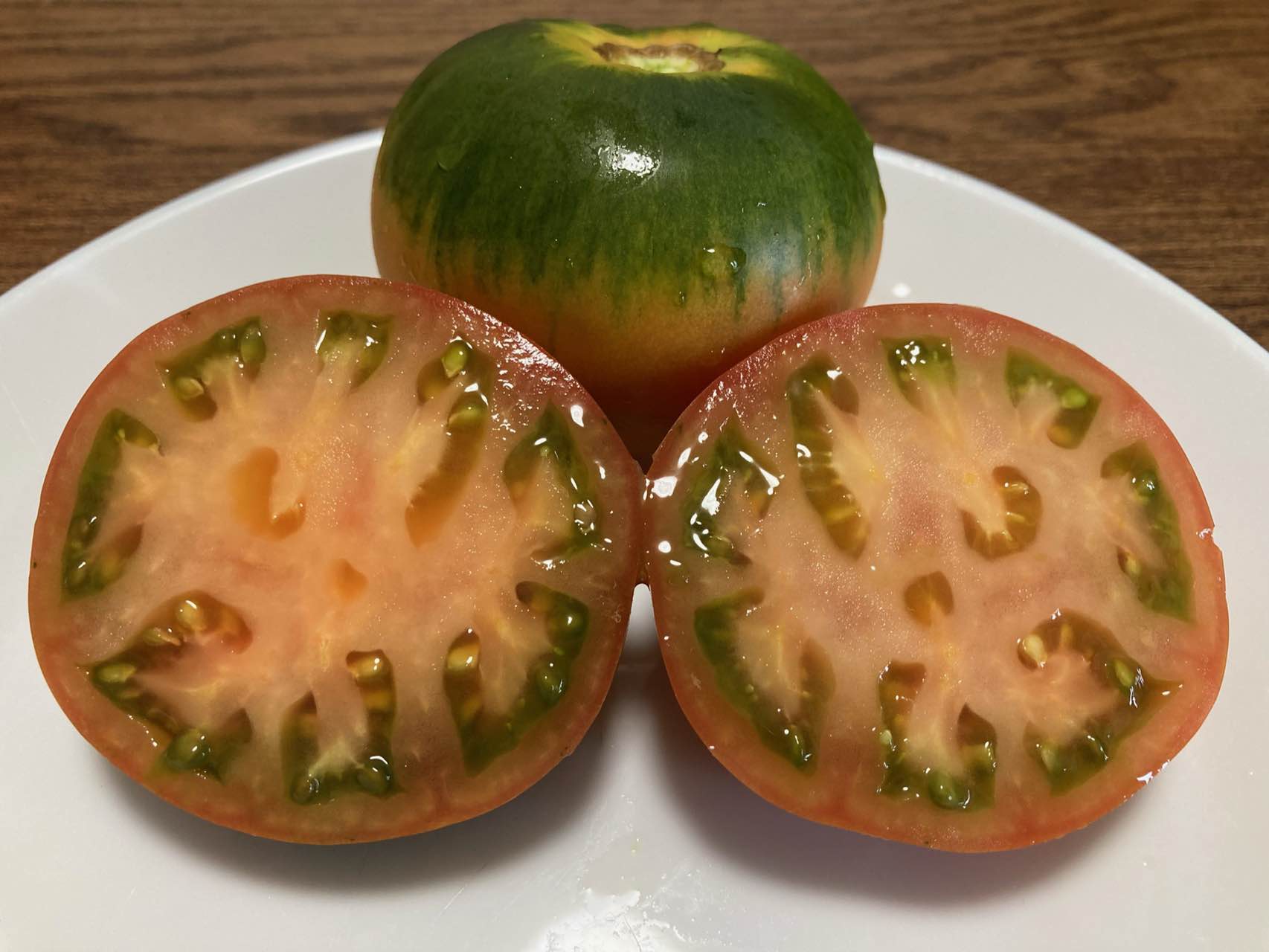 塔塔蜜番茄外观有个显著的特点-果肩部分呈现不同程度的绿色,成熟之后,绿肩也不会完全消失。有很多朋友以为番茄没熟,会酸的难以入口,但这都是被它的外表欺骗了,恰恰这样的塔塔蜜番茄非常甜,皮脆肉滑,入口香味浓郁,酸甜都恰到好处!