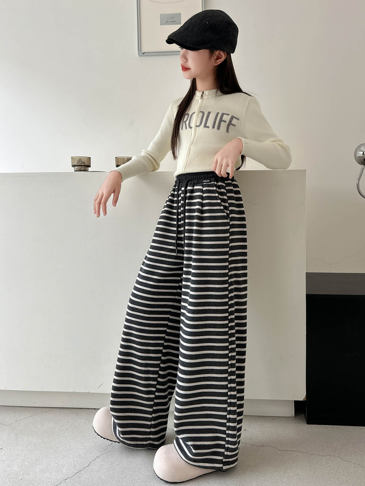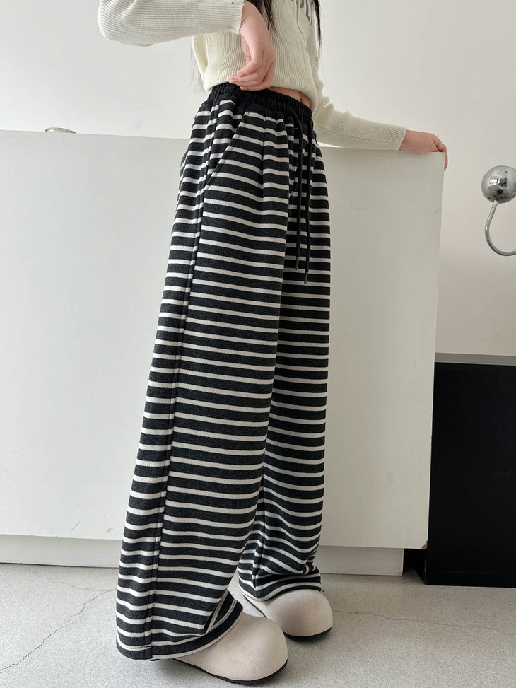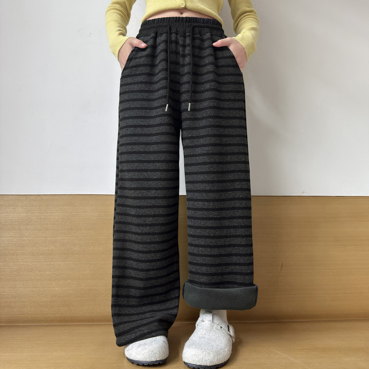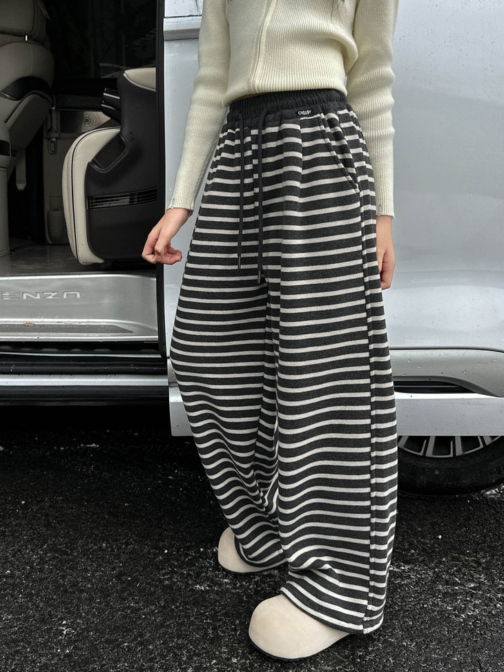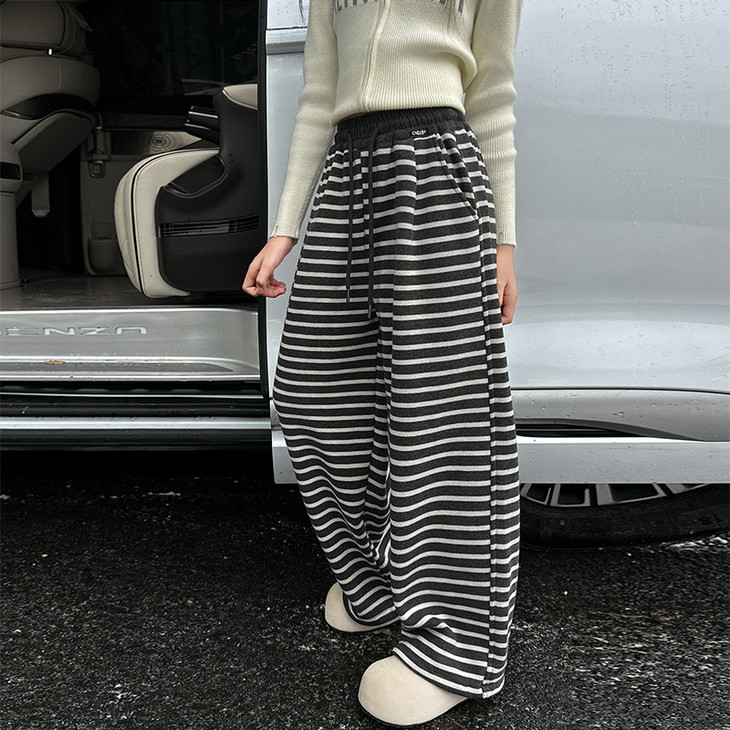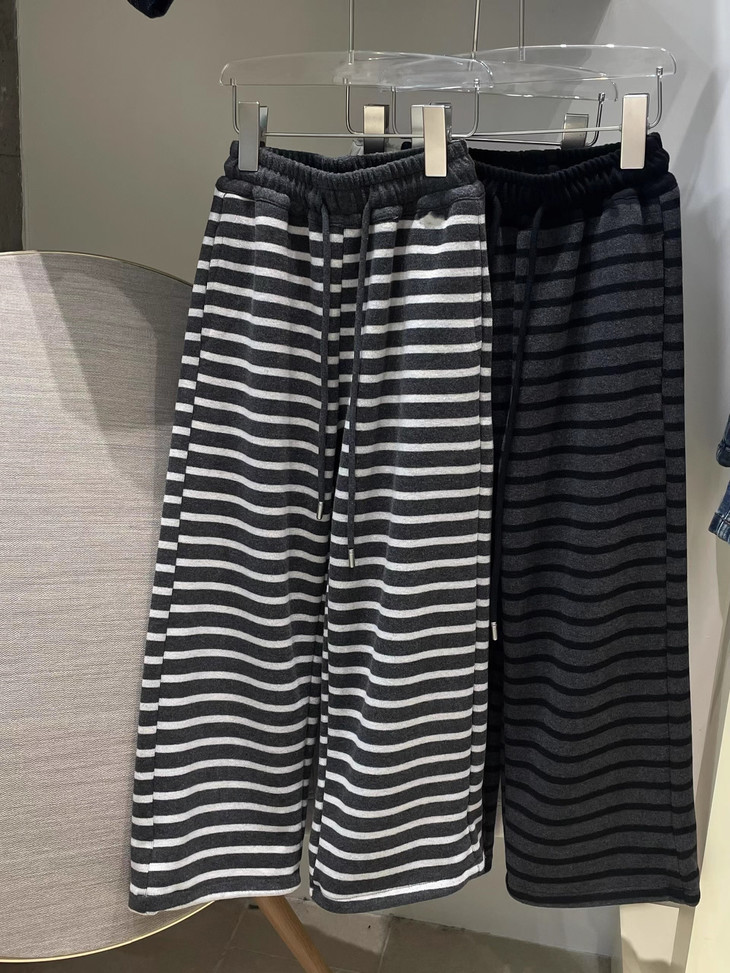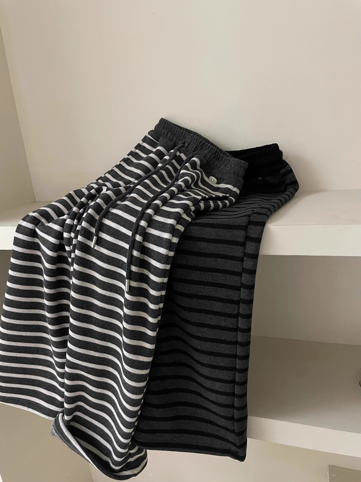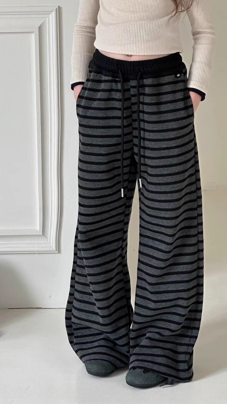 『吉米故事▪韩系慵懒松弛感条纹加绒裤』