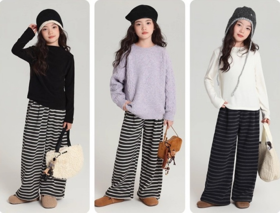 冬天松弛感拉爆❗️巨好看,真的把“舒服+好看”焊在身上了! 面料挺括有型!柔软舒适! 裤腿完全没有一丝拖沓 比例直接拉到逆天!走路带风那种 娃穿上跑跳一整天都不会闷汗,弹性腰围+抽绳设计, 胖瘦宝宝都能轻松hold住~