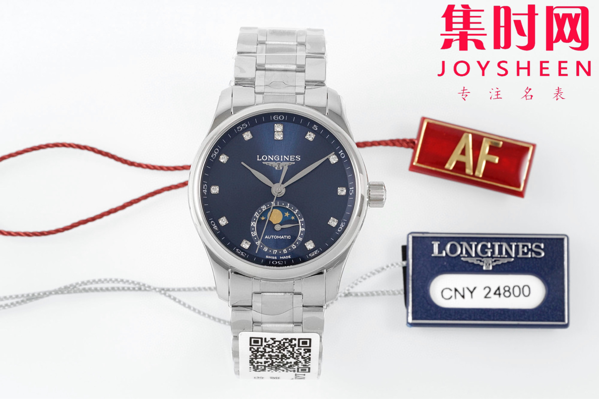 AF浪琴名匠月相系列 四针月相 名匠月相34mm 名匠月相女款 蓝盘钻面 自动机械 女士腕表 优雅新选择!