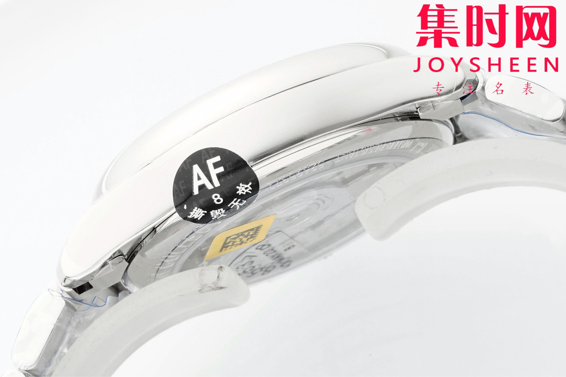 盘面匠心设计,搭配阿拉伯数字时标或钻石时标更是彰显奢华品味。6点钟位置巧妙地融入了日期显示环与月相显示窗口,使得佩戴者在欣赏月相变化的同时,也能便捷地获取当前日期信息。而银色麦粒纹饰的点缀,是对名匠腕表经典元素的完mei传承。尤其是那优美的柳叶指针,更是巧妙地衬托出整体设计的和谐与美感。