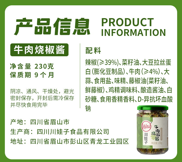 川娃子 牛肉烧椒酱 230g/罐