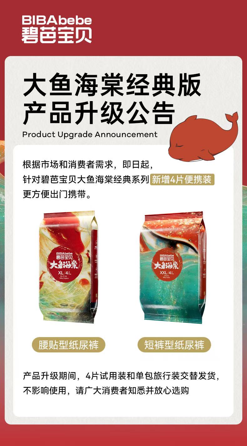 碧芭宝贝 大鱼海棠经典款婴儿纸尿裤拉拉裤4片便携装