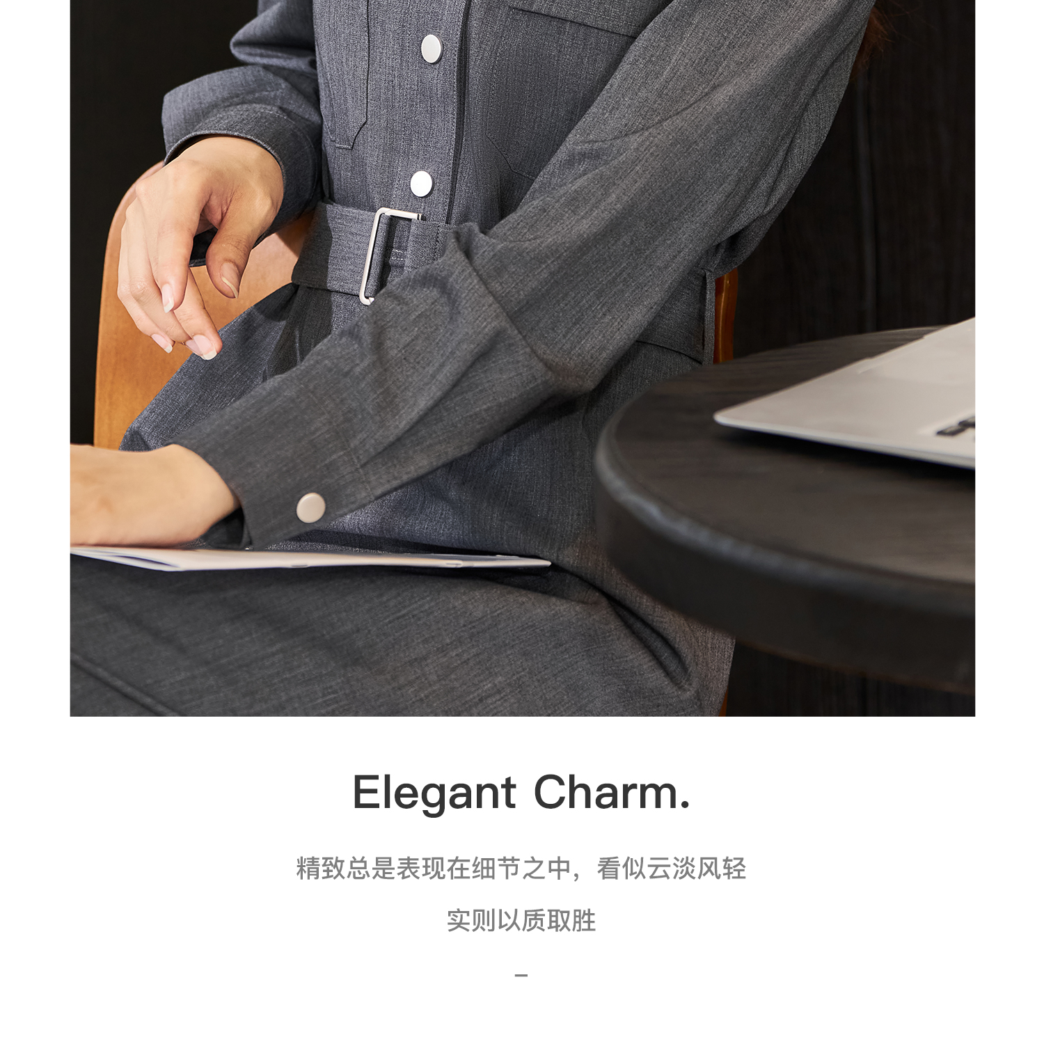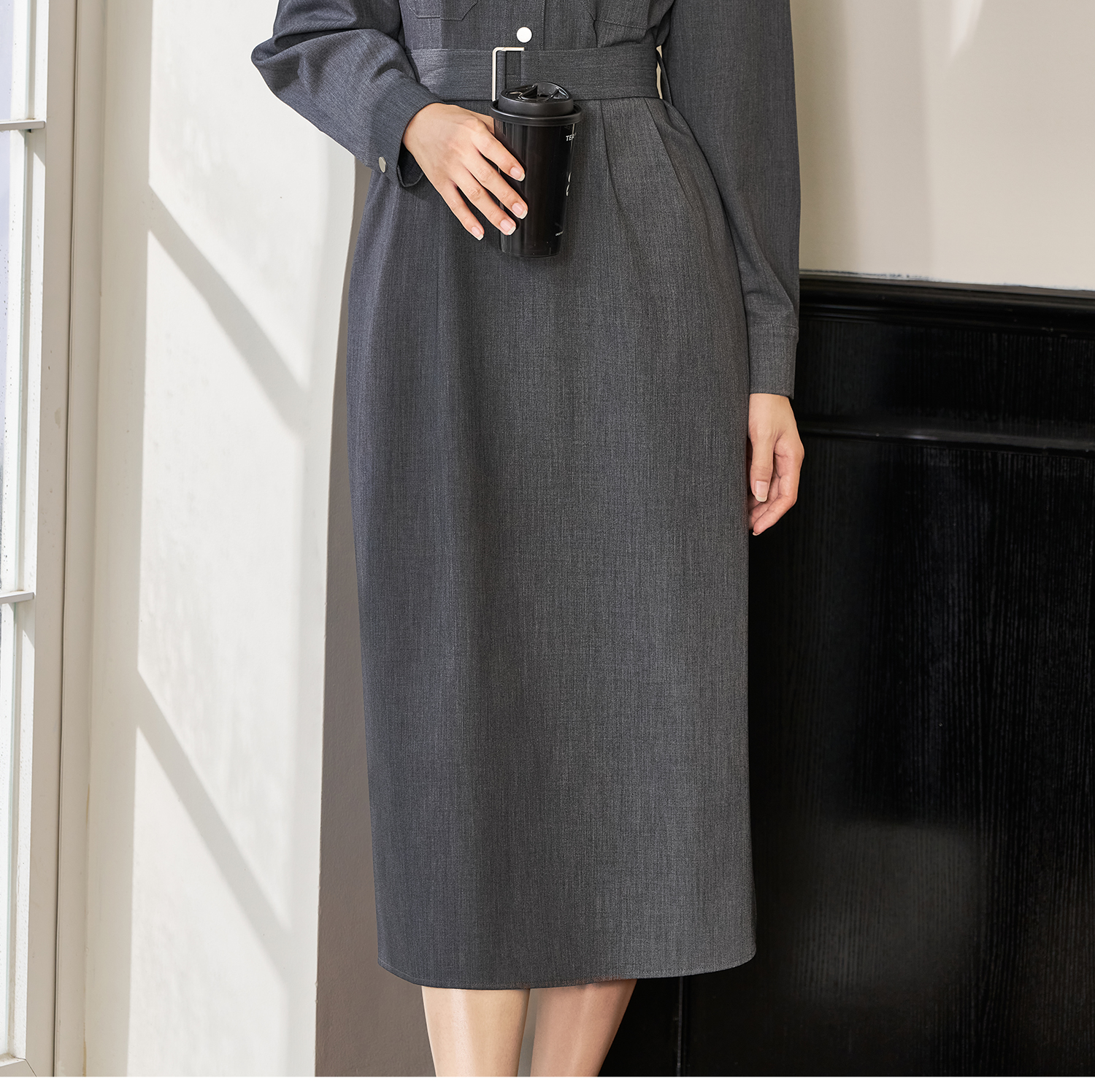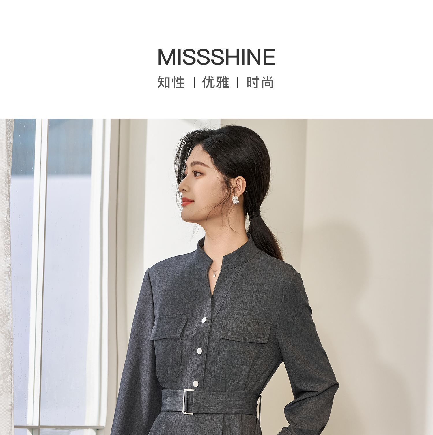 【书香衬衫裙】米思阳2026春季新款高级灰衬衫裙本部腰带优雅显气质连衣裙3926