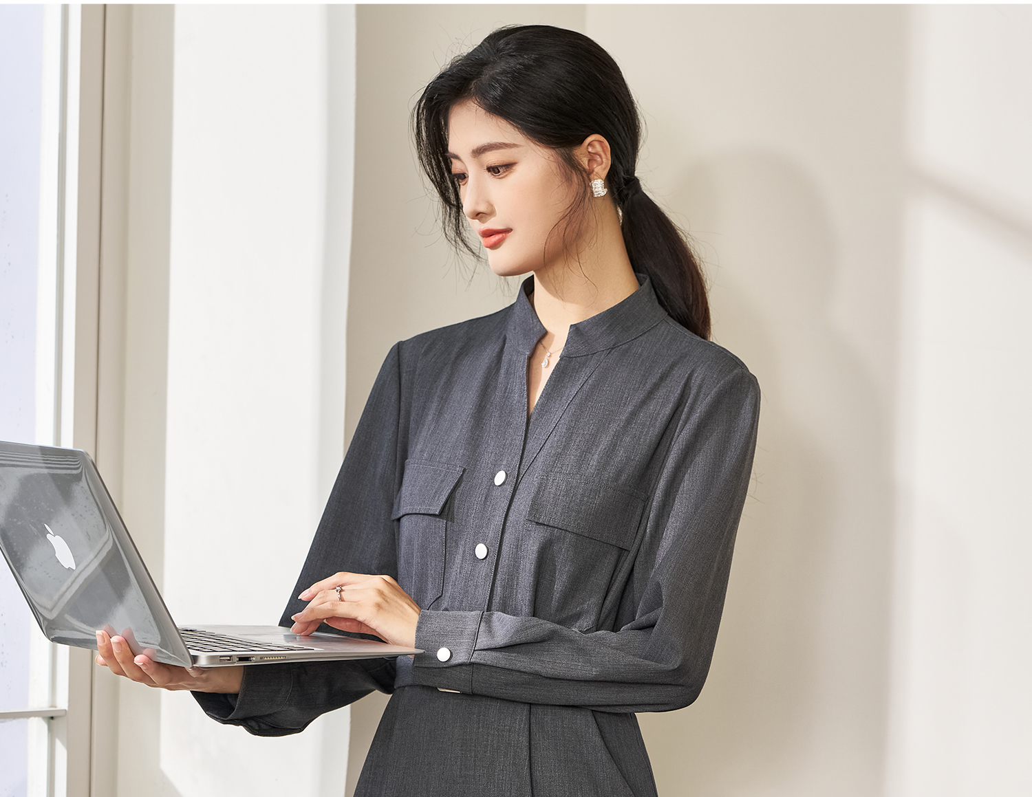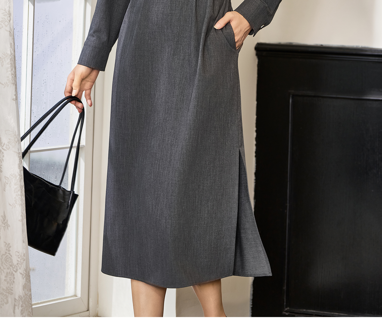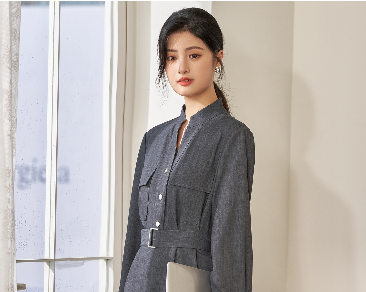 【书香衬衫裙】米思阳2026春季新款高级灰衬衫裙本部腰带优雅显气质连衣裙3926