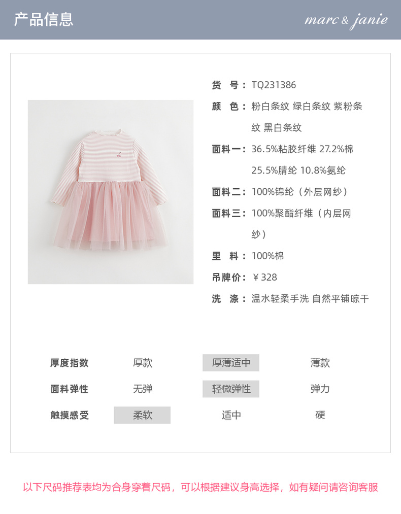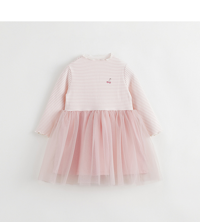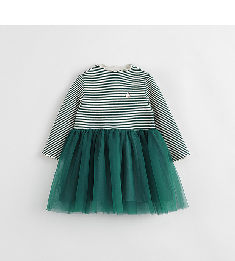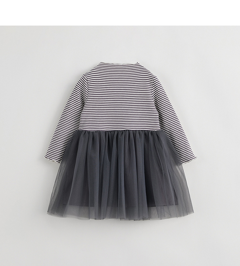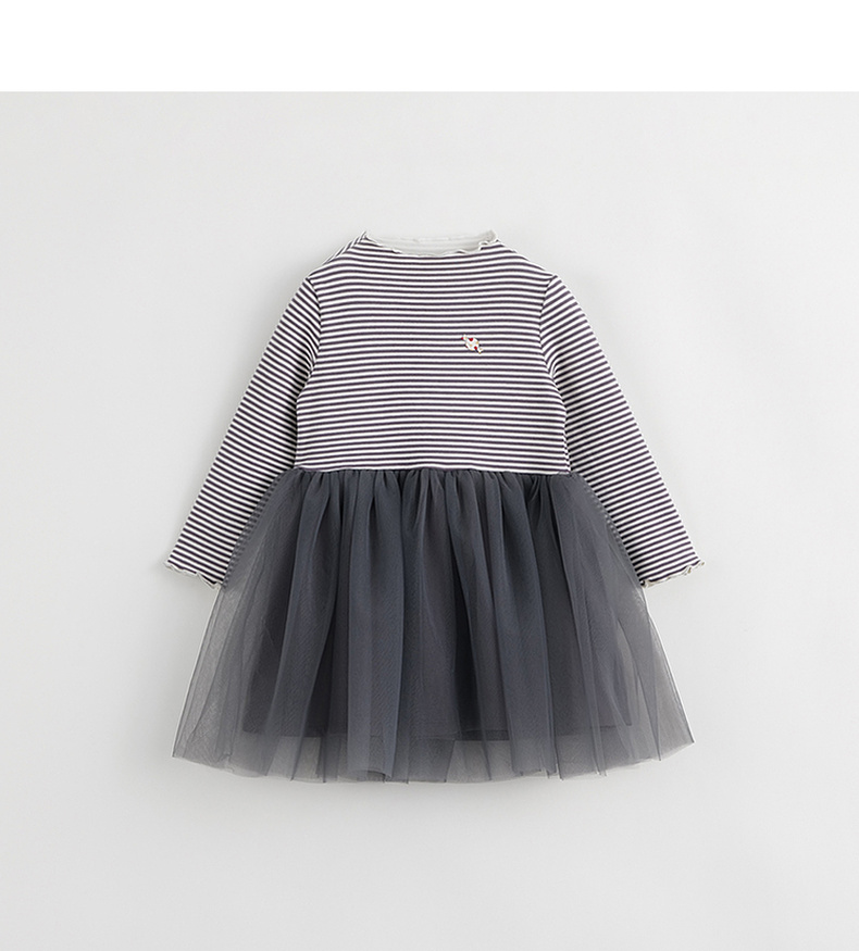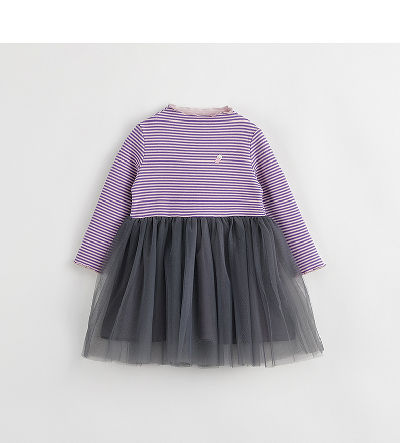 【吸湿发热】马克珍妮秋冬新款 女童半高领条纹网纱连衣裙231386