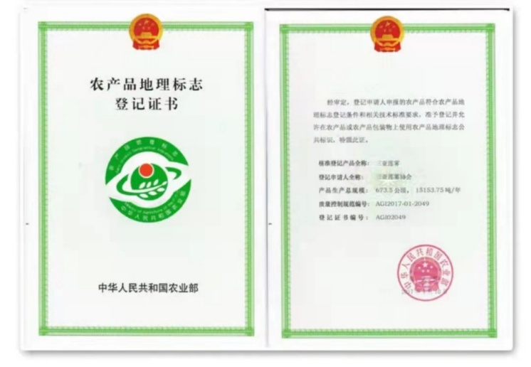 2017年获得“农产品地理标志登记证书”。