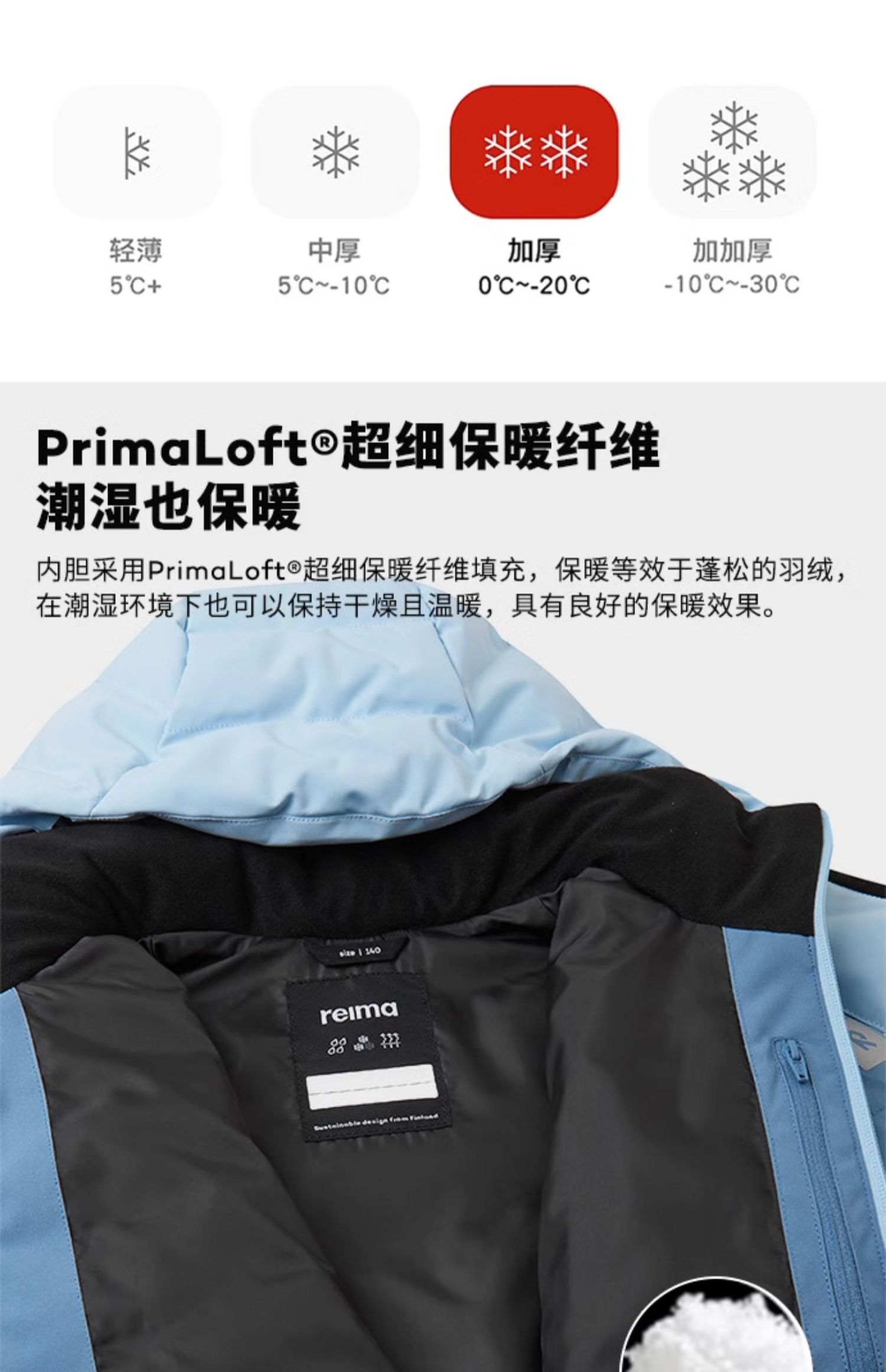 芬兰reima2024年秋冬款男女儿童大童防风透湿耐磨拒水儿童棉夹克