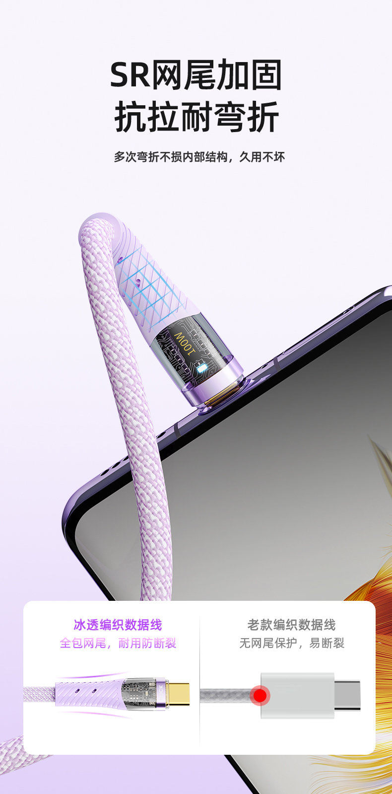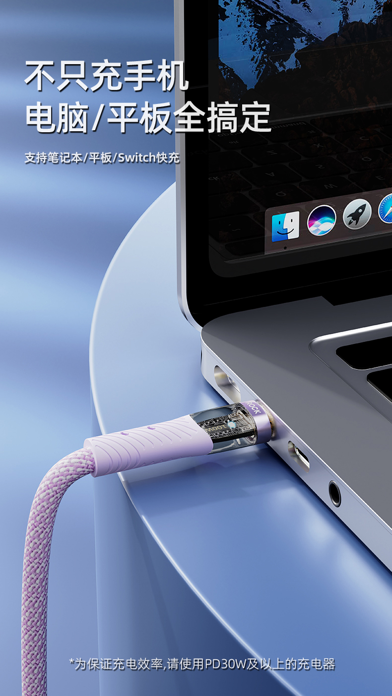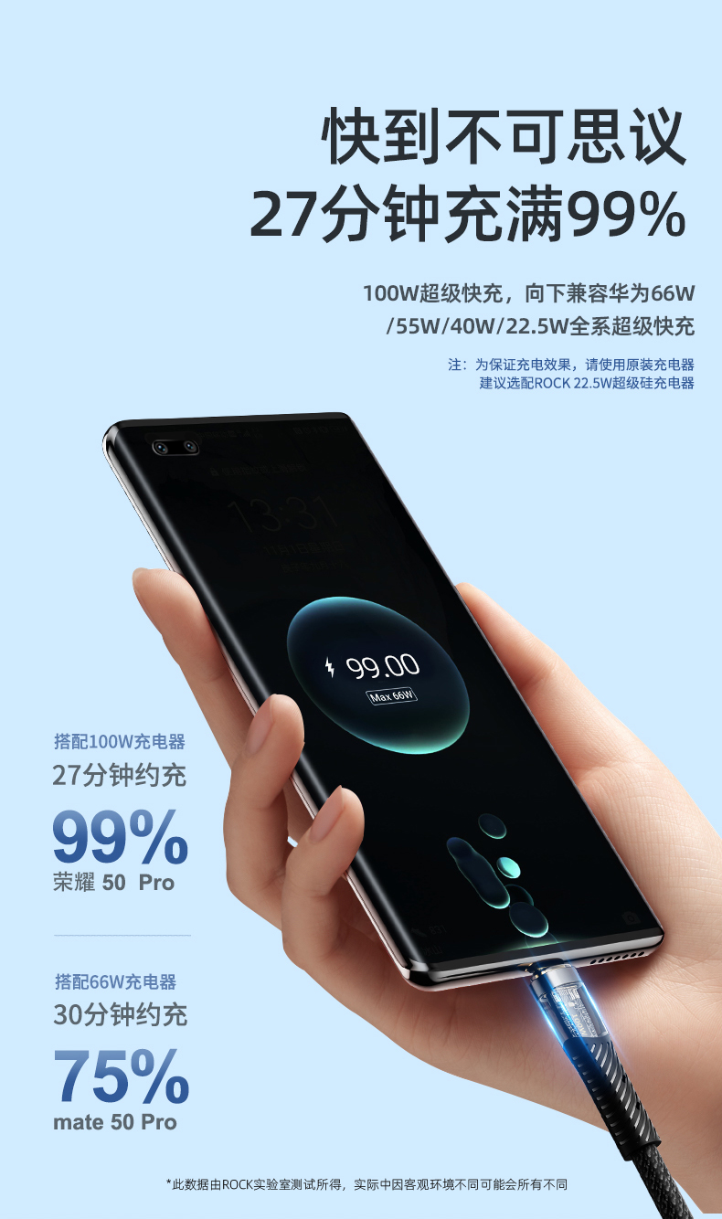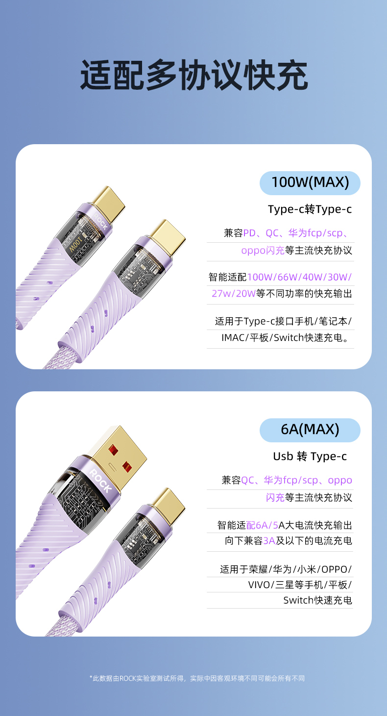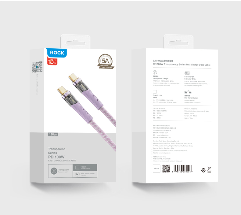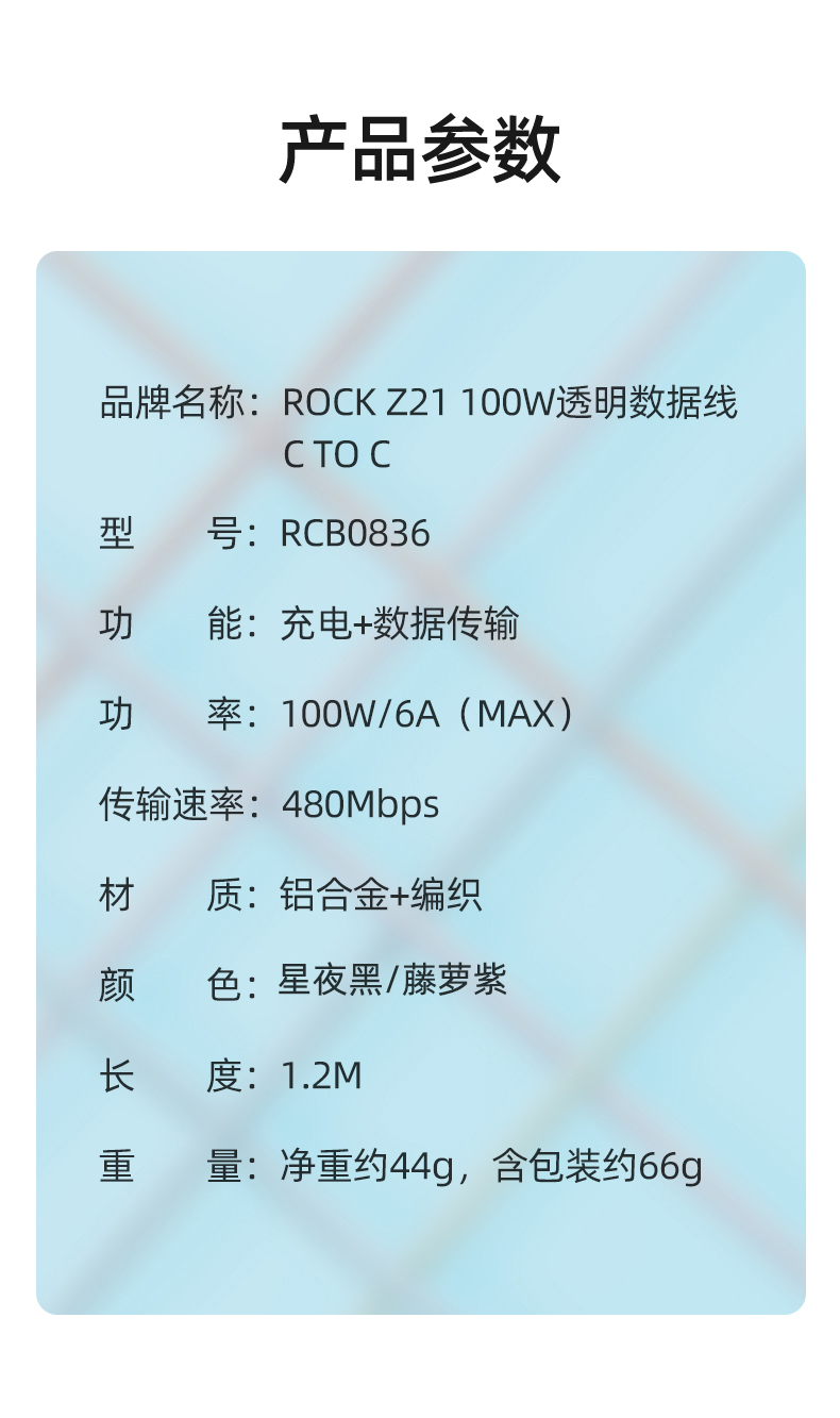 ROCK Z21 C TO C 100W 1.2M透明数据线