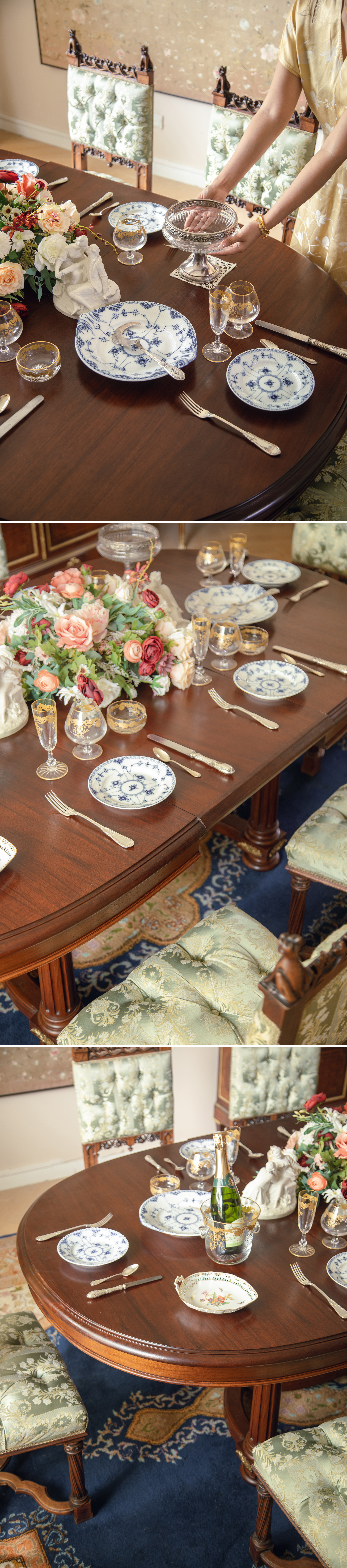 独角鹿西洋古董1925年代法国出品装饰艺术风格铜鎏金装饰双C纹底座及立柱造型桌腿胡桃木精雕可伸缩式中央桌