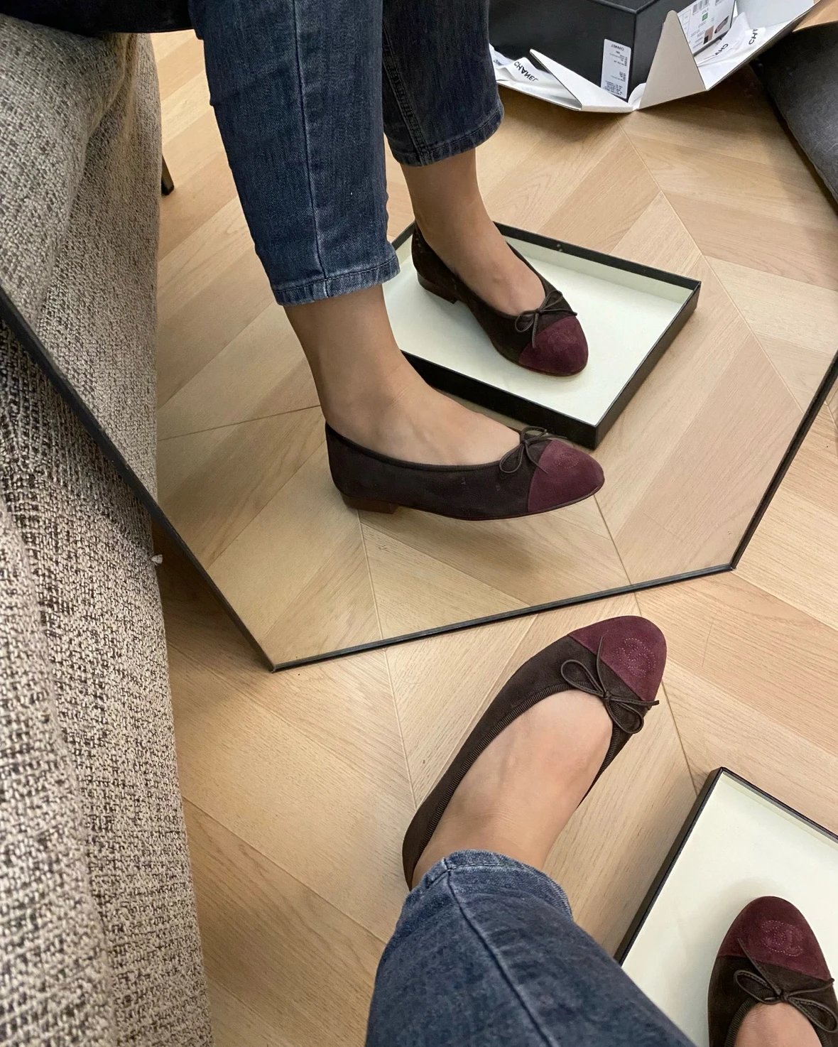 万年经典款 双C麂皮舞蹈鞋 万年经典款 双色单鞋 菱格纹芭蕾舞鞋 巨舒服