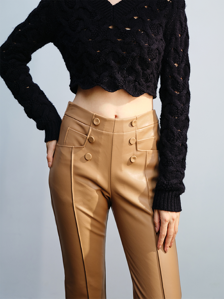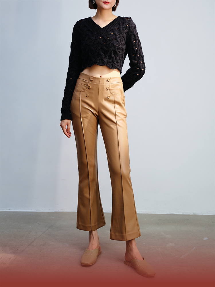 LIYIHAN 小喇叭皮长裤 Y234K13090
