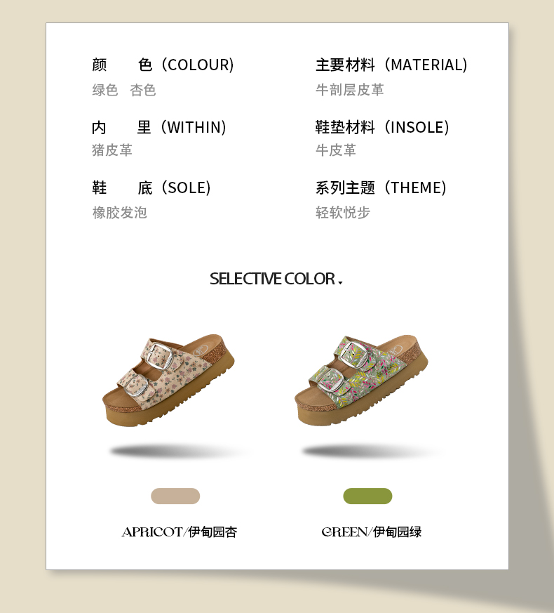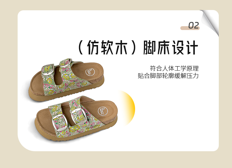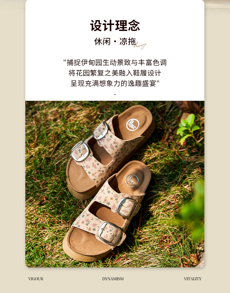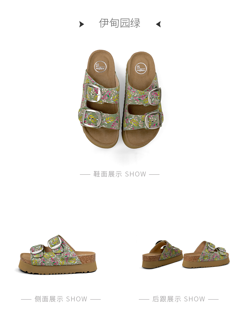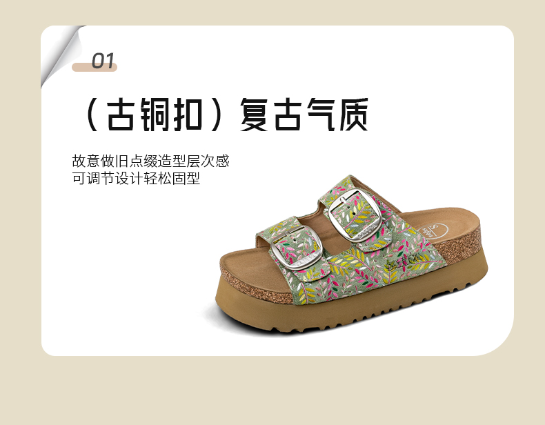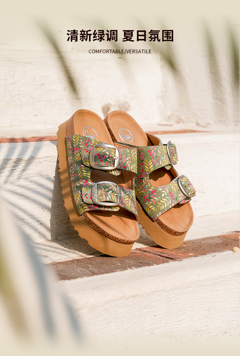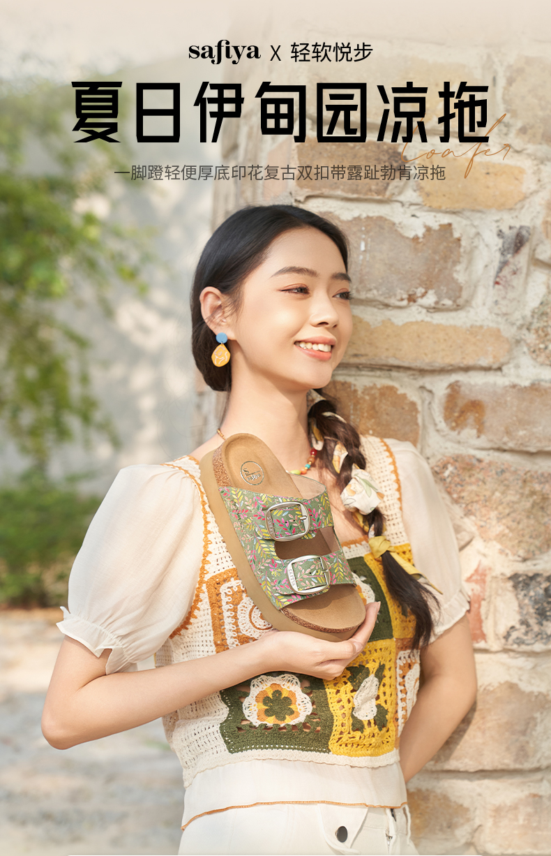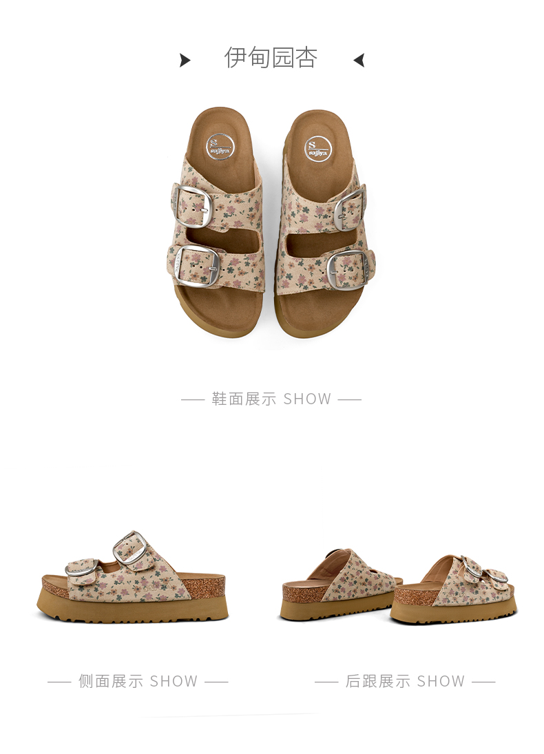 Safiya/索菲娅2025一脚蹬轻便厚底印花复古双扣带露趾勃肯凉拖 SFD2110156