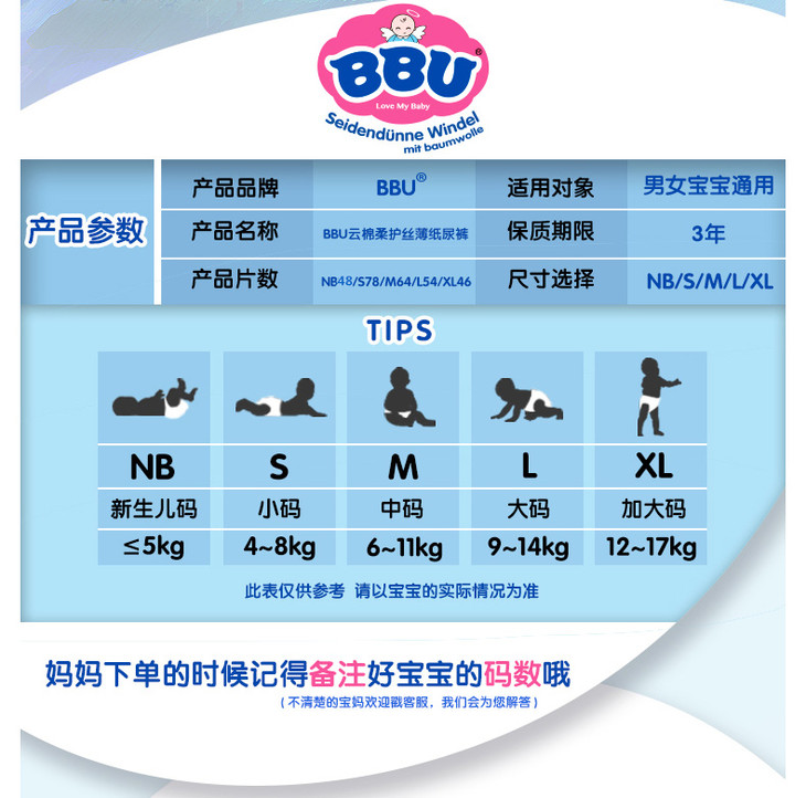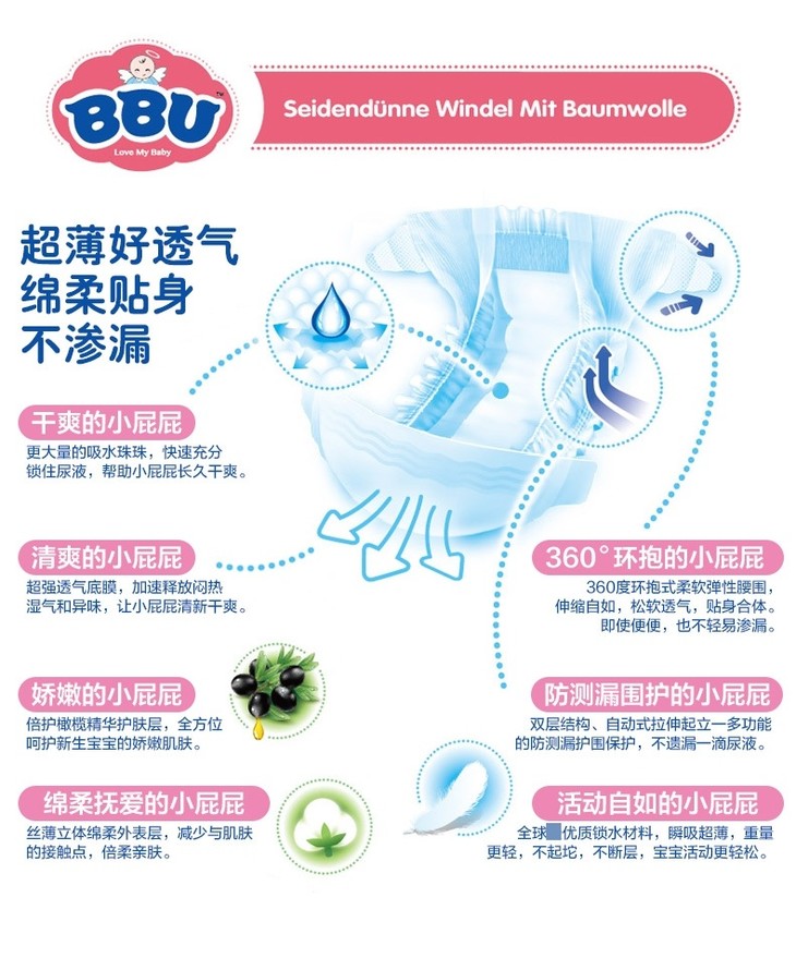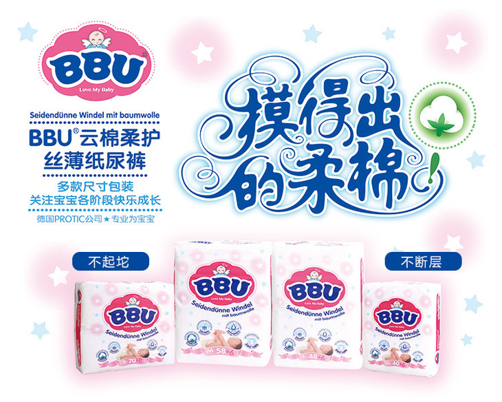 (超值)德国进口BBU云棉纸尿裤超薄透气婴儿幼儿男女通用尿不湿