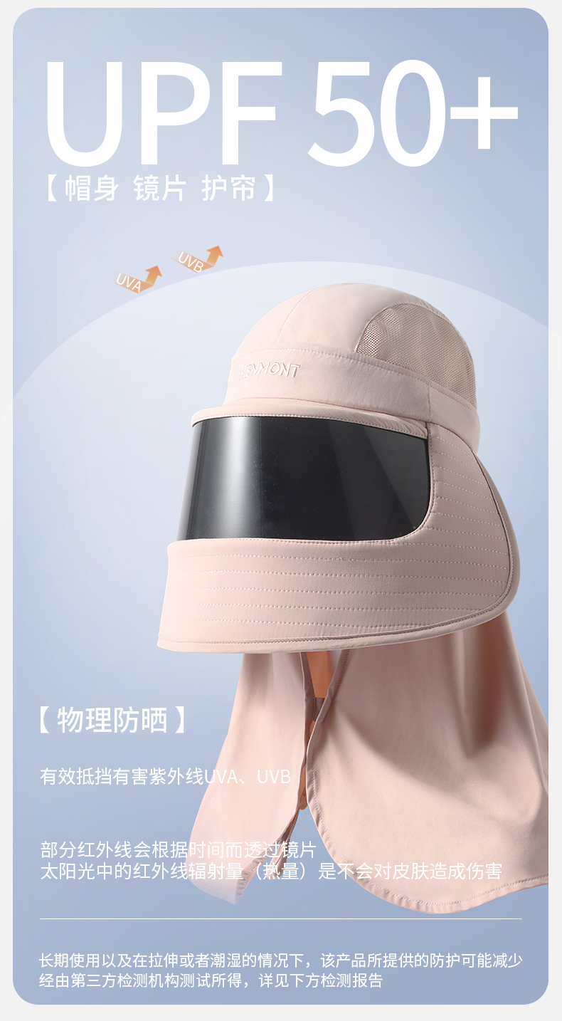 卡蒙户外全方位医美防晒帽女夏防风透气防紫外线面罩遮全脸遮阳帽KM-3774