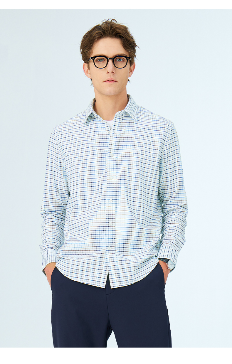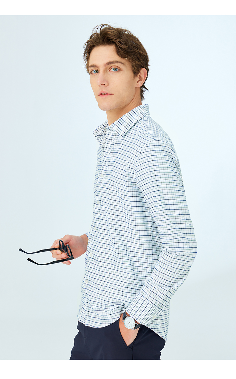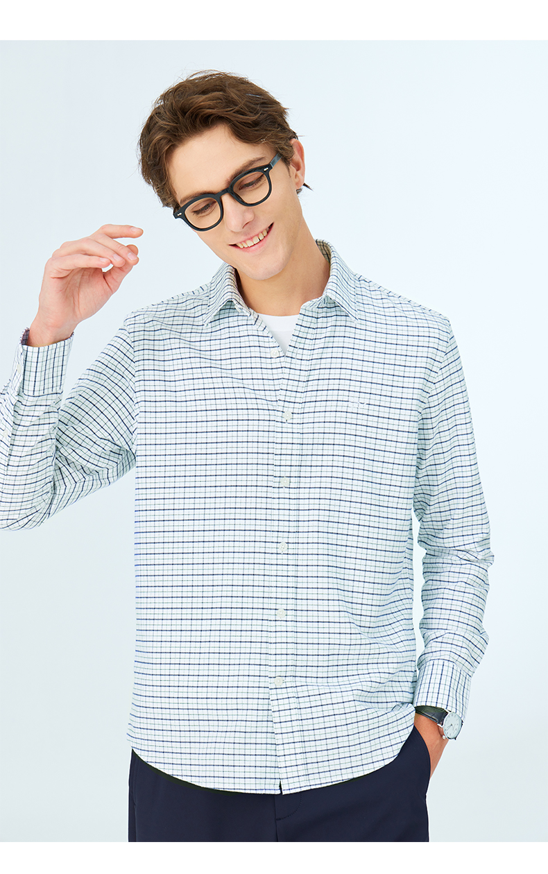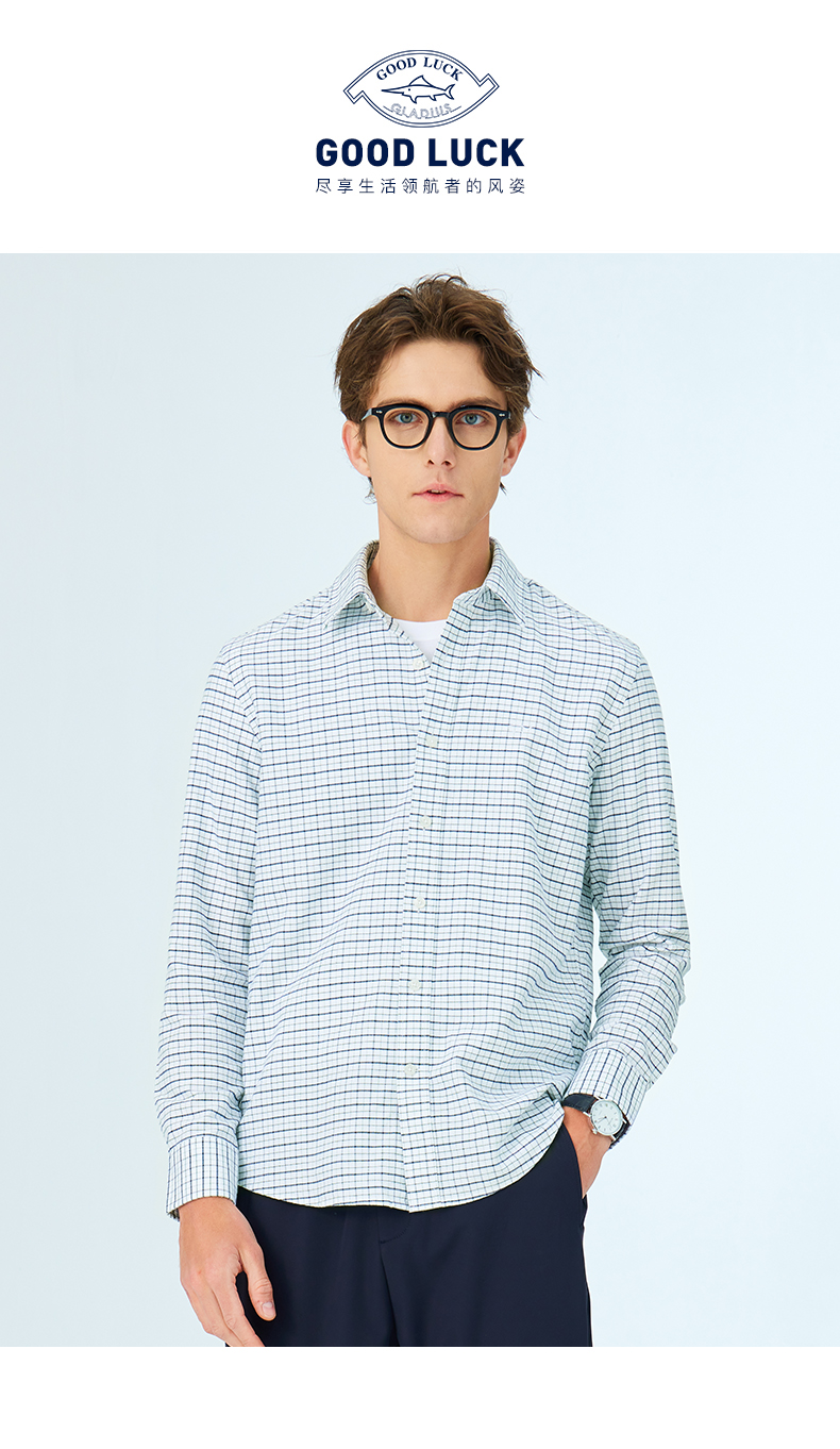GOOD LUCK/德鲨弹力舒适清新格纹长袖衬衫LY21103-843