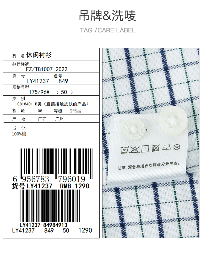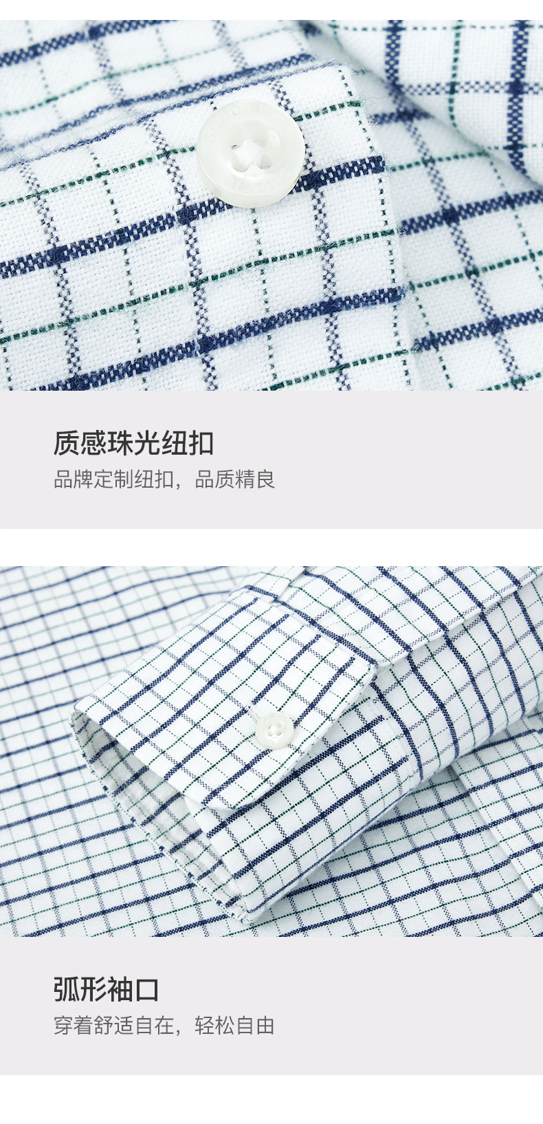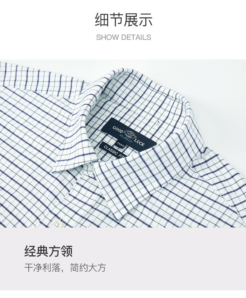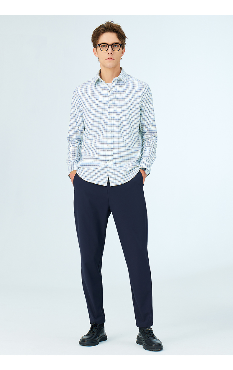GOOD LUCK/德鲨弹力舒适清新格纹长袖衬衫LY21103-843