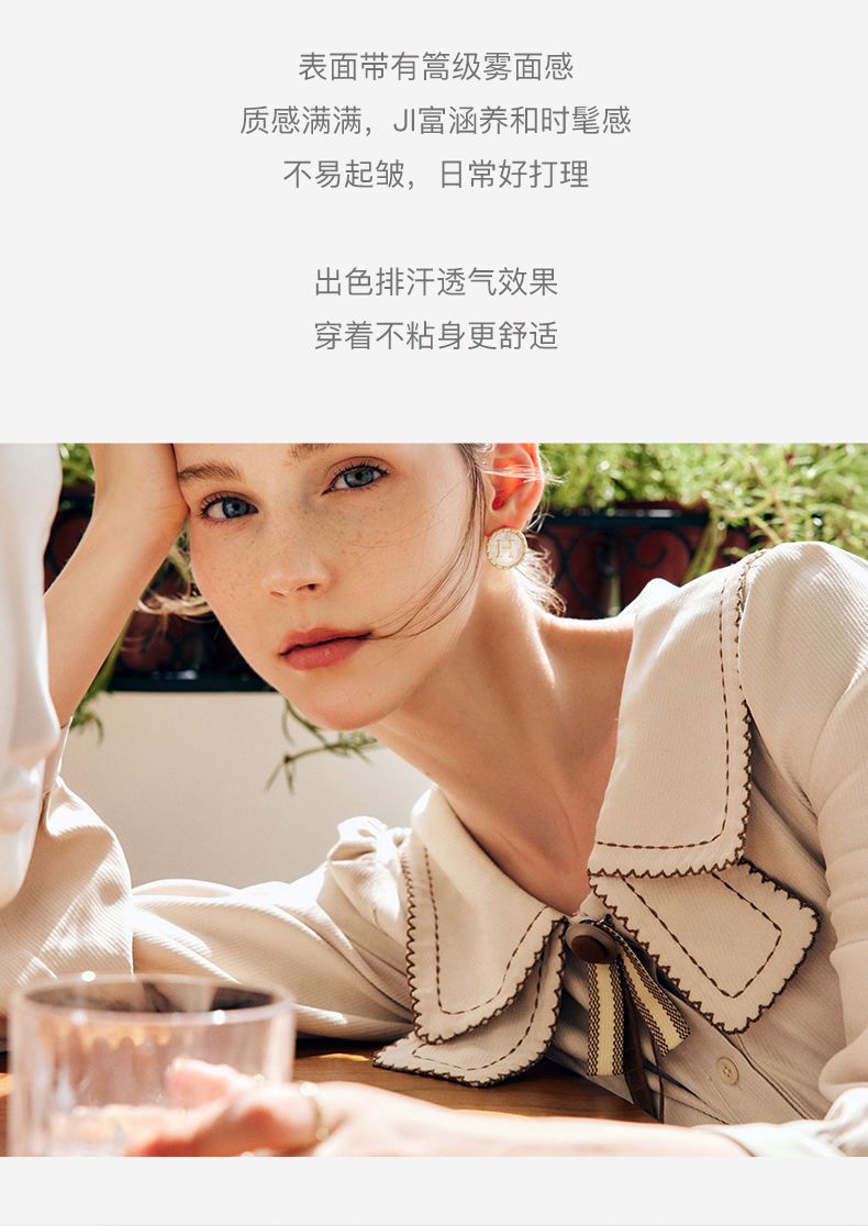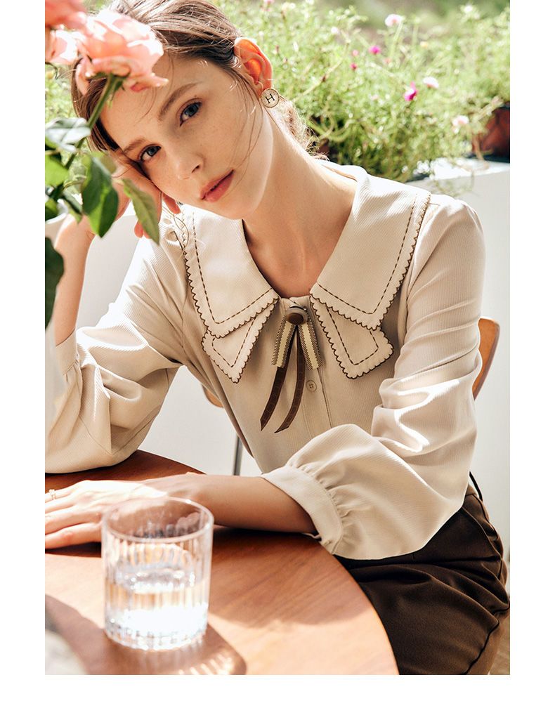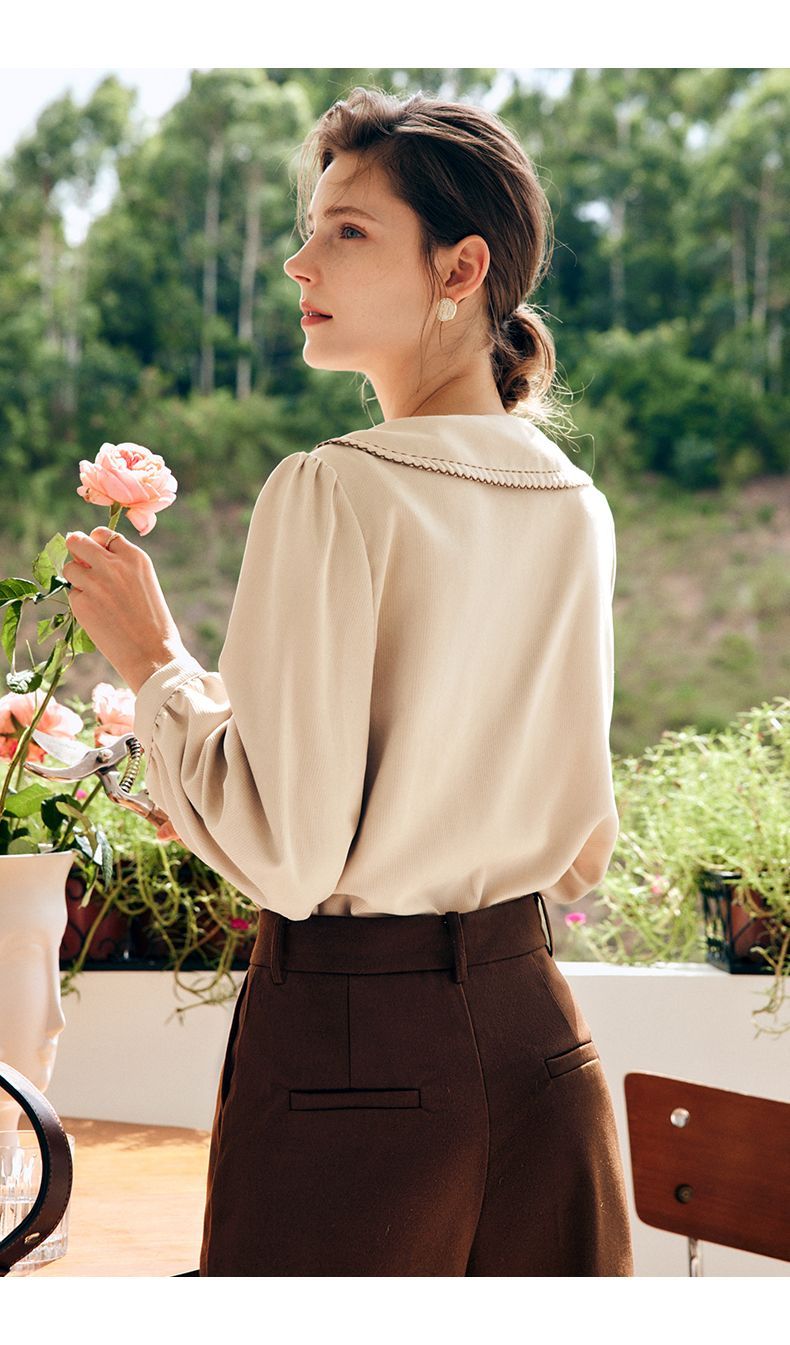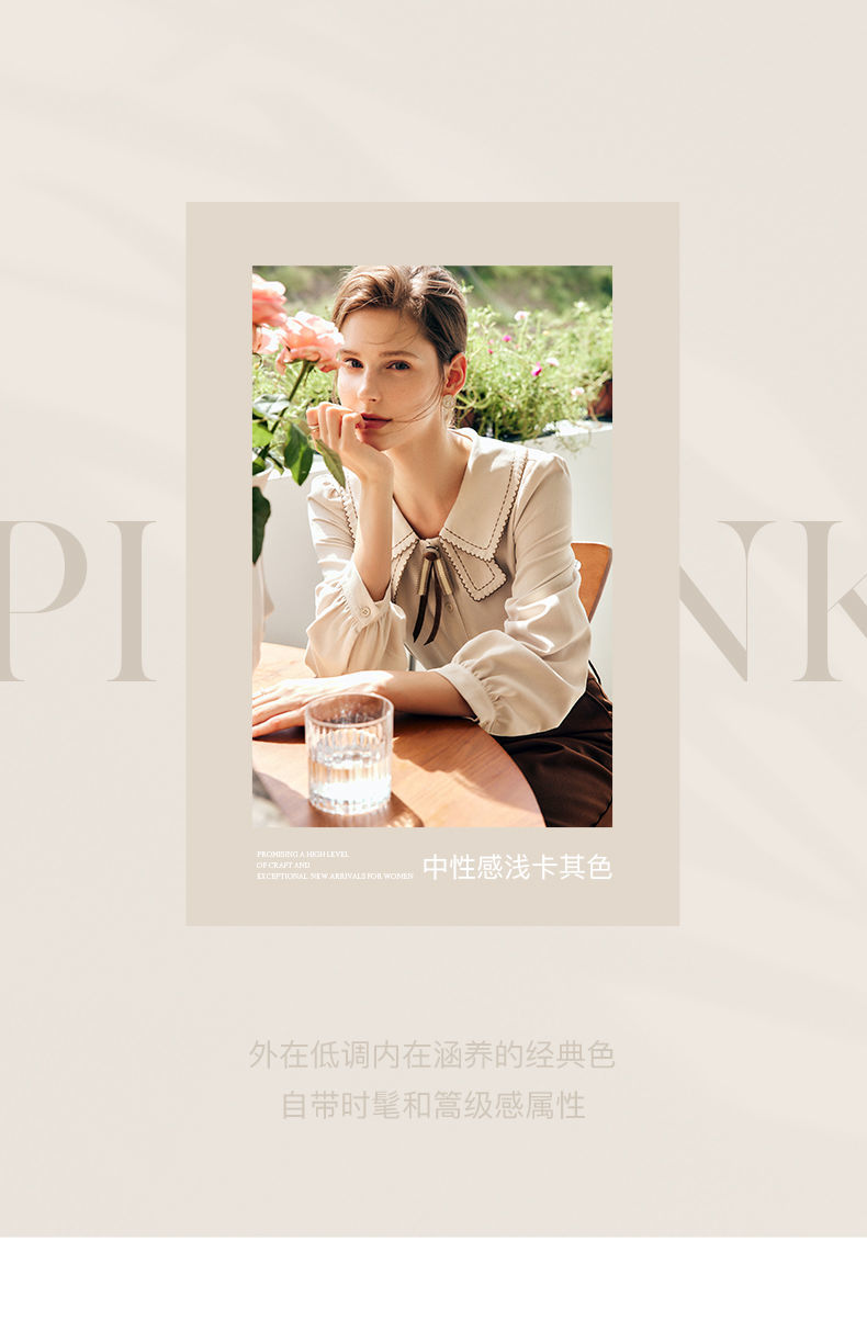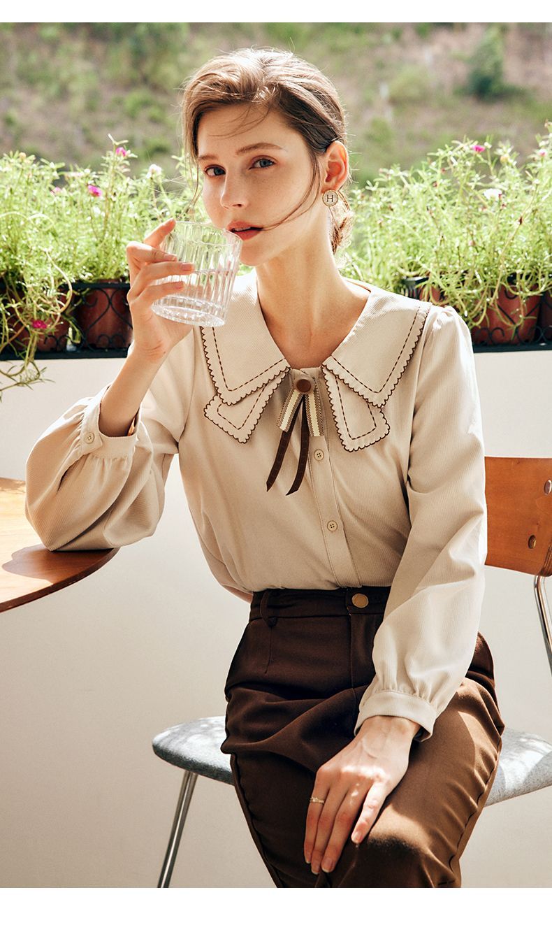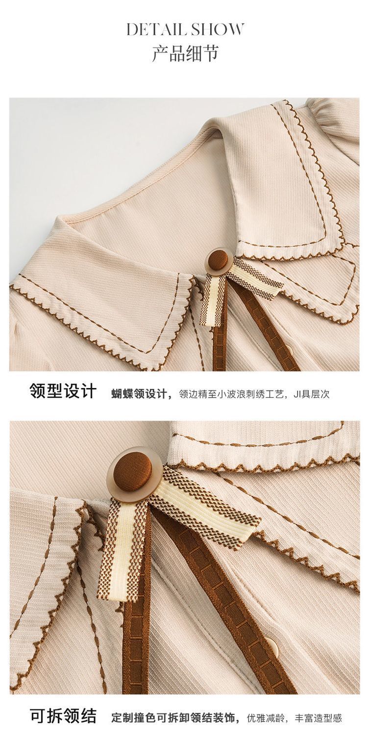 OLrain欧芮儿法式卡其色衬衫女秋季2022年新款洋气蝴蝶结减龄衬衣