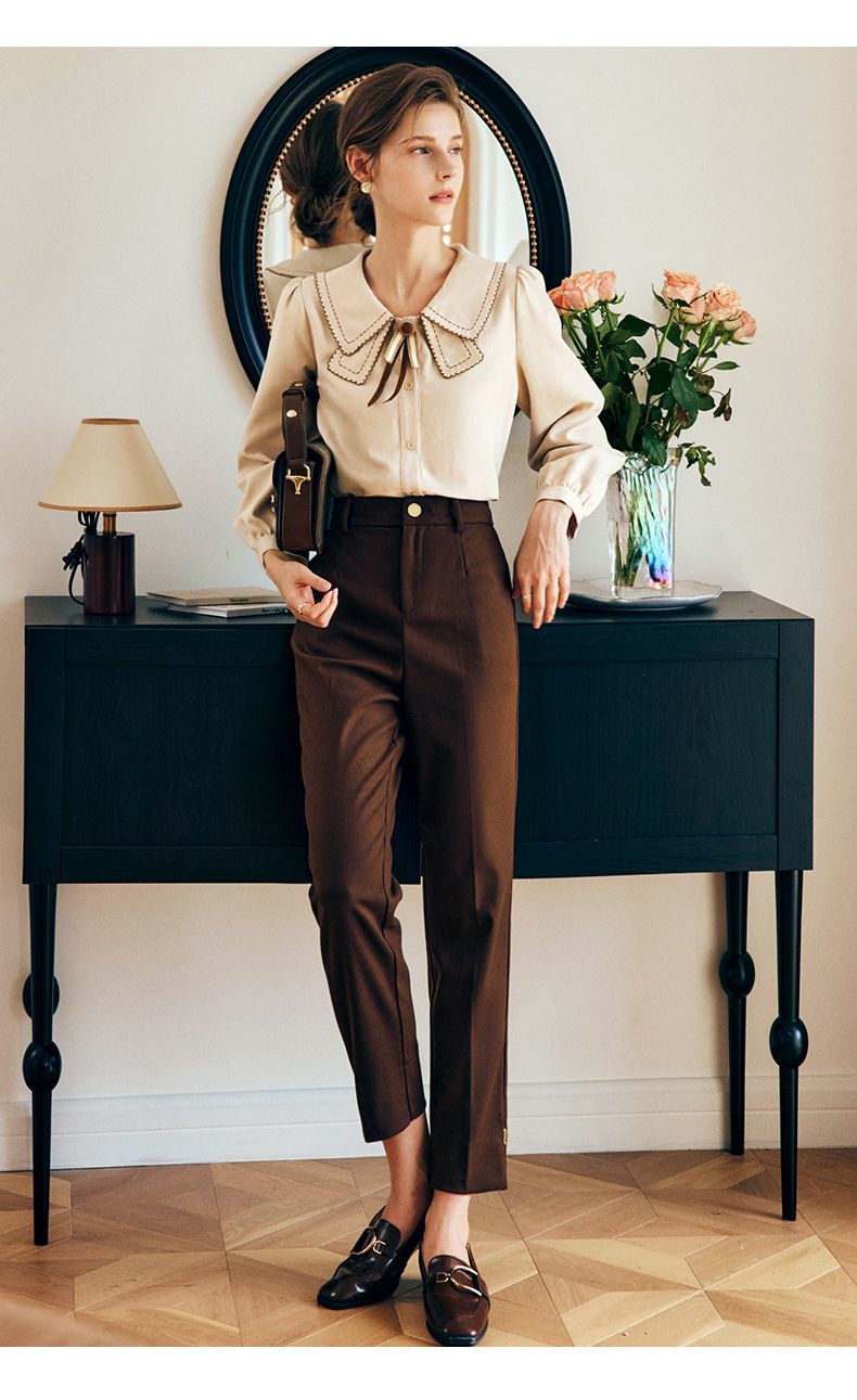 大长腿的秘密 高级感老钱风【梦惠妮 高腰花苞休闲裤】特殊版型 包容身材 遮肉显瘦 视觉显高 水洗棉透气不粘汗 九分裤阔腿裤 #M663