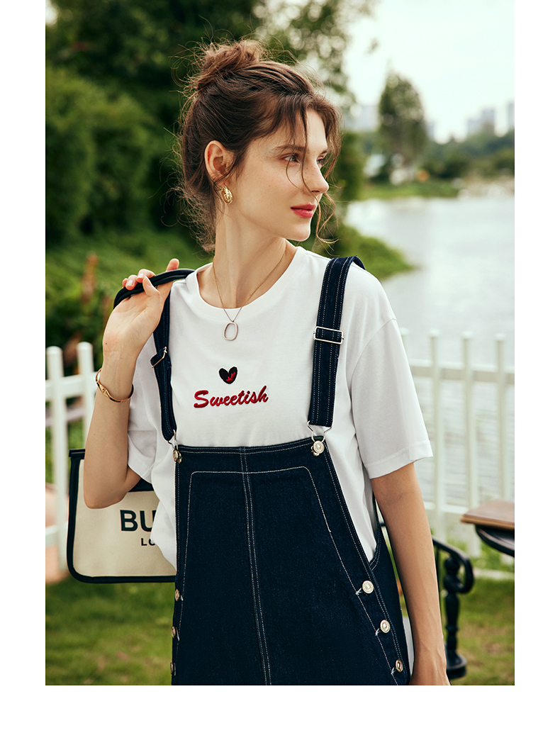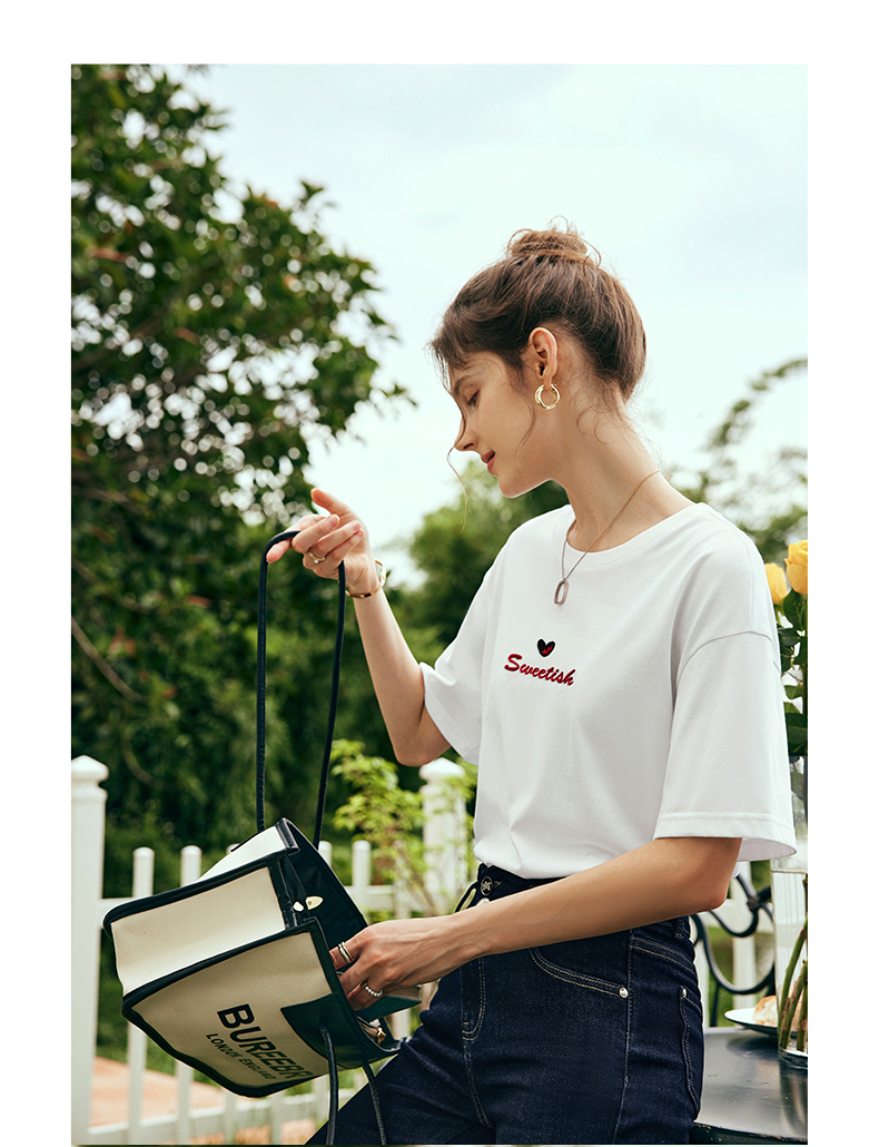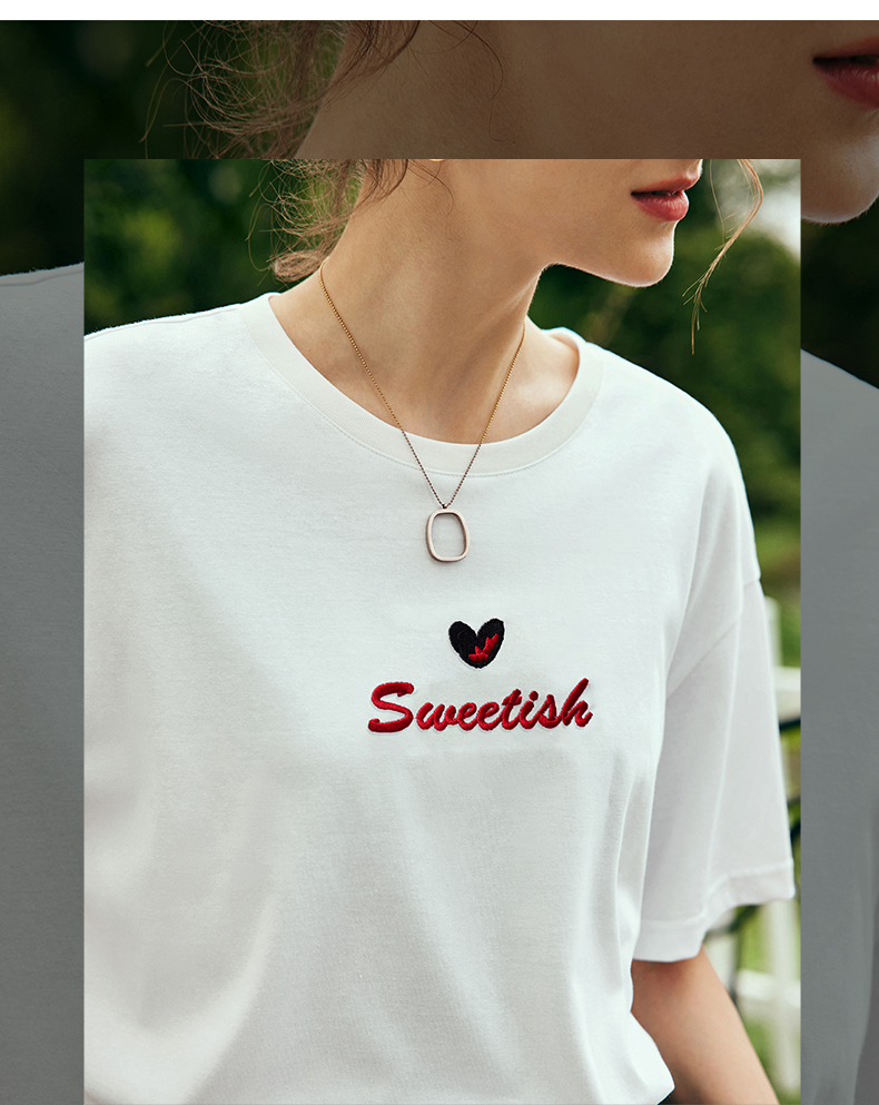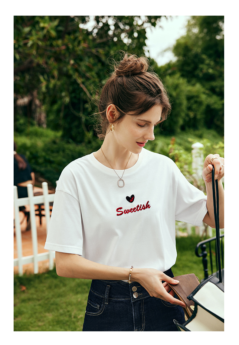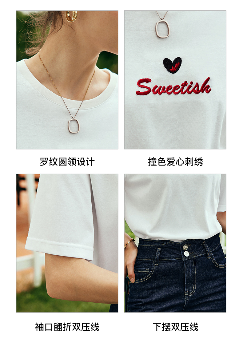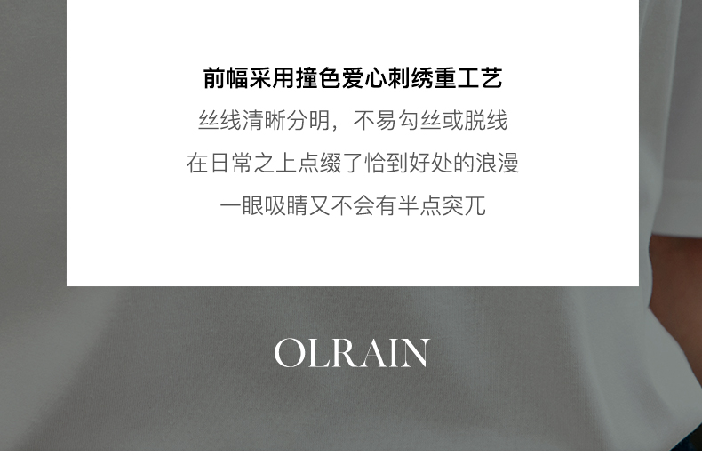 OLrain欧芮儿法式白色短袖T恤女夏2024新款宽松爱心撞色刺绣上衣