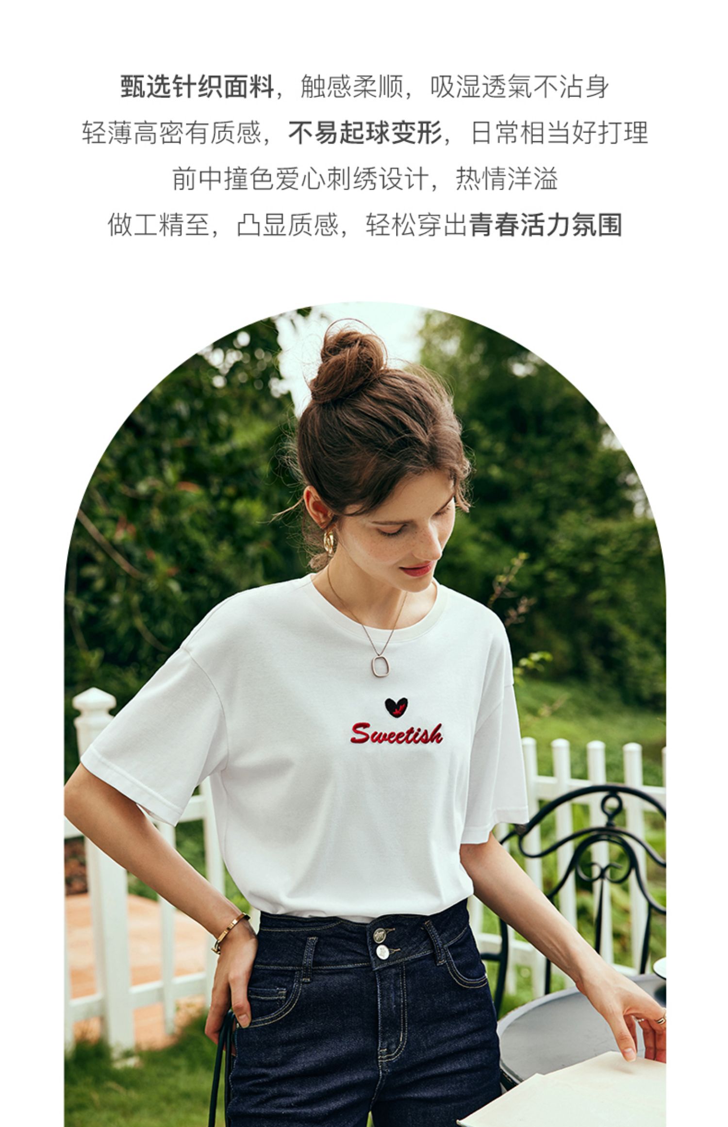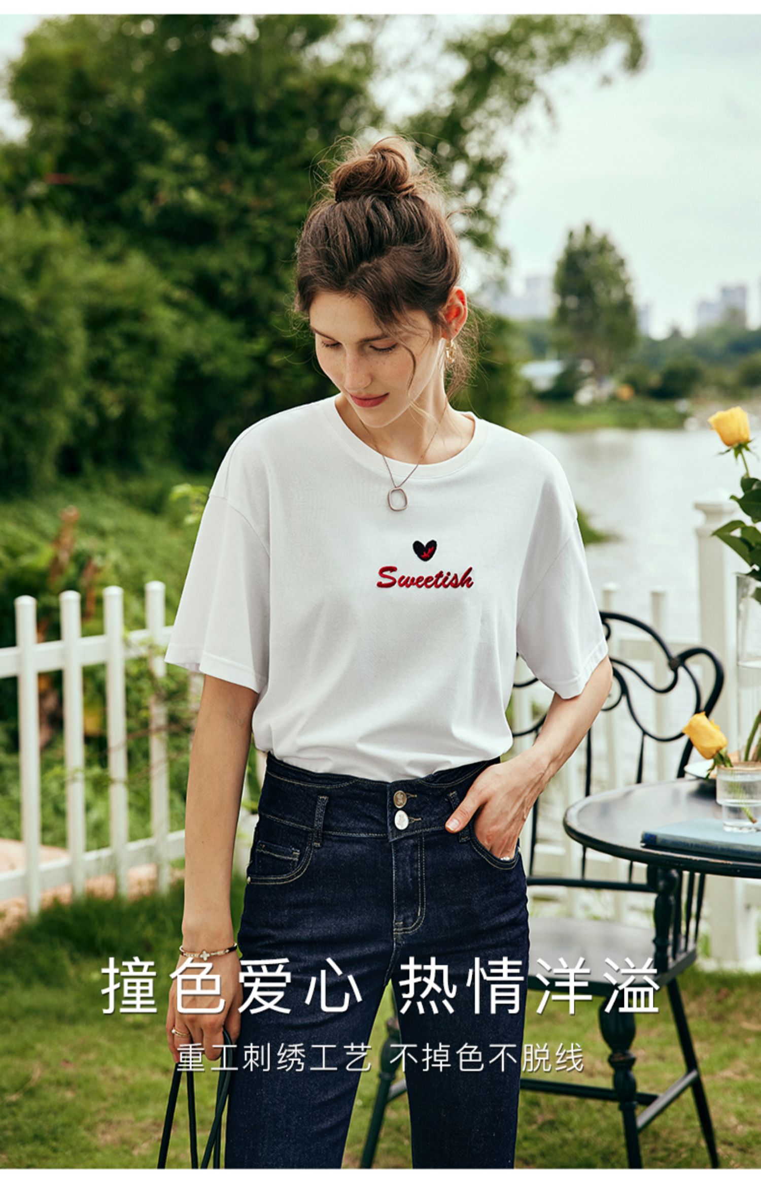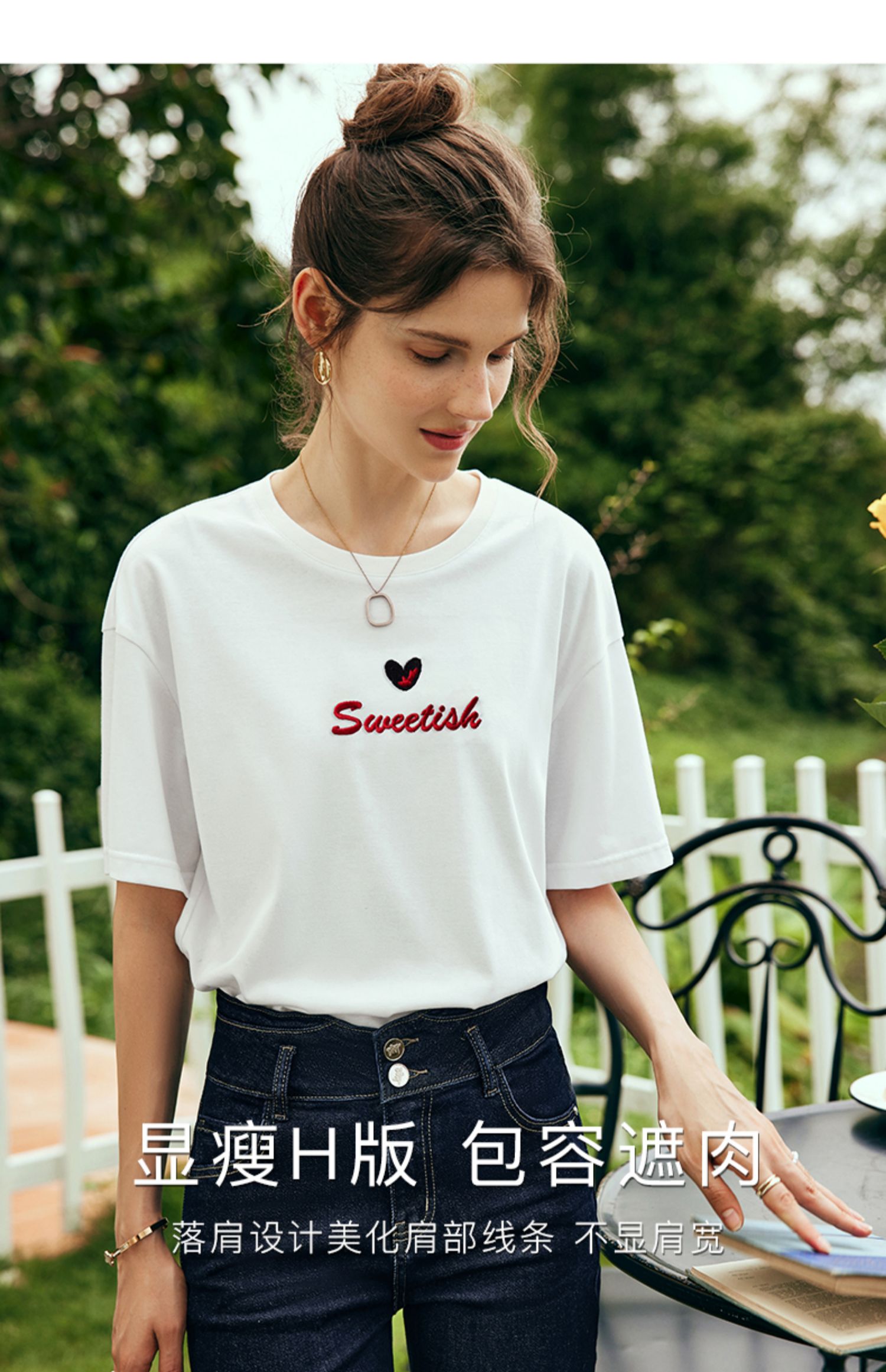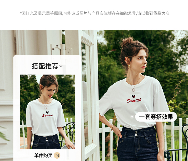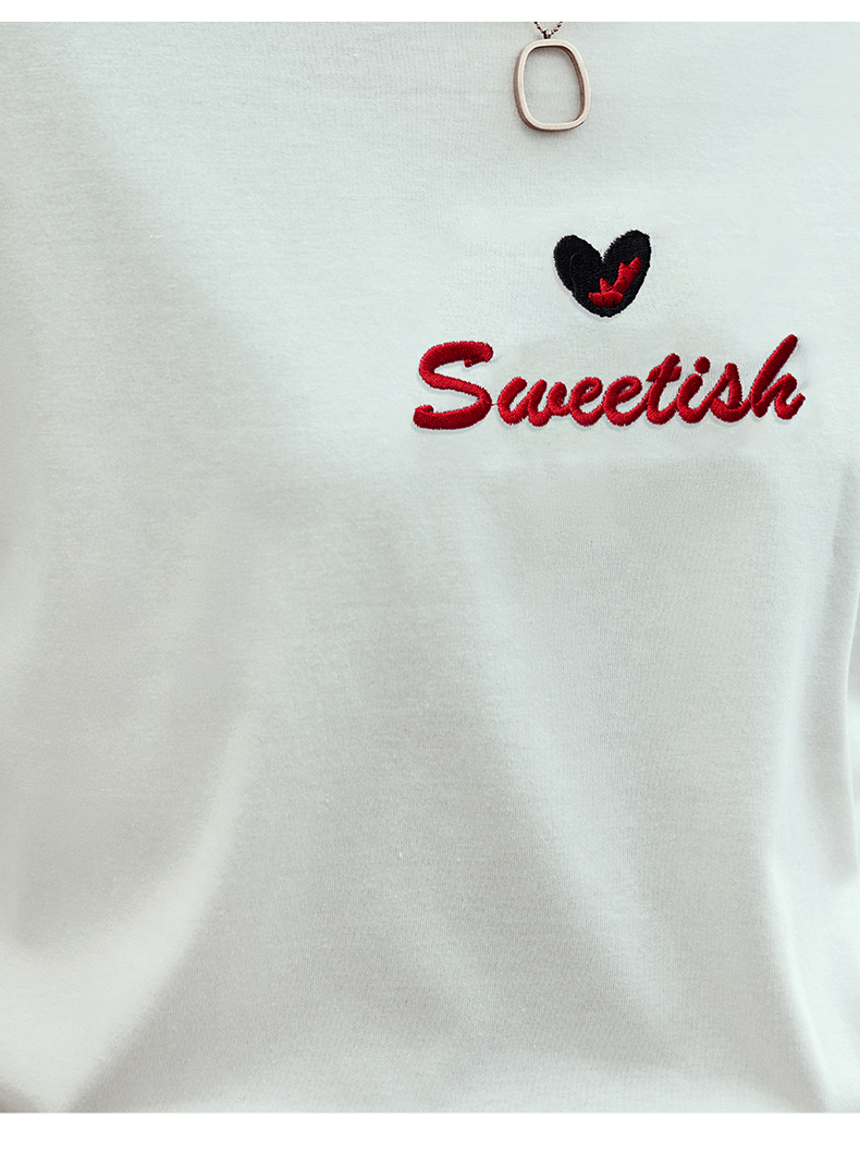 OLrain欧芮儿法式白色短袖T恤女夏2024新款宽松爱心撞色刺绣上衣