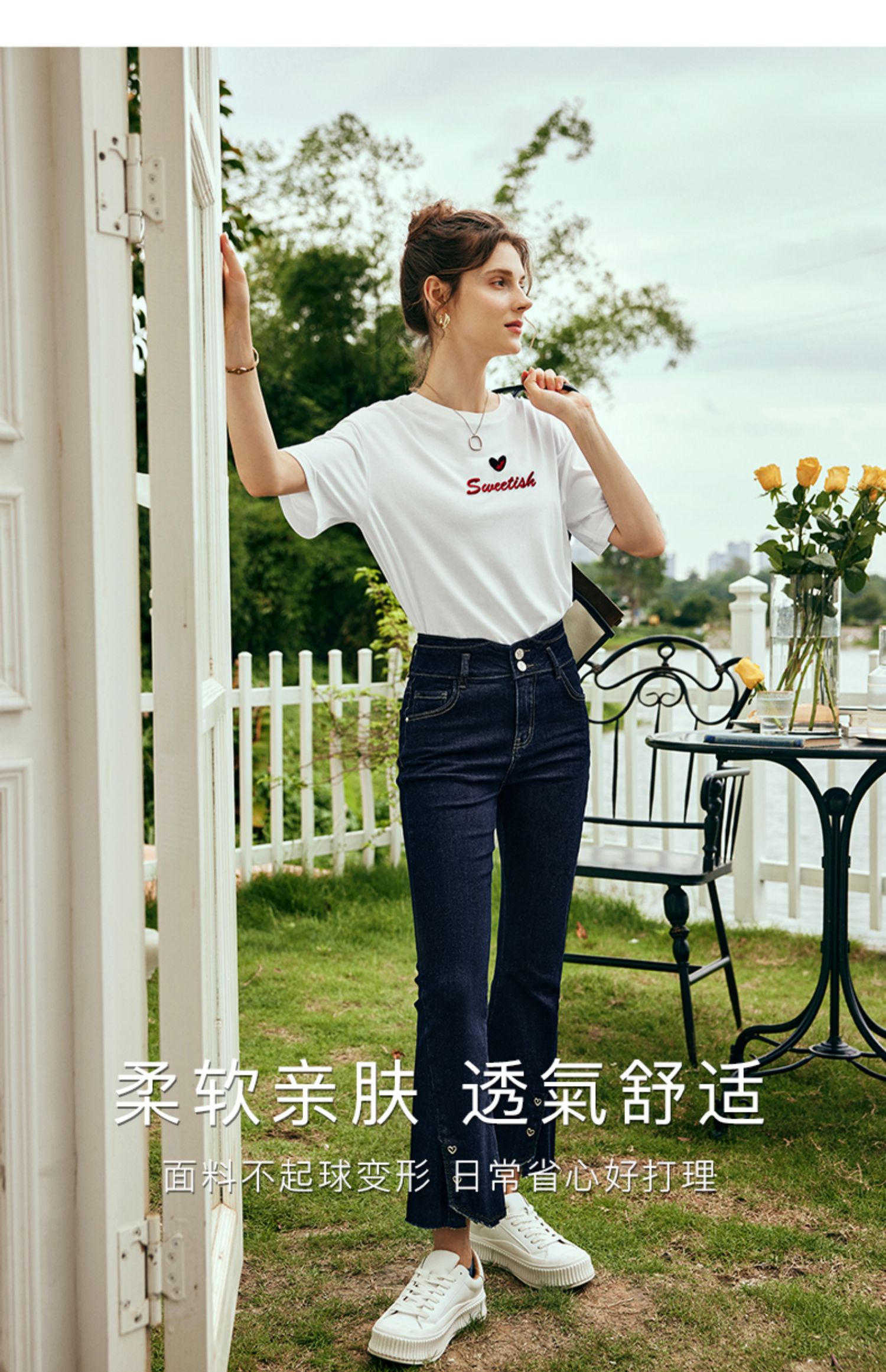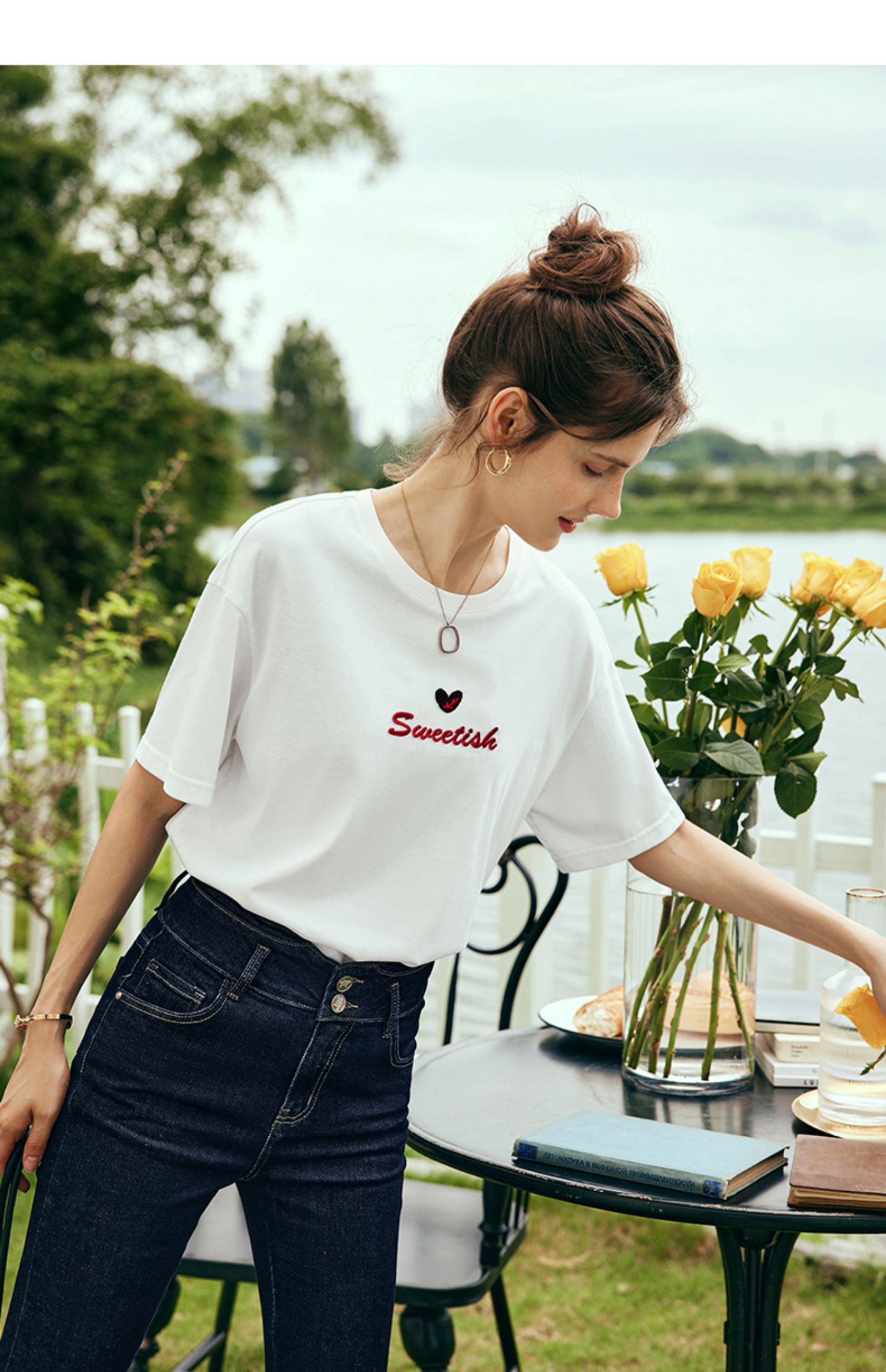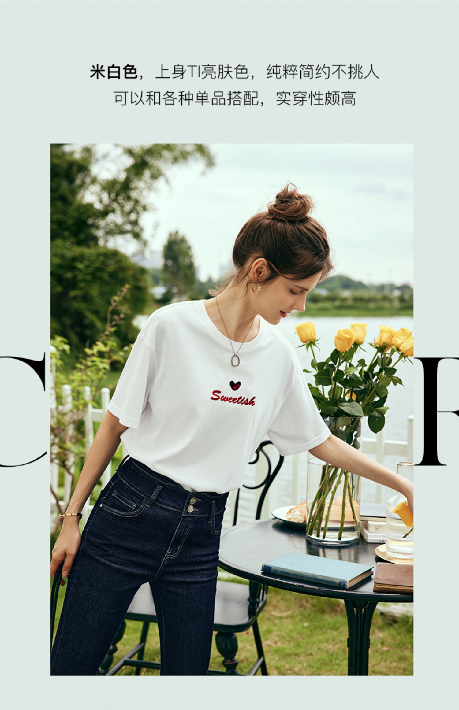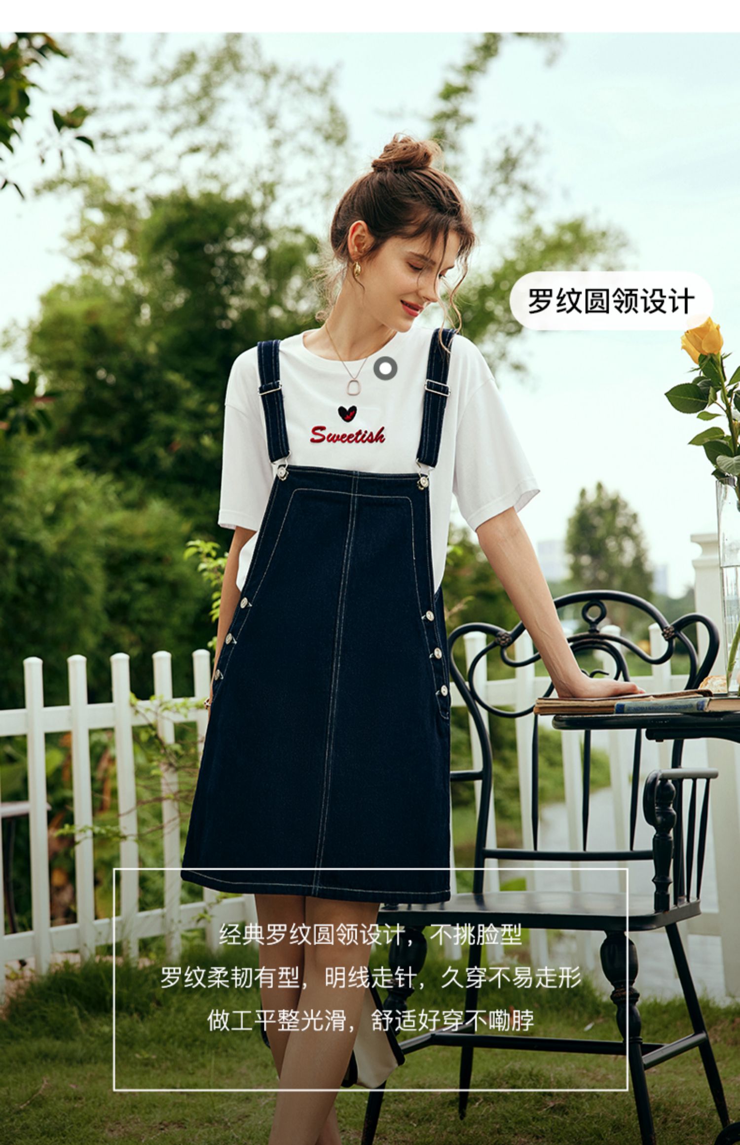 OLrain欧芮儿法式白色短袖T恤女夏2024新款宽松爱心撞色刺绣上衣