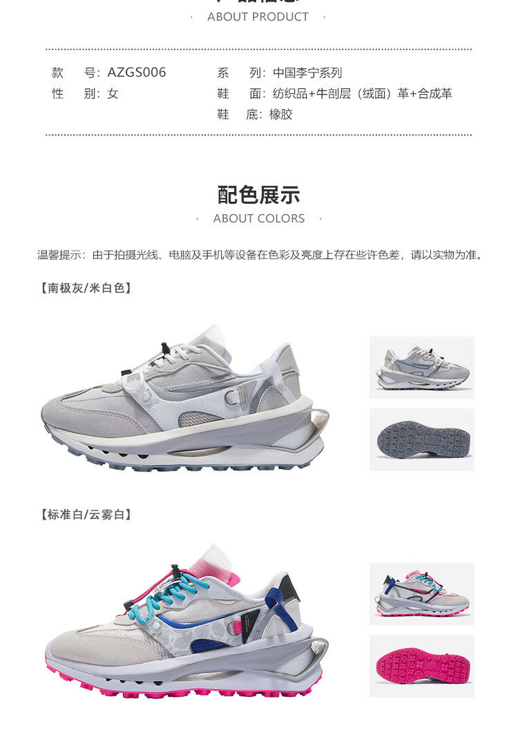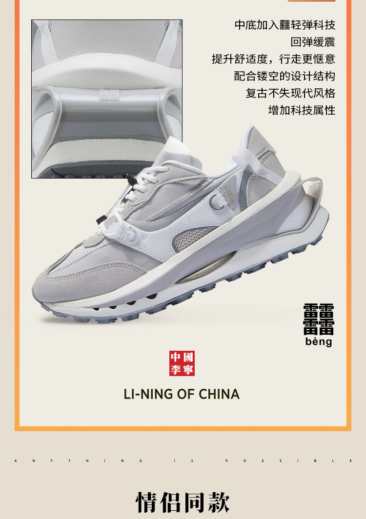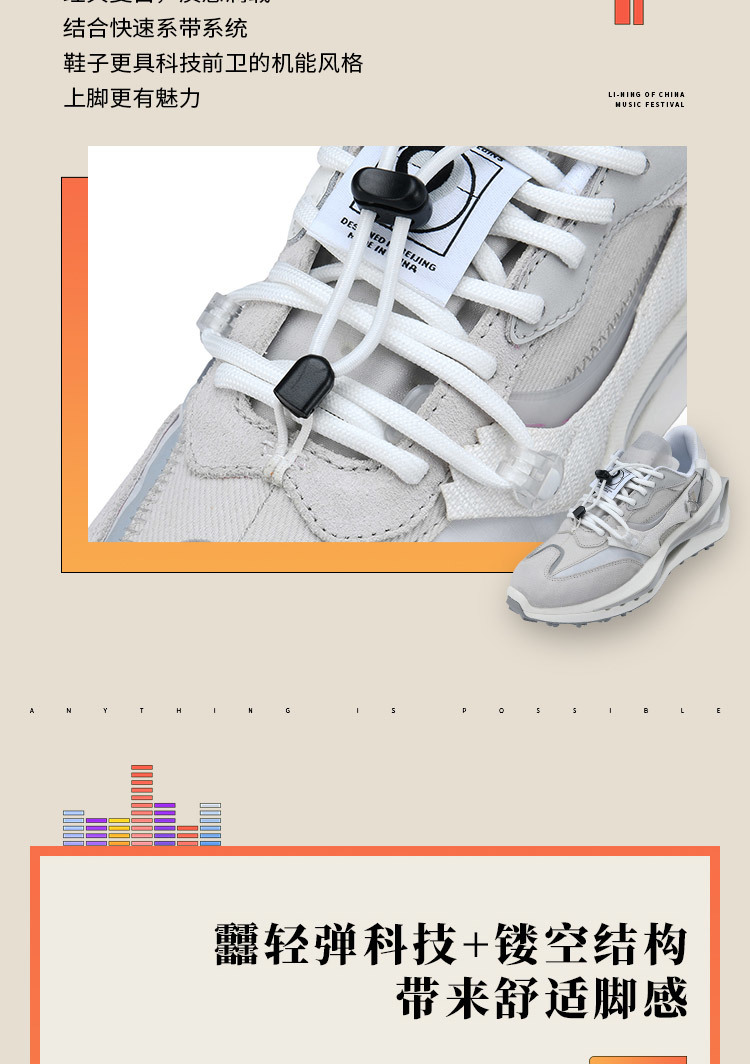 中国李宁春夏潮流音乐节走秀款系列方圆反光减震运动鞋AZGS006