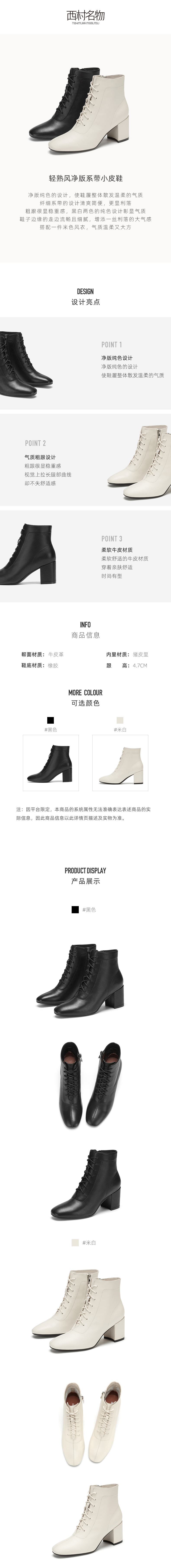 西村名物2020冬季新款短靴女牛皮革中跟轻熟风系带小皮鞋X20DS40891