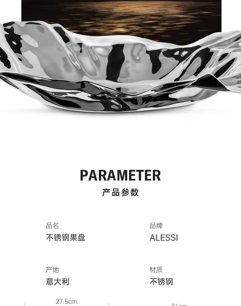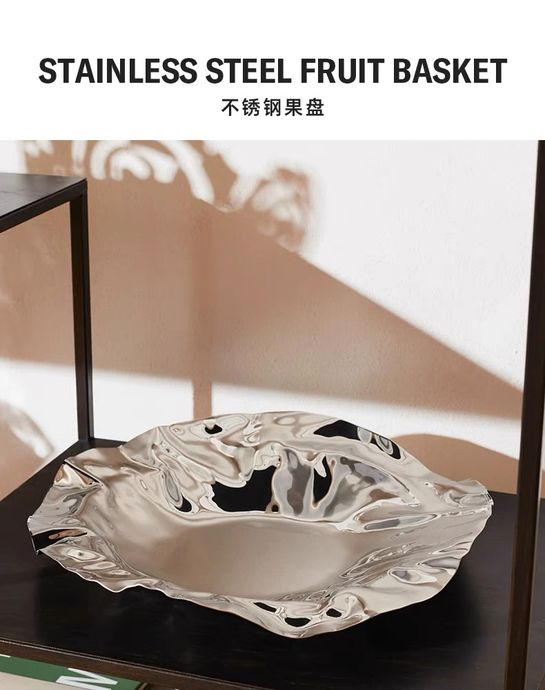 ALESSI/褶皱果篮不规则果盘欧式轻奢居家客厅家用不锈钢