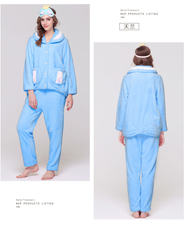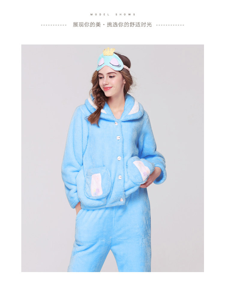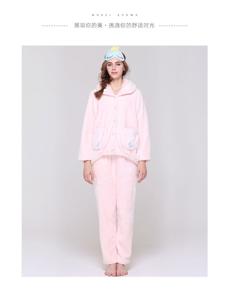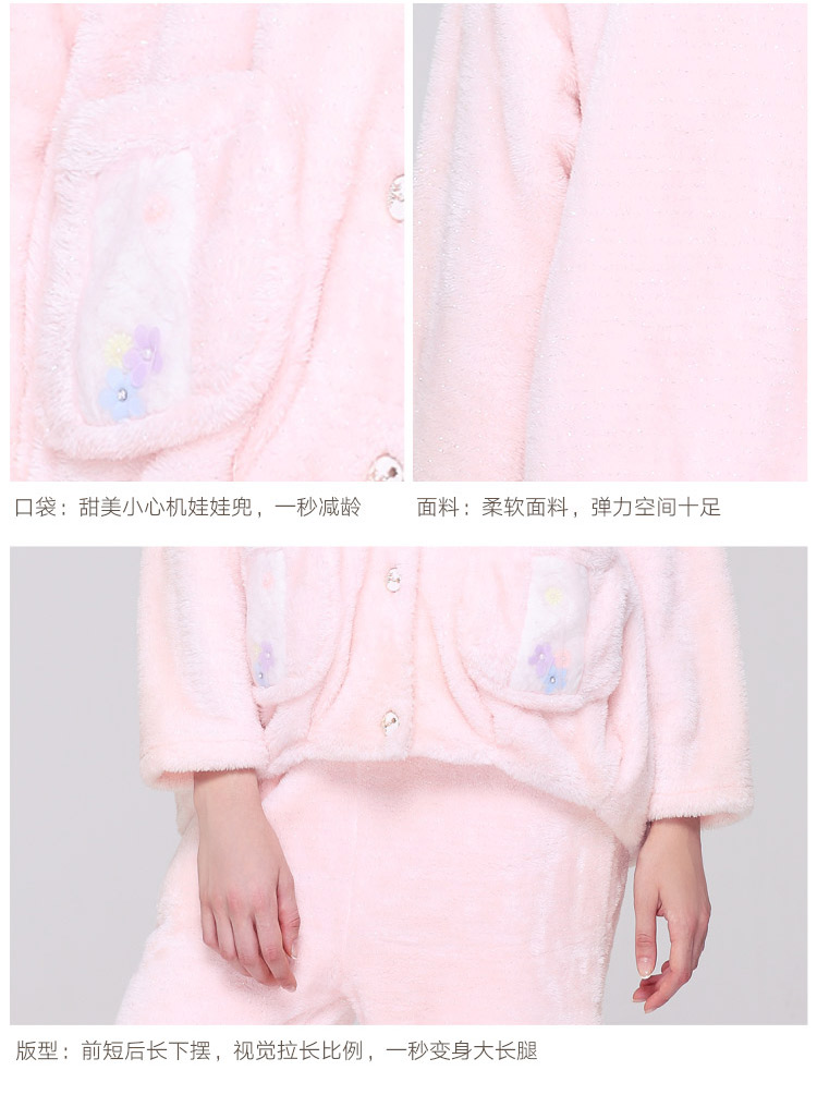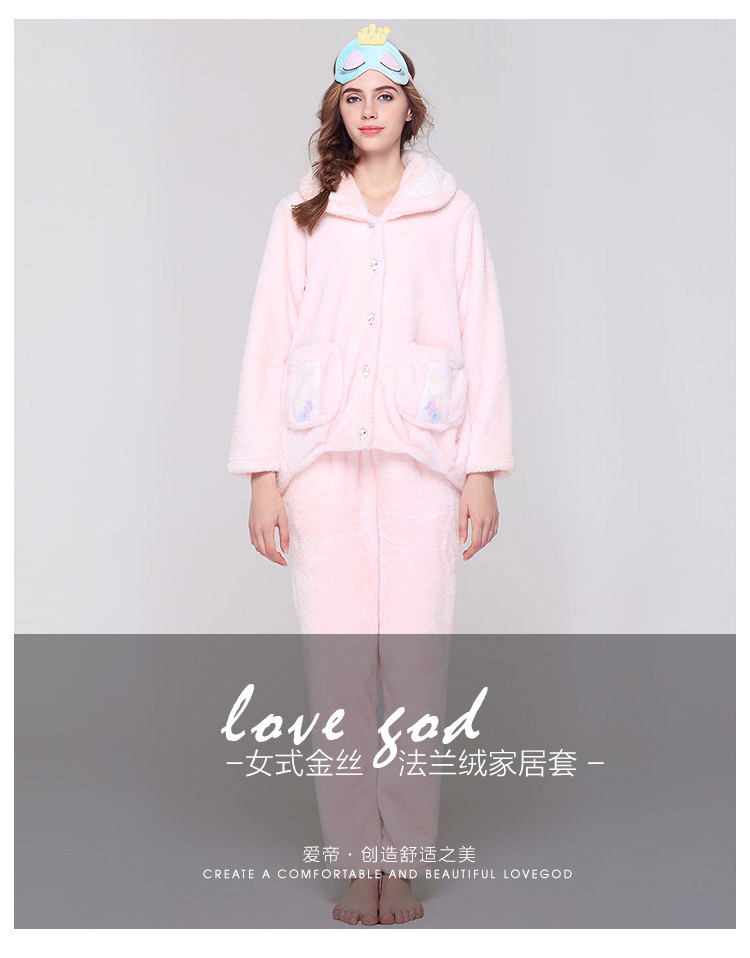 【会员价】爱帝女式金丝法兰绒加厚家居服套