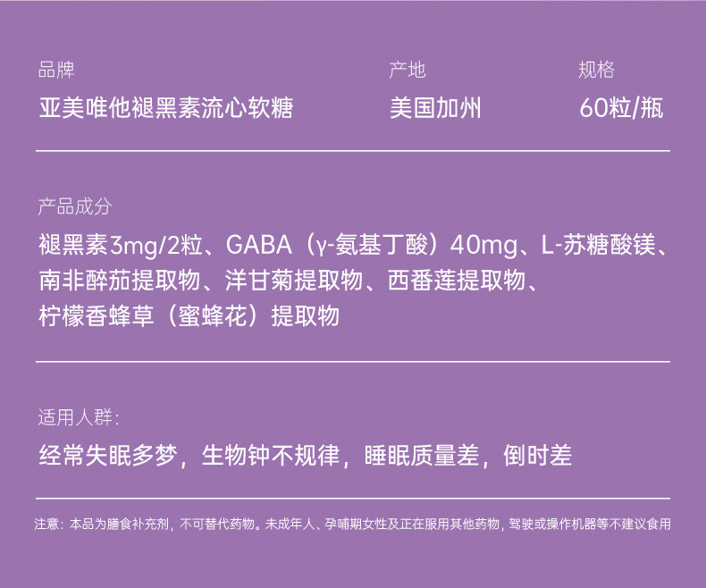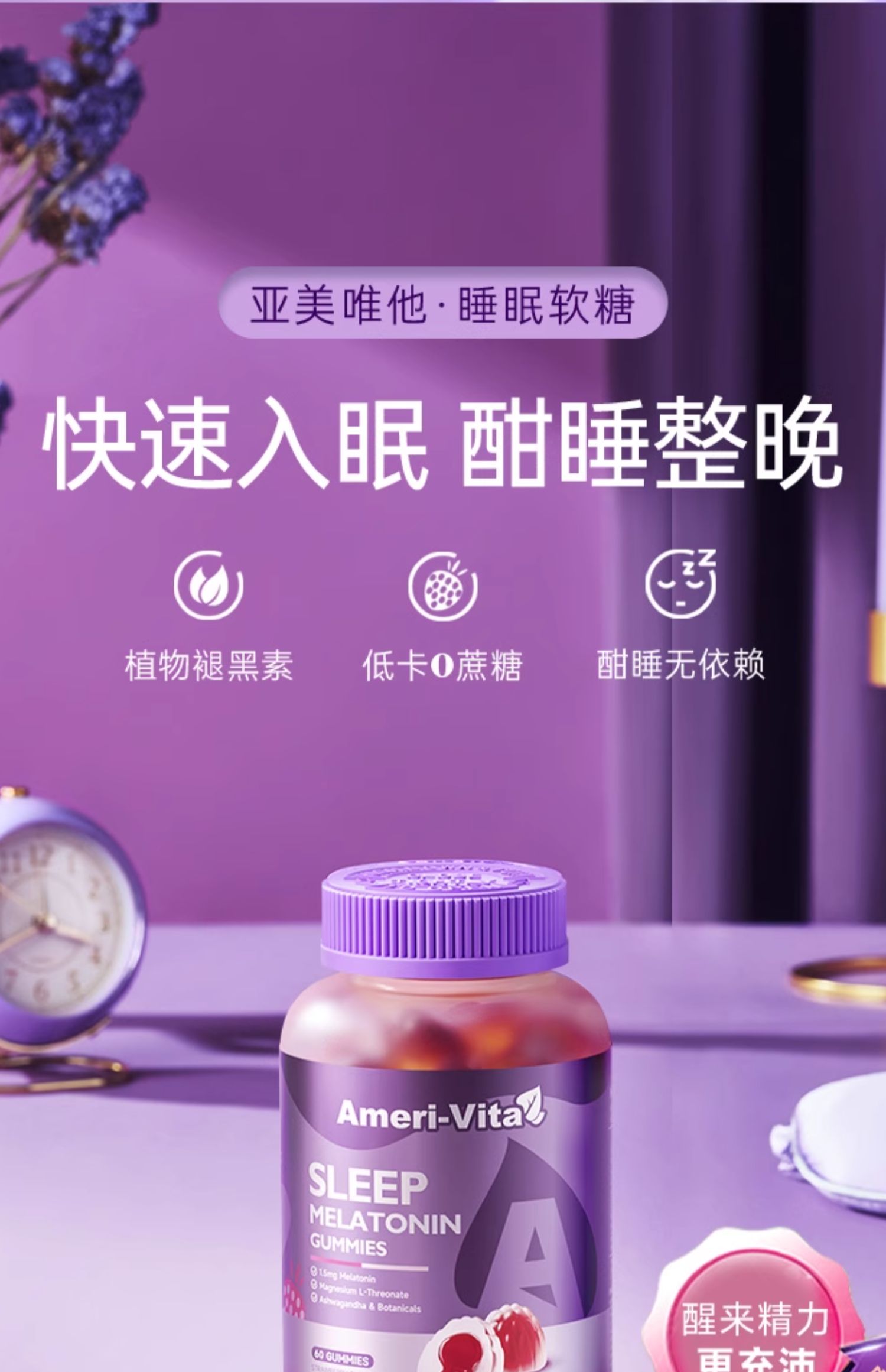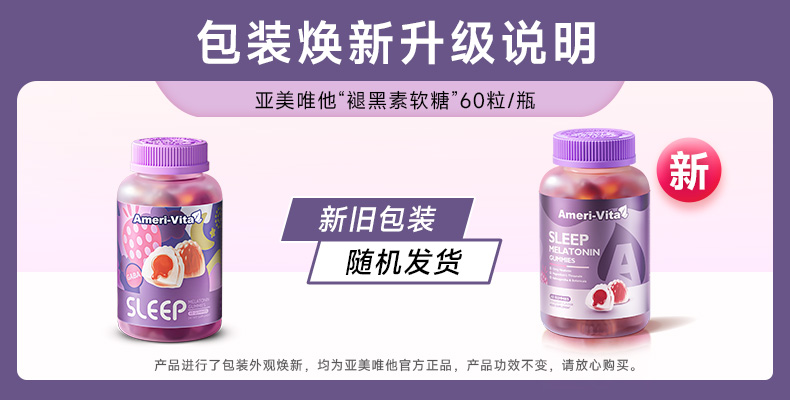 Ameri-Vita 升级版1.5mg 褪黑素软糖60粒/瓶 褪黑素sleepwell安瓶睡眠片睡眠软糖