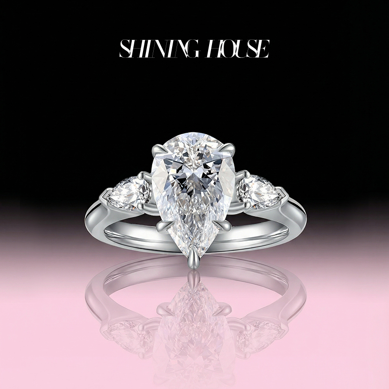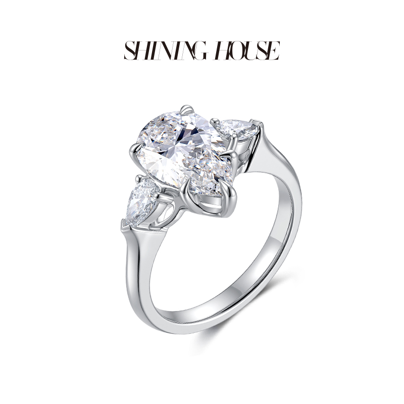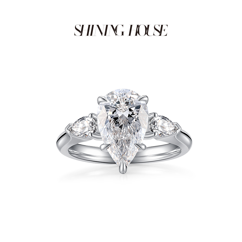 ShiningHouse[培育] 18k金钻石戒指 水滴形2克拉钻人工真钻人造钻石K金戒指时尚钻石戒指悦己送礼臻选【此商品不支持7天无理由退货退款】