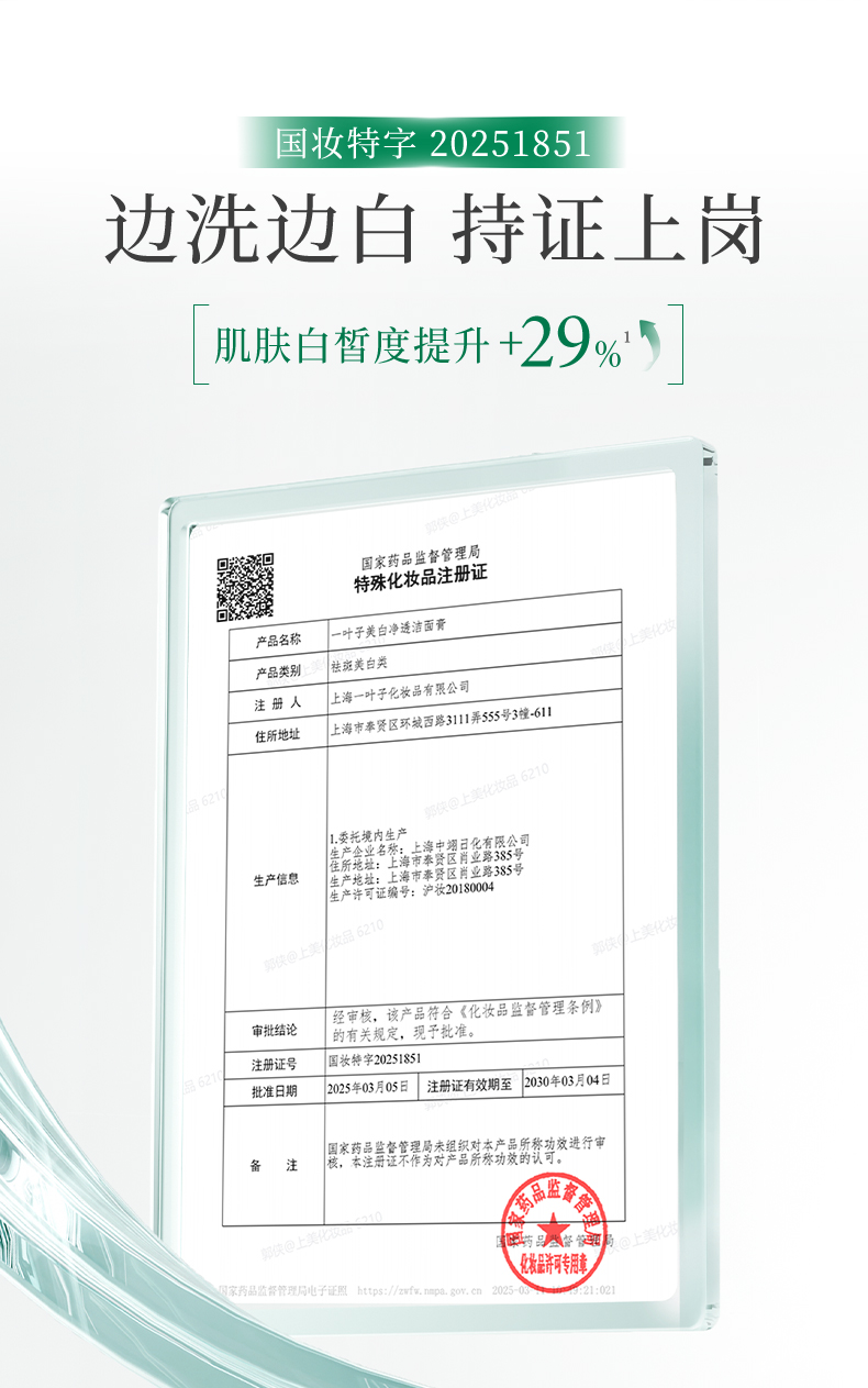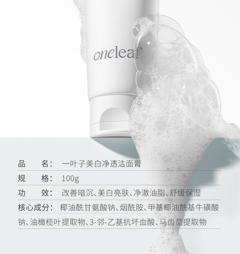 【美白洁面】一叶子美白净透洁面膏100g-洗面奶祛黄提亮美白淡斑