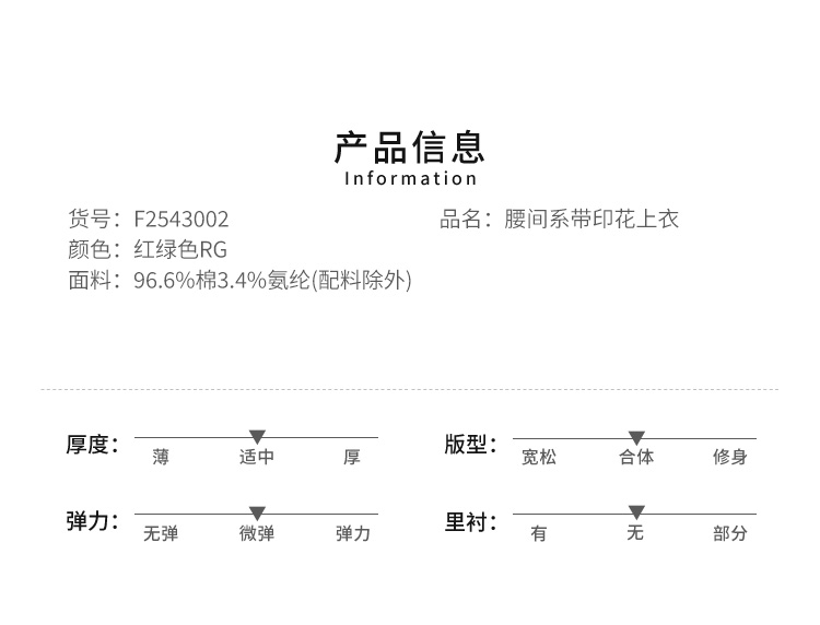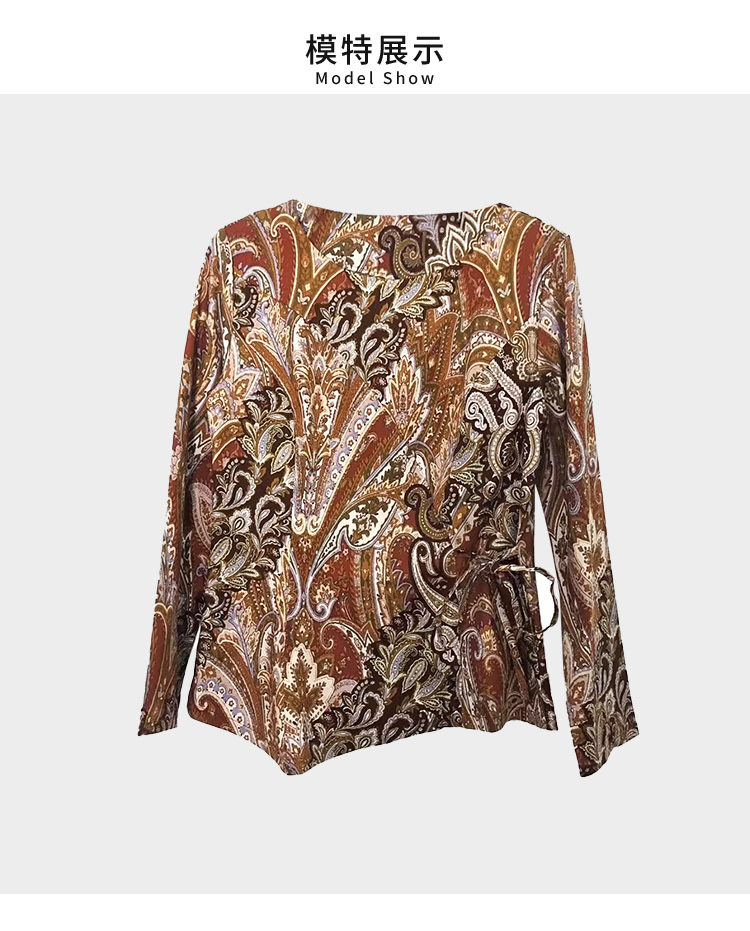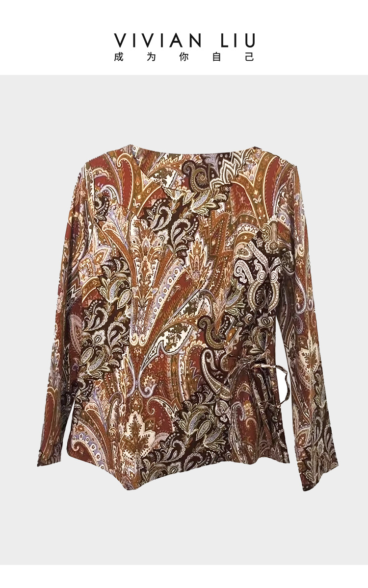 VIVIAN LIU薇薇安刘F2543002秋季女装新款腰间系带印花上衣