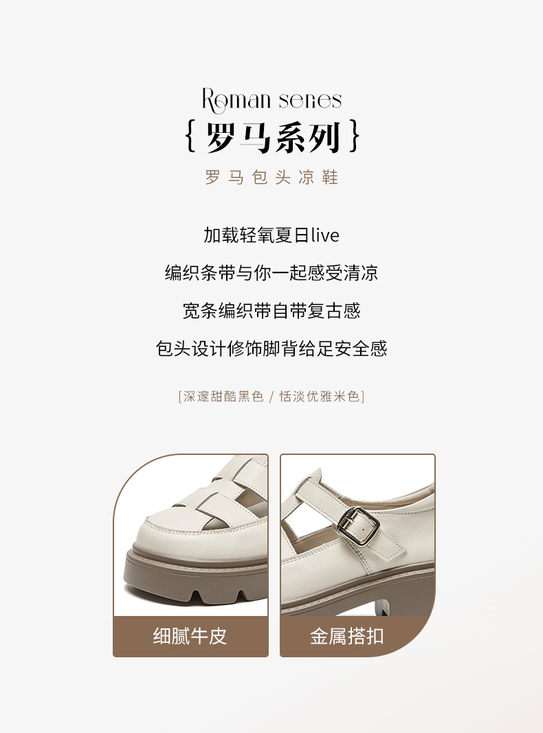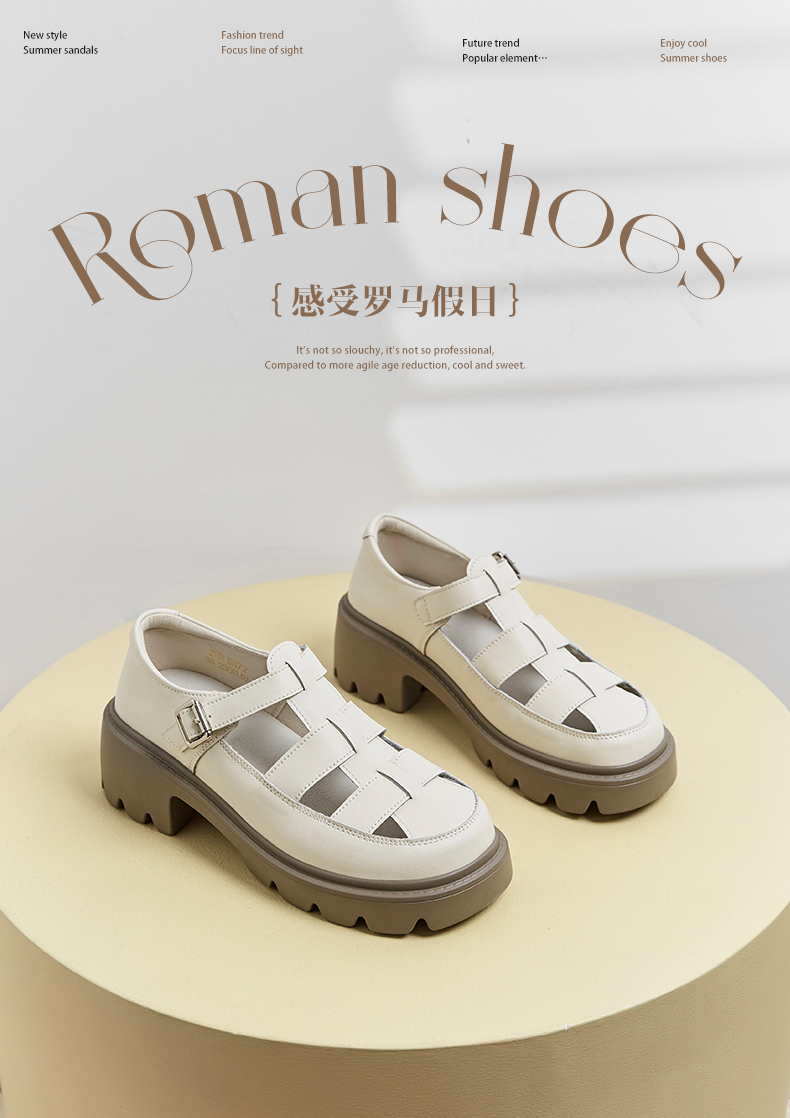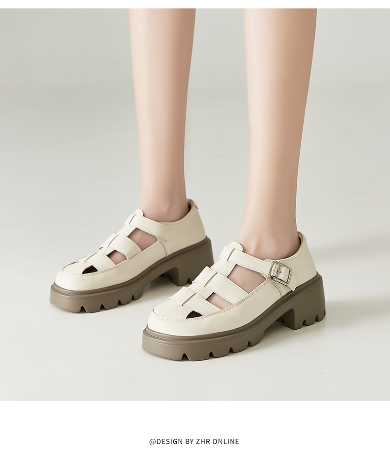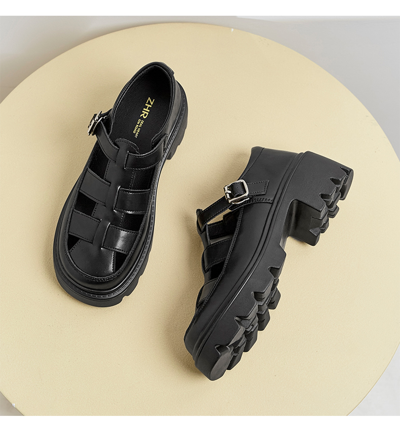 ZHR罗马鞋包头凉鞋女外穿厚底洞洞鞋女士凉鞋女2023新款夏季休闲