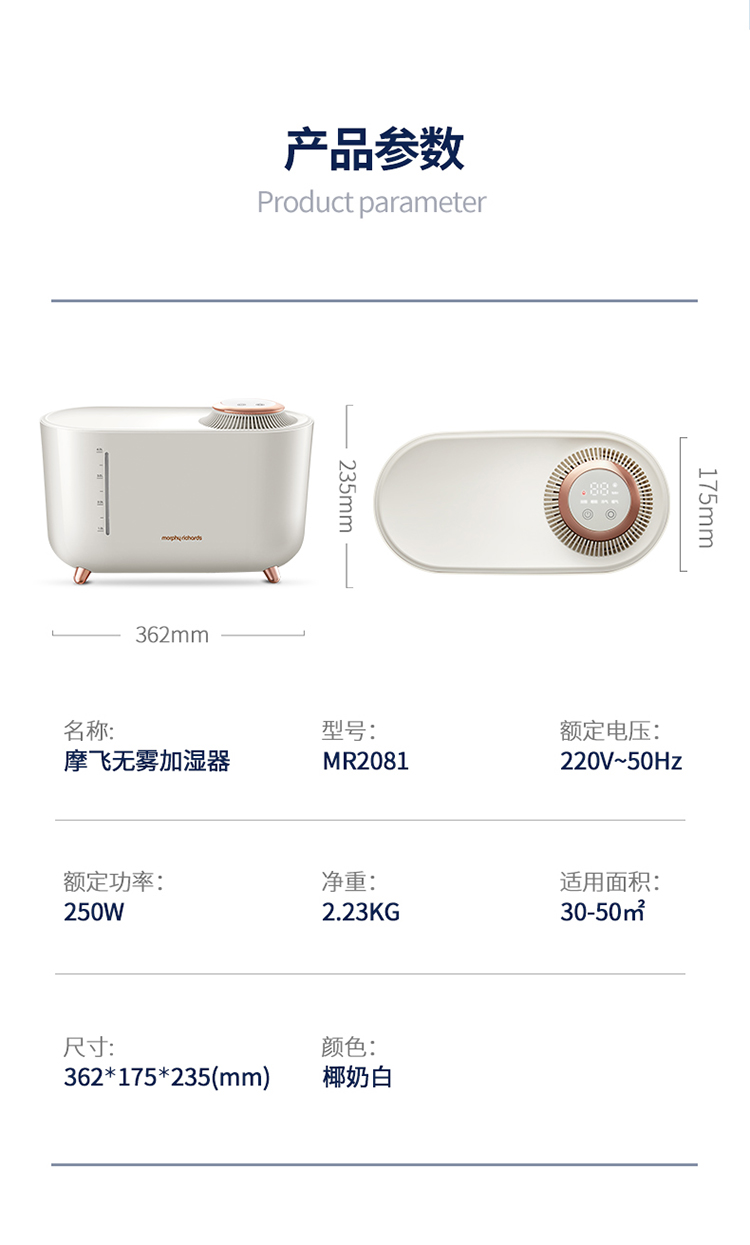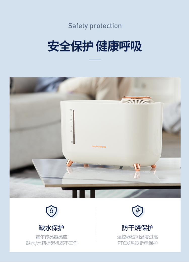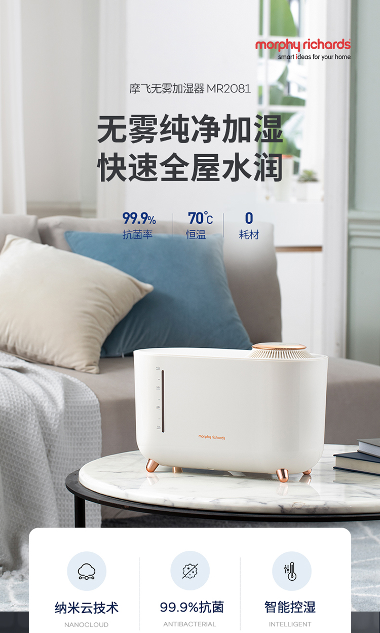 摩飞(Morphyrichards)无雾加湿器卧室家用办公室桌面孕妇婴儿低噪 4L大容量上加水遥控升级版MR2081