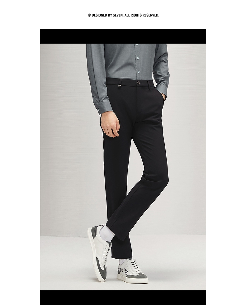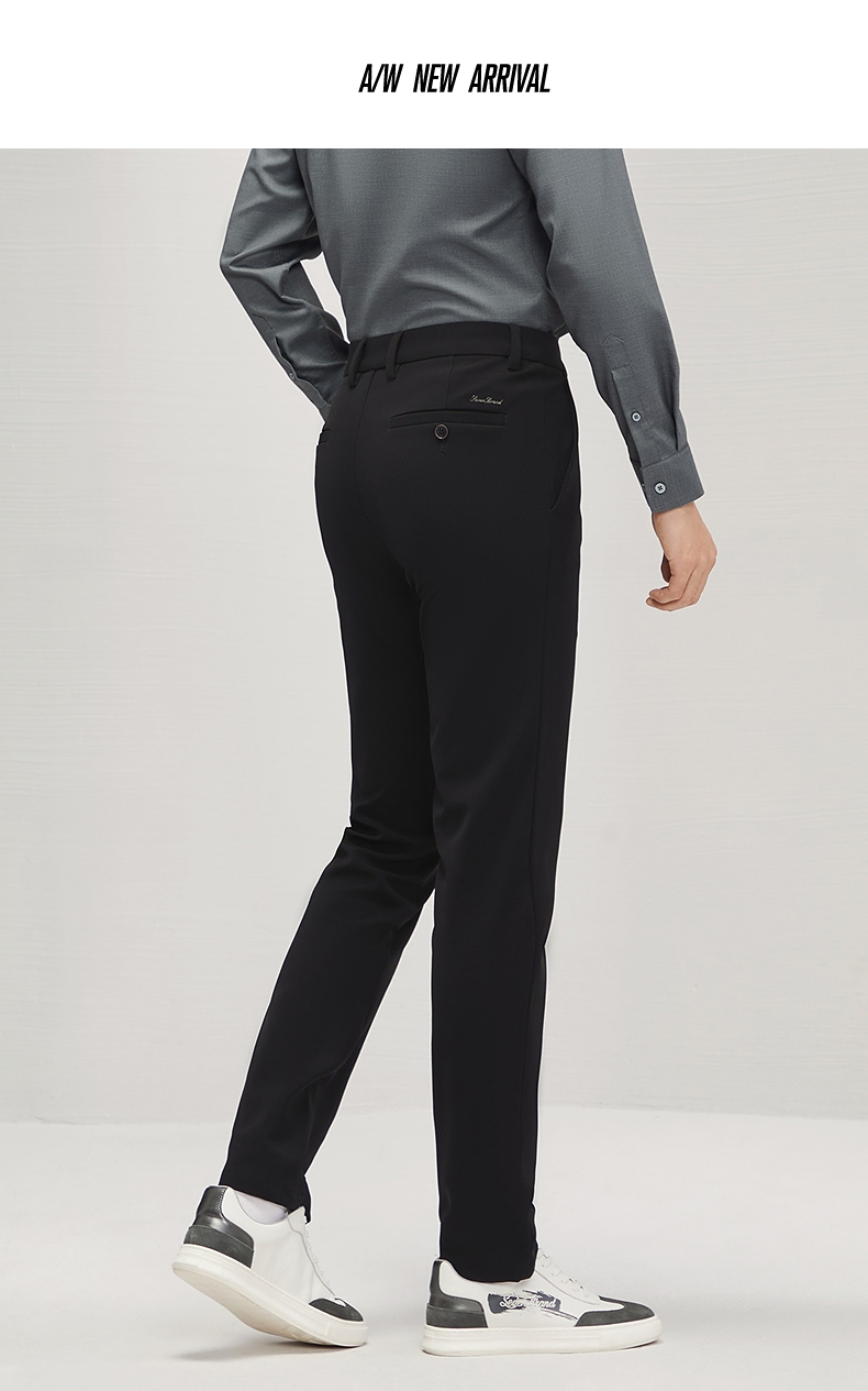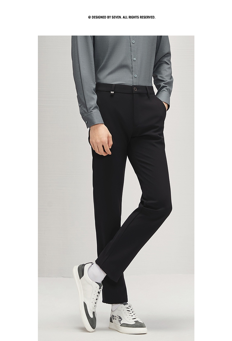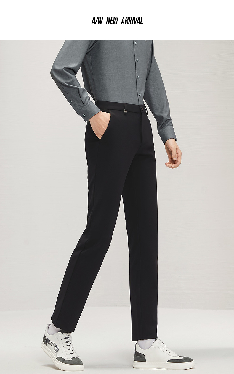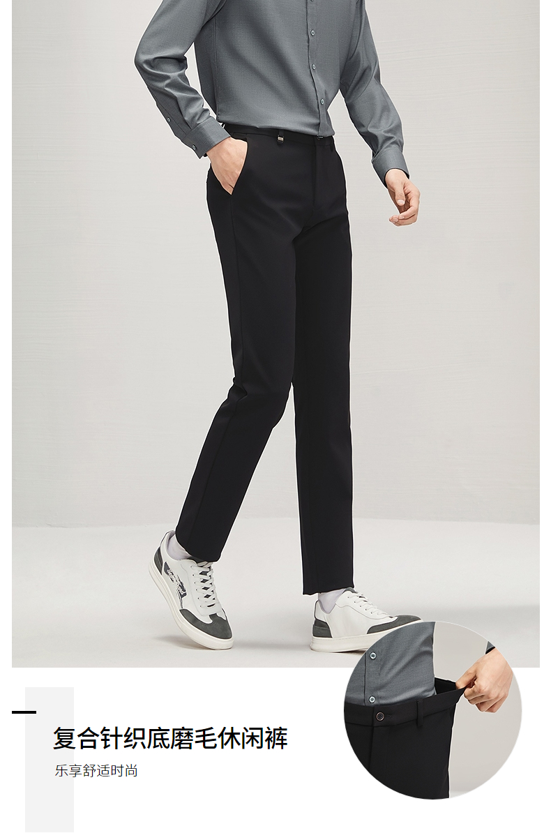 柒牌休闲裤男士2024秋冬新款商务百搭中青年黑色中腰厚款直筒长裤 127H72730