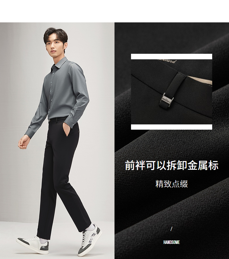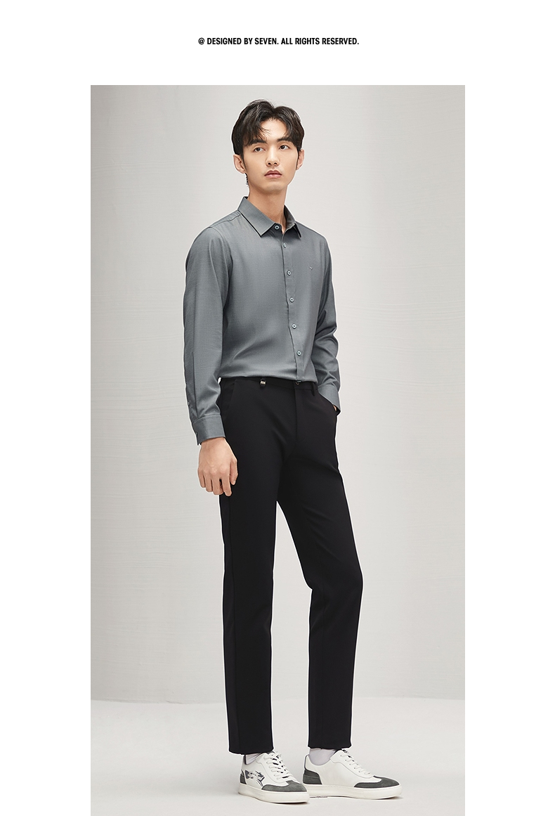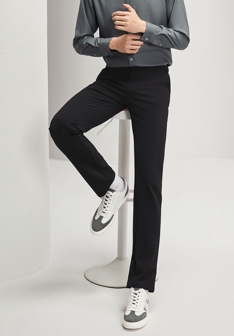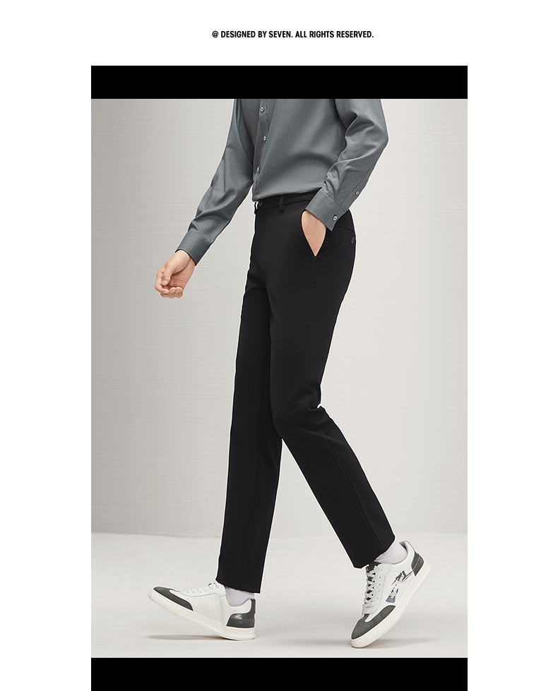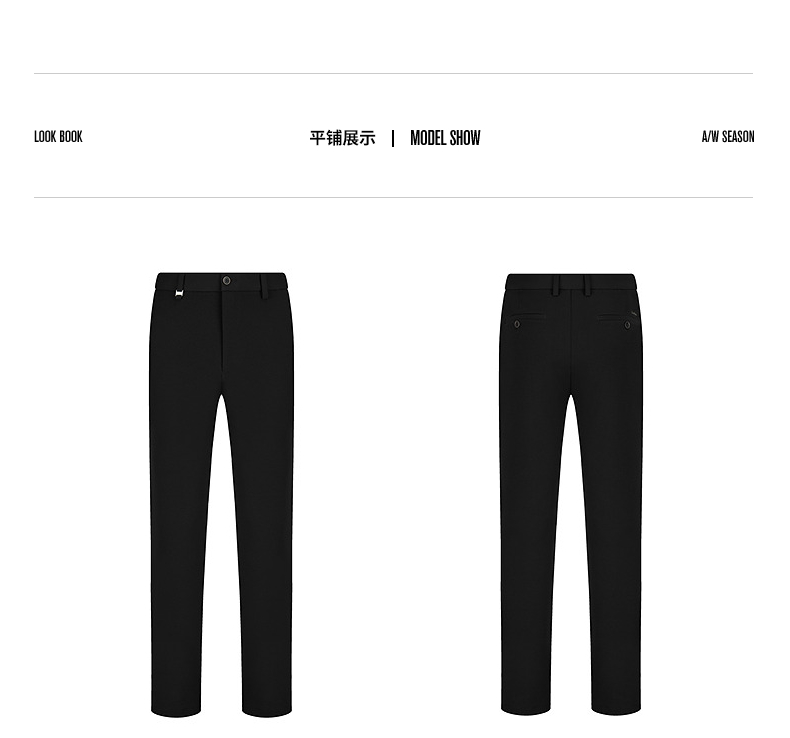 柒牌休闲裤男士2024秋冬新款商务百搭中青年黑色中腰厚款直筒长裤 127H72730